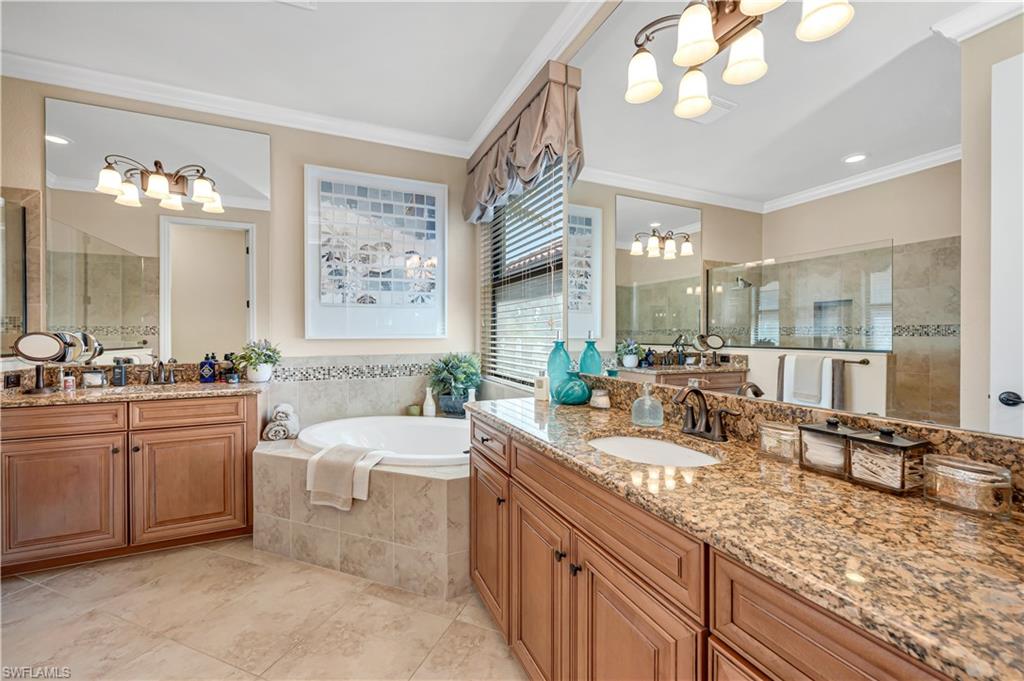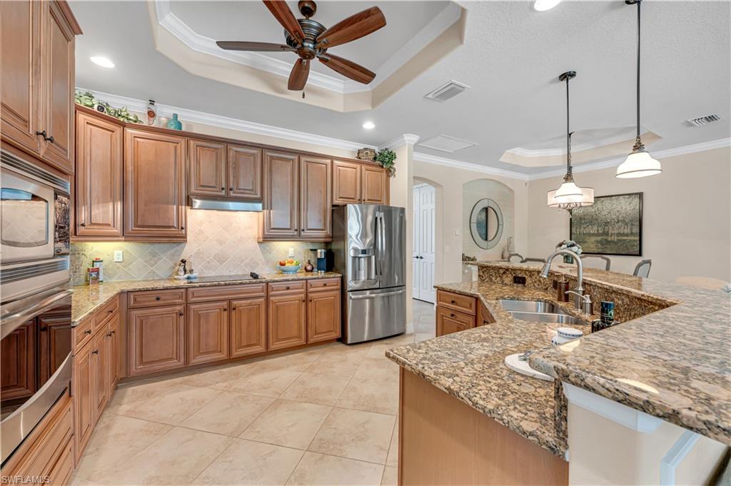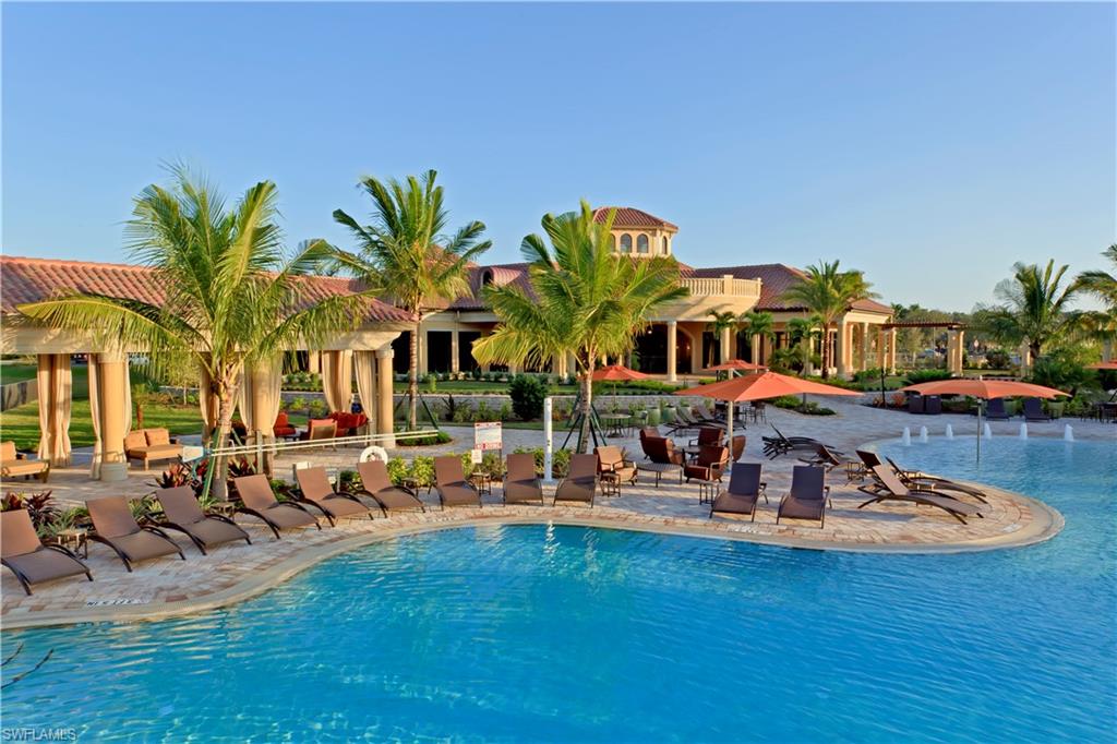 A true 5 bedroom (plus den)/3.5 bath/3 car garage 2-story home on Firenze Circle in the highly desirable community of Treviso Bay. This property is deeded with a TPC GOLF MEMBERSHIP! No waitlist to join! The Napoli Grande model encompasses over 3,100 square feet and features 2 guest bedrooms, a full bath, sitting area and wet bar with undercounter refrigerator on the 2nd level. The first floor offers a large, spacious primary suite complete with a walk-in closet, en suite bath with 2 vanities/sinks & separate tub and walk-in shower, and a door that opens up onto the expansive lanai. Additionally on the first level - which includes enlarged tiles set diagonally throughout - there are 2 guest bedrooms, a full AND half bath and an office/den (that can be converted to a SIXTH BEDROOM). The Sellers have also added a beverage/wet bar with an undercounter wine refrigerator, beverage refrigerator and icemaker. The kitchen is complete with a natural gas cooktop and GE Monogram appliances. Custom lighting throughout. The true Florida lifestyle is experienced outside the rear sliders where the tranquil lanai provides a sanctuary offering a natural gas-heated in-ground pool/spa, summer kitchen/built in grill and custom lighting that accentuates the natural beauty. The coveted TPC golf membership offers the owner the opportunity to be a full golf member at one of the finest layouts in Southwest Florida. Aside from the world-class golf experience, Treviso Bay has unmatched amenities, featuring: on-site spa/salon, fitness center with instructors and daily classes, 8 tennis courts, resort style pool with a recently renovated poolside restaurant/tiki bar with daily happy hour specials, bocce, pickleball, and SO MUCH MORE. The 24-hour guarded, gated community is located just 5 miles from 5th Ave restaurants, shopping and the Gulf of Mexico. The original owners of this spectacular property have never rented the house and have used it sparingly since purchasing it in 2014. Don't miss the opportunity to call this ESTATE property "HOME".