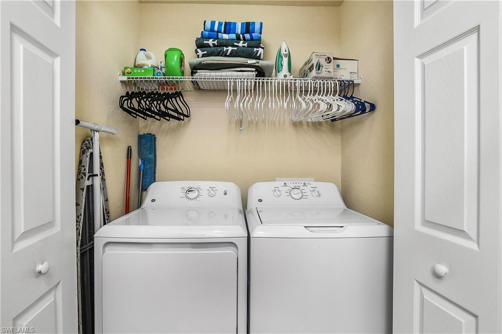 Indulge in a world of refined elegance and unparalleled comfort in this Treviso Bay condominium, where resort-style living takes center stage. Experience the seamless blend of sophisticated design and a maintenance-free lifestyle, highlighted by beautiful nautical and coastal décor, premium furnishings, and panoramic views overlooking Rookery Bay's 110,000 acres of preserved land. Open and airy, with abundant natural light streaming through impact-resistant windows, this condo is perfectly sized for couples, small families, or a private getaway, creating opportunities for unforgettable memories. Unleash your inner chef and create culinary delights in the expansive island kitchen, complete with white quartz countertops, white shaker cabinets, a cabinet pantry, and a breakfast nook with expansive bay windows. Enjoy the outdoors and unwind on the private balcony, overlooking expansive lake views and Southwest Florida's natural wildlife in Rookery Bay Preserve. Exotic birds, alligators, deer, iguanas, and more can be seen daily! The master bedroom features his and her walk-in closets, dual vanities, and a walk-in shower. The guest bedroom is spacious, with a large closet and upgraded carpeting. A full-size washer and dryer are included, and the condo boasts a storage room just outside the unit within the building. Home to the pristine and renowned, PGA-standard, 18-hole championship TPC Treviso Bay Golf Club, Treviso Bay is a friendly community known for its welcoming atmosphere, sophisticated ambiance, and world-class amenities, including two clubhouses. Villa Rilassare, Treviso Bay's second clubhouse, features resort-like amenities including a waterfall pool with poolside service, a lively full-service chickee bar surrounded by TVs for catching all sports events, a state-of-the-art and fully-staffed fitness center, eight Har-Tru tennis courts and clubhouse, and rejuvenating spa services. The 50,000+ sq ft main clubhouse is impressive and includes a dining room with a beautiful bar and outdoor seating, a second bar on the balcony overlooking the 9th and 18th holes, a golf shop and simulator, a game room, and more! Additional amenities include eight pickleball courts, extensive trails winding through the pristine Rookery Bay Preserve, driving range privileges, 24-hour gated and patrolled security, and much more! Residents at Trevi Ct may not be golf members, however, they can enjoy the 18-hole championship golf course during the offseason months of May 1st to October 31st. Just minutes from downtown Naples, Treviso Bay offers a tranquil, nature-filled escape. This rare opportunity awaits; schedule your showing today!
