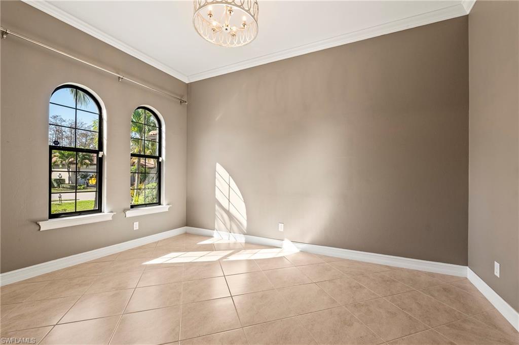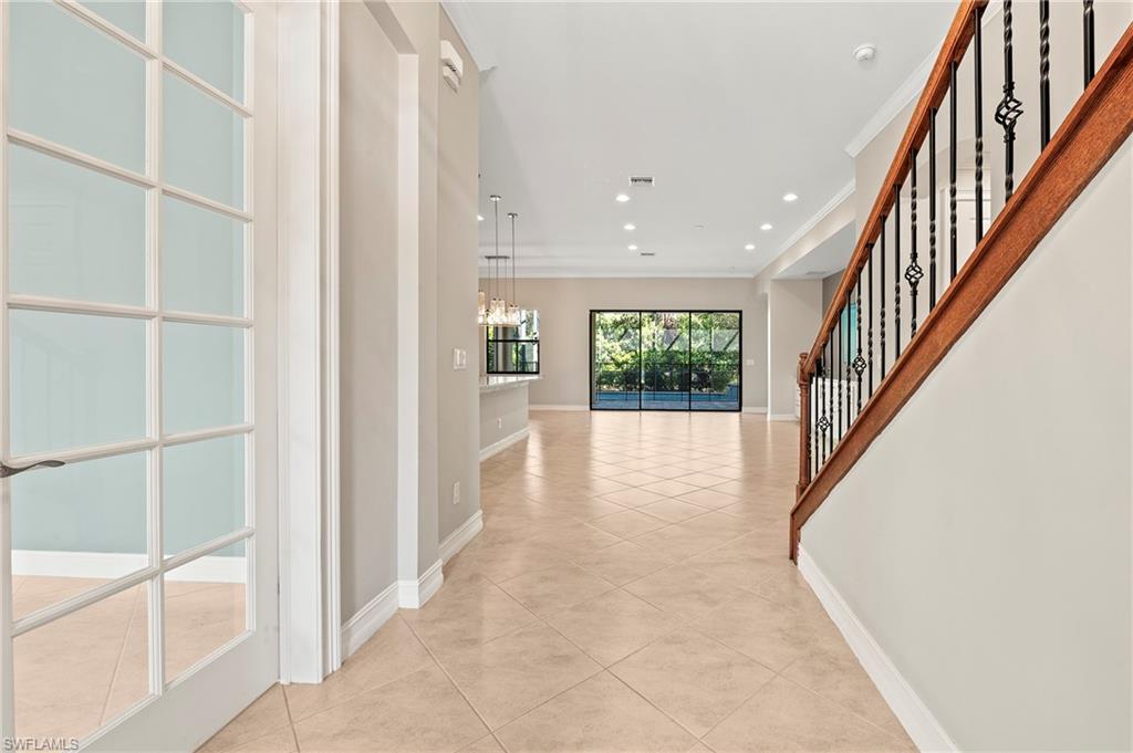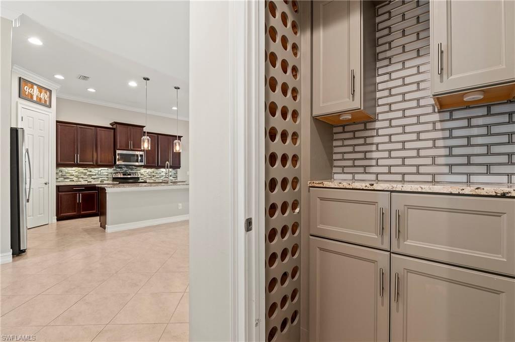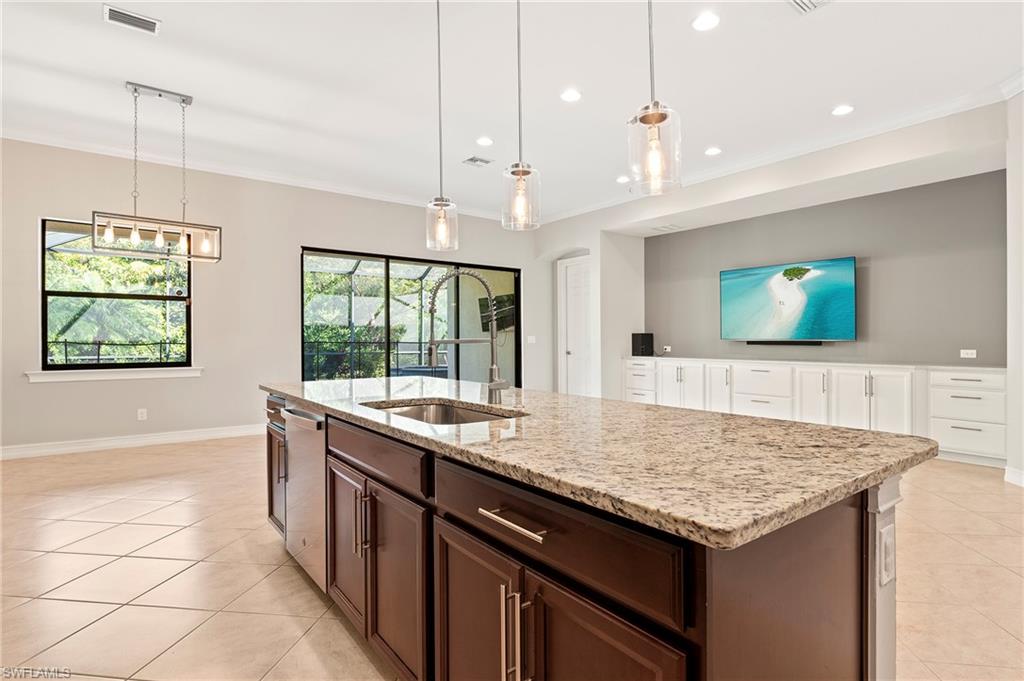 Welcome to your dream home in North Naples! Located in the gated community of Tuscany Pointe, this stunning single-story pool home blends luxury, comfort, and convenience-with low HOA and no CDD fees. Built in 2017, this meticulously maintained 3-bedroom + den, 2-bath home offers an open-concept layout with soaring 10-12 ft ceilings, crown molding, tray ceilings, wide baseboards, and tile flooring throughout. The kitchen boasts quartz countertops, a large island with oversized sink, stainless steel appliances, under-cabinet lighting, and a walk-in pantry. The spacious primary suite features two custom walk-in closets and an en suite with a beautiful soaking tub, frameless glass shower, and dual sinks. Step outside through one of three sliding glass doors to your private oasis: a heated pool with waterfall feature, built-in outdoor kitchen, bar seating, and an east-facing exposure. Additional Highlights: Air-conditioned extended 2-car garage with epoxy floors and built-in storage, Hurricane-impact windows + 3 remote-controlled Storm Smart screens, Whole-house water filtration system & exterior security cameras, No-see-um pool screen, retractable front entry screen, Upgraded landscaping with solar lighting & Brick Paver sidewalks down each side of the house. Tucked near the corner of Collier Blvd and Vanderbilt Beach Rd, you are minutes from top-rated schools, shopping, dining, and Naples' white sand beaches. Don't miss your chance to own this home in one of North Naples' most desirable communities.