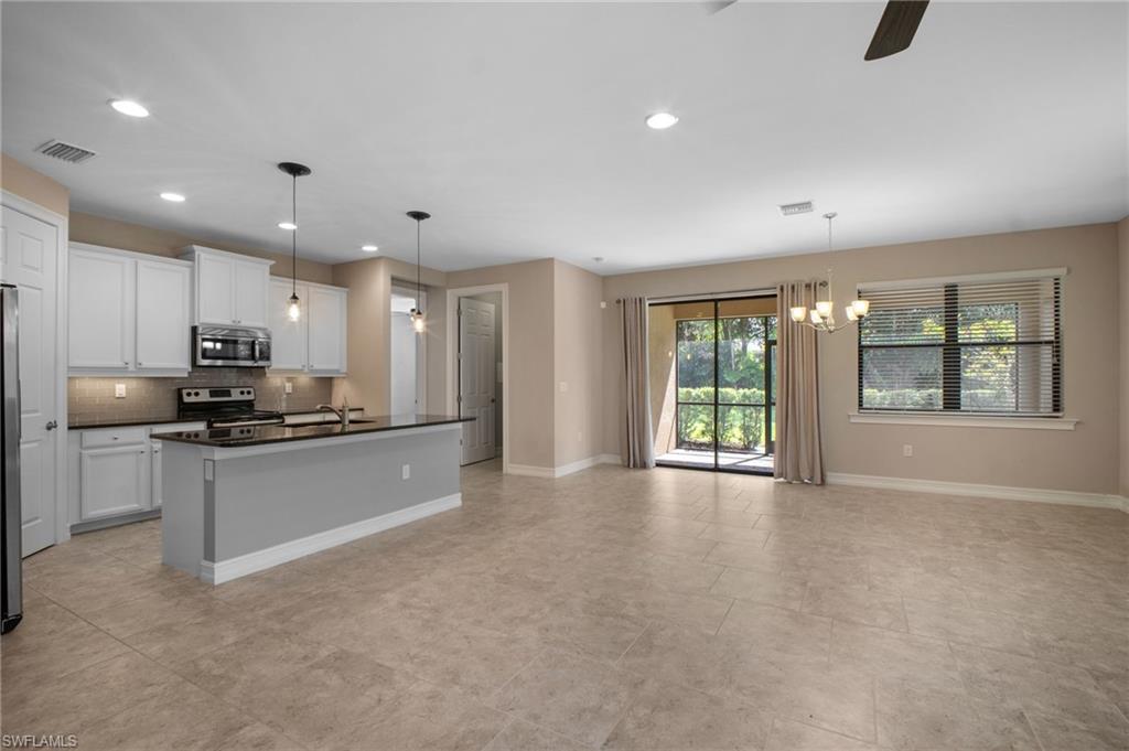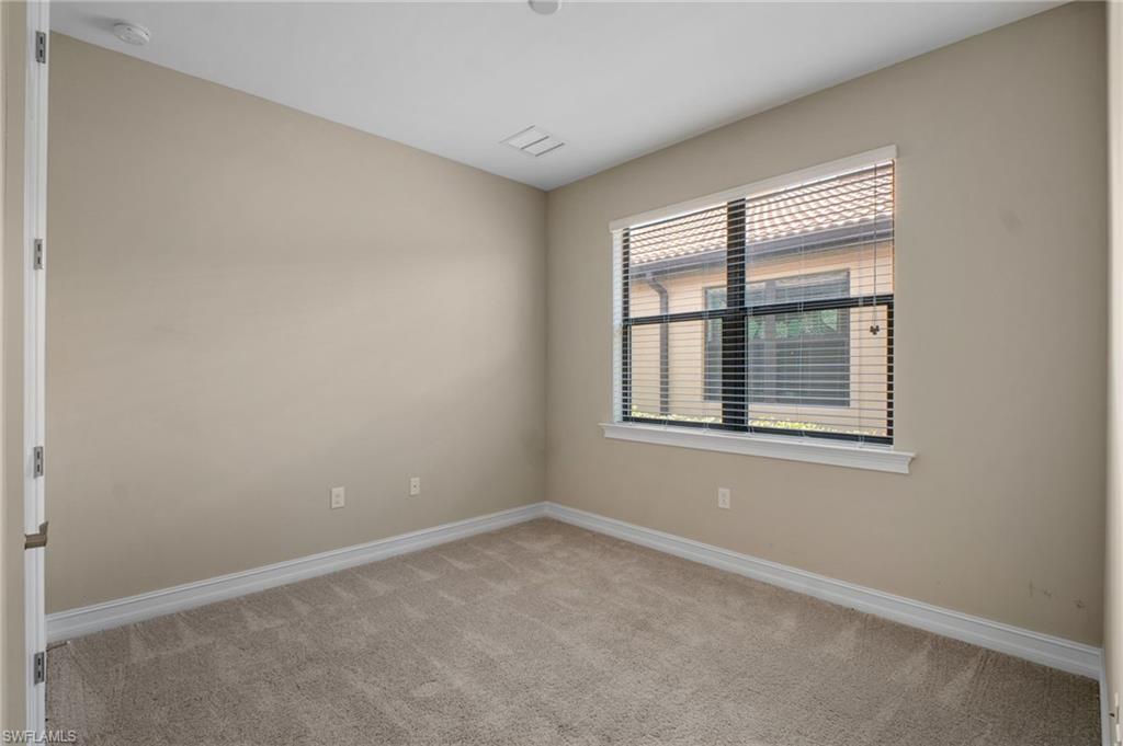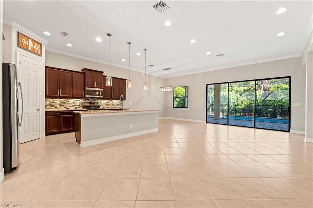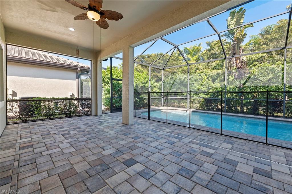 Welcome to Tuscany Pointe, a gated community in North Naples! This immaculate single-family home is move-in ready, featuring fresh neutral paint for a bright and inviting ambiance. The open-concept design seamlessly blends the living and dining areas, complemented by recessed lighting for a modern touch. The sleek white kitchen boasts stainless steel appliances, granite countertops, and a spacious walk-in pantry. The generously sized primary suite offers two large walk-in closets, a roomy walk-in shower, and dual vanities for ultimate comfort. Step outside to the screened lanai, perfect for enjoying Florida’s year-round sunshine. The private backyard provides ample space to add a pool and design your dream outdoor retreat. Additional features include a two-car garage for convenience and extra storage. Ideally situated in Naples, this home is just a short drive from pristine beaches, top shopping destinations, and diverse dining options. With easy access to I-75 and a quick commute to Southwest Florida International Airport, this exceptional home offers endless possibilities.