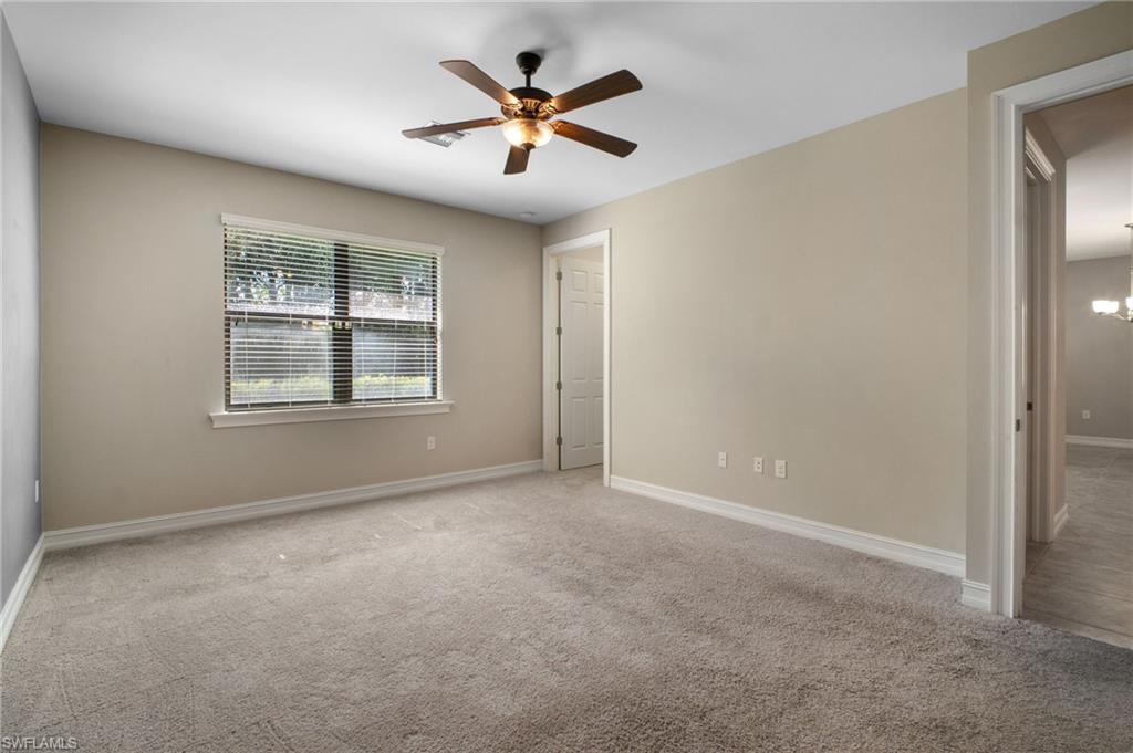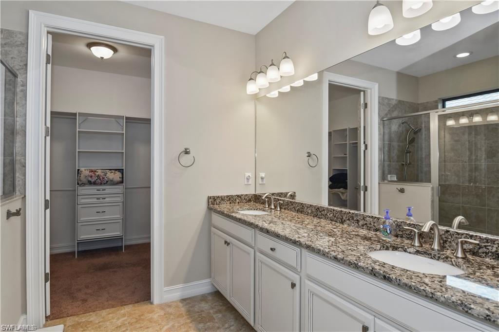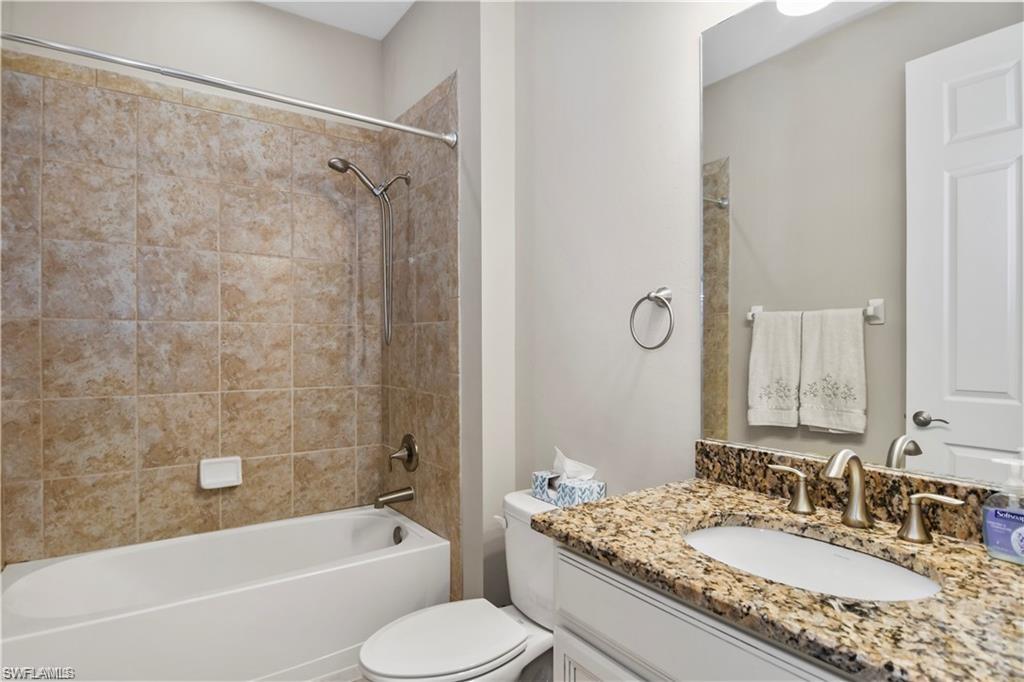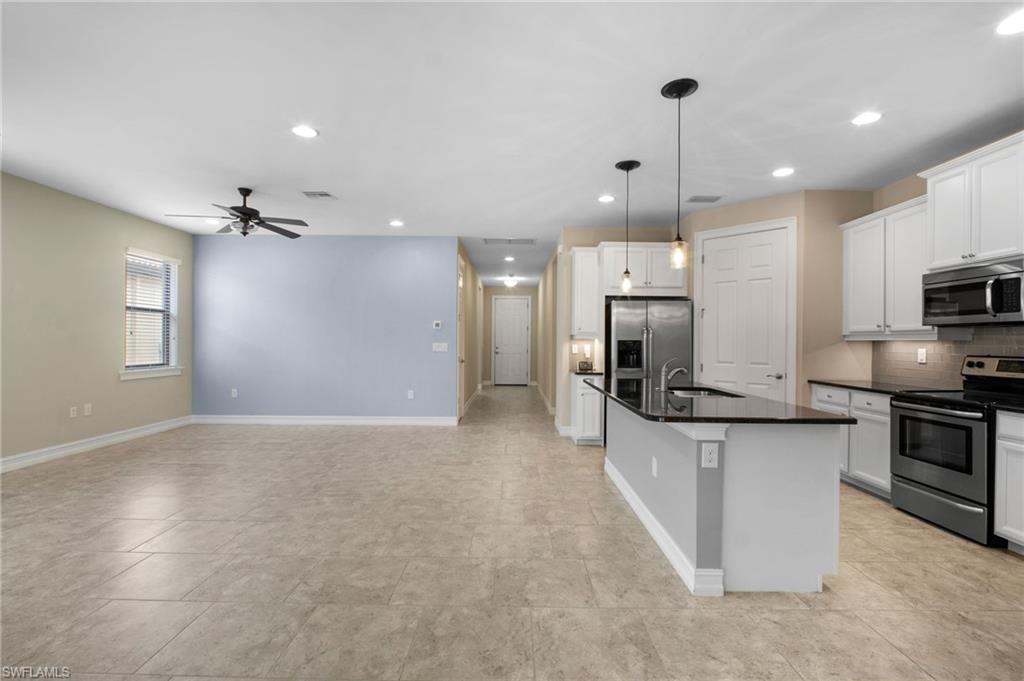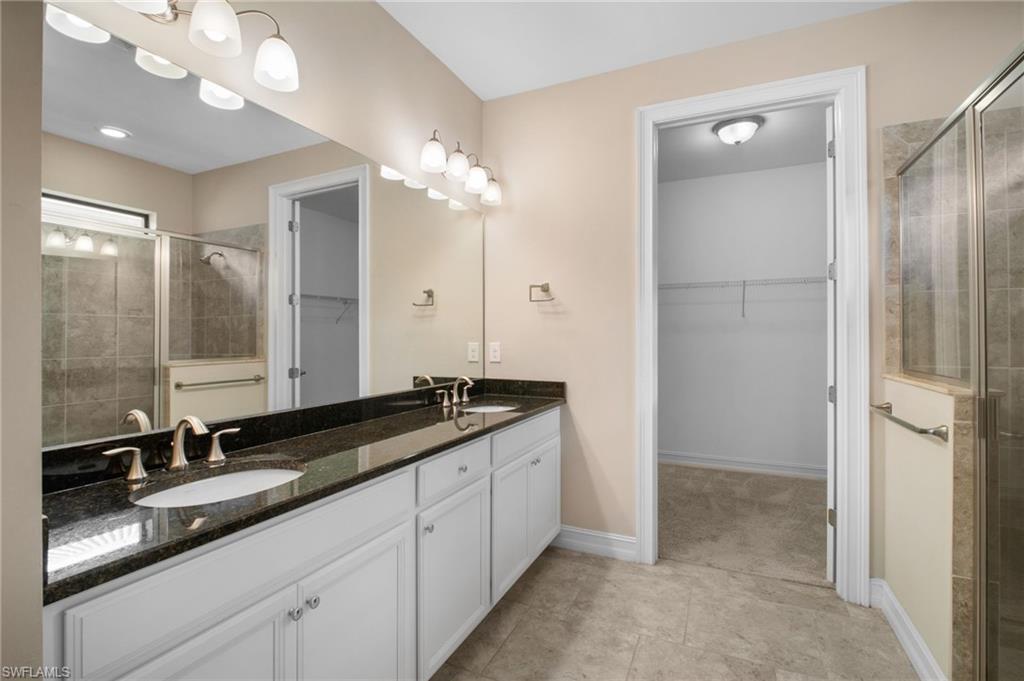 Welcome to Tuscany Pointe, a gated community in North Naples! This immaculate single-family home is move-in ready, featuring fresh neutral paint for a bright and inviting ambiance. The open-concept design seamlessly blends the living and dining areas, complemented by recessed lighting for a modern touch. The sleek white kitchen boasts stainless steel appliances, granite countertops, and a spacious walk-in pantry. The generously sized primary suite offers two large walk-in closets, a roomy walk-in shower, and dual vanities for ultimate comfort. Step outside to the screened lanai, perfect for enjoying Florida’s year-round sunshine. The private backyard provides ample space to add a pool and design your dream outdoor retreat. Additional features include a two-car garage for convenience and extra storage. Ideally situated in Naples, this home is just a short drive from pristine beaches, top shopping destinations, and diverse dining options. With easy access to I-75 and a quick commute to Southwest Florida International Airport, this exceptional home offers endless possibilities.