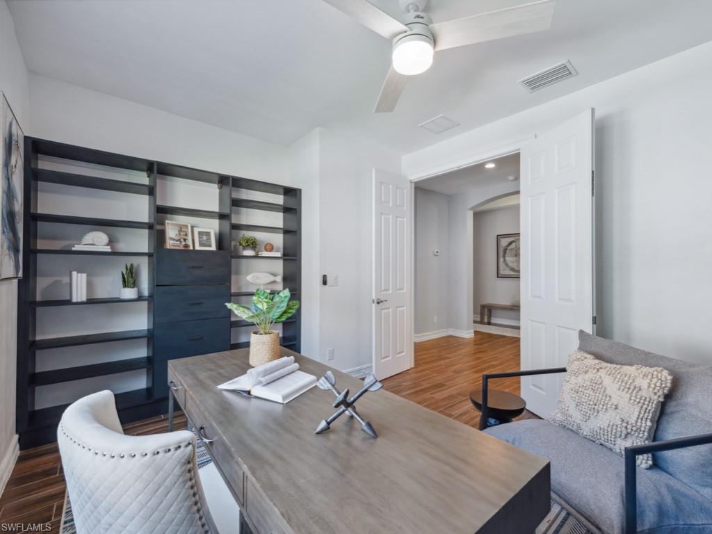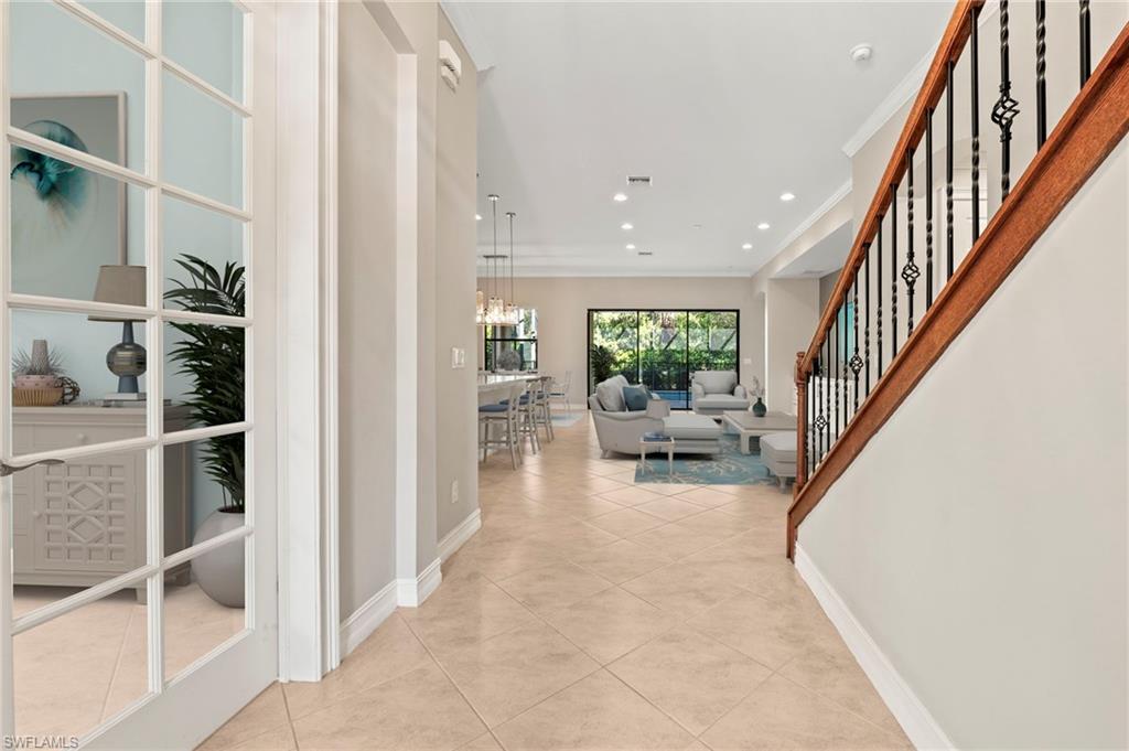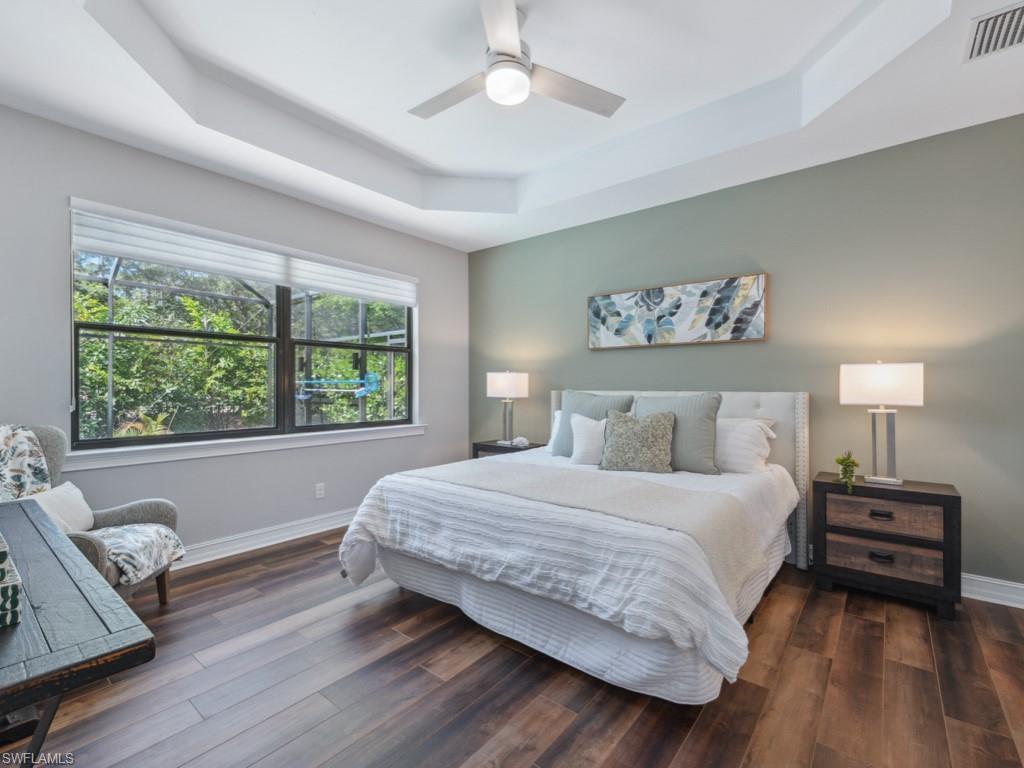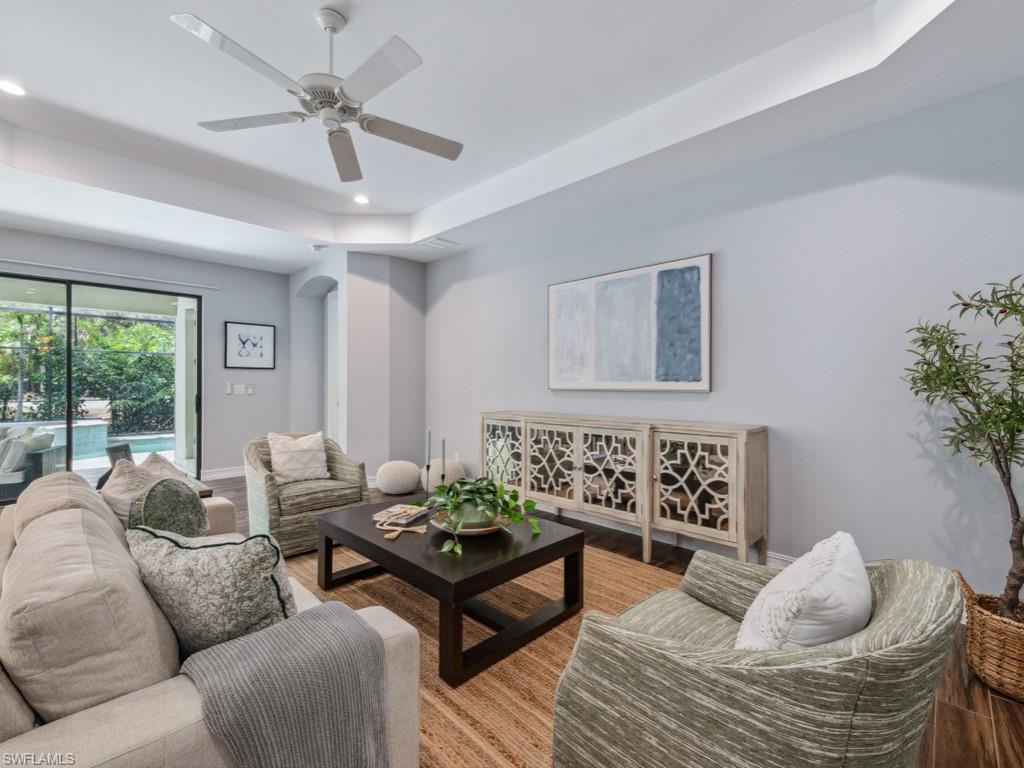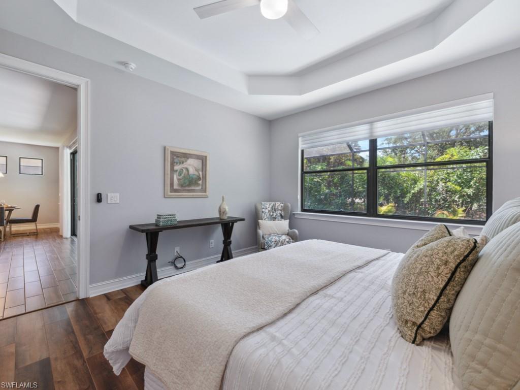 MOTIVATED SELLER! $150,000 in UPGRADES! Picture perfect, absolutely immaculate, GATED, upgraded lakefront home in gated low-density low fee neighborhood perfectly situated in North Naples. Every desirable shopping & dining necessity is within minutes. The Gulf of Mexico is less than 10miles away. Great school district. This split floor plan home is perfect for an active fun loving family, retiree, an empty nester, or professional couple working from home that needs a true office. Flexible floor plan. Recently upgraded with Quartz countertops, designer fixtures, an amazing upgraded Primary bathroom and a generously sized private sparkling swimming pool. The outdoor living space is extremely private and offers the perfect combination of open sunshine and covered space for relaxation and grilling, dining, and entertaining. Super easy to view! Quarterly fees are only $ 860 - very pet friendly
