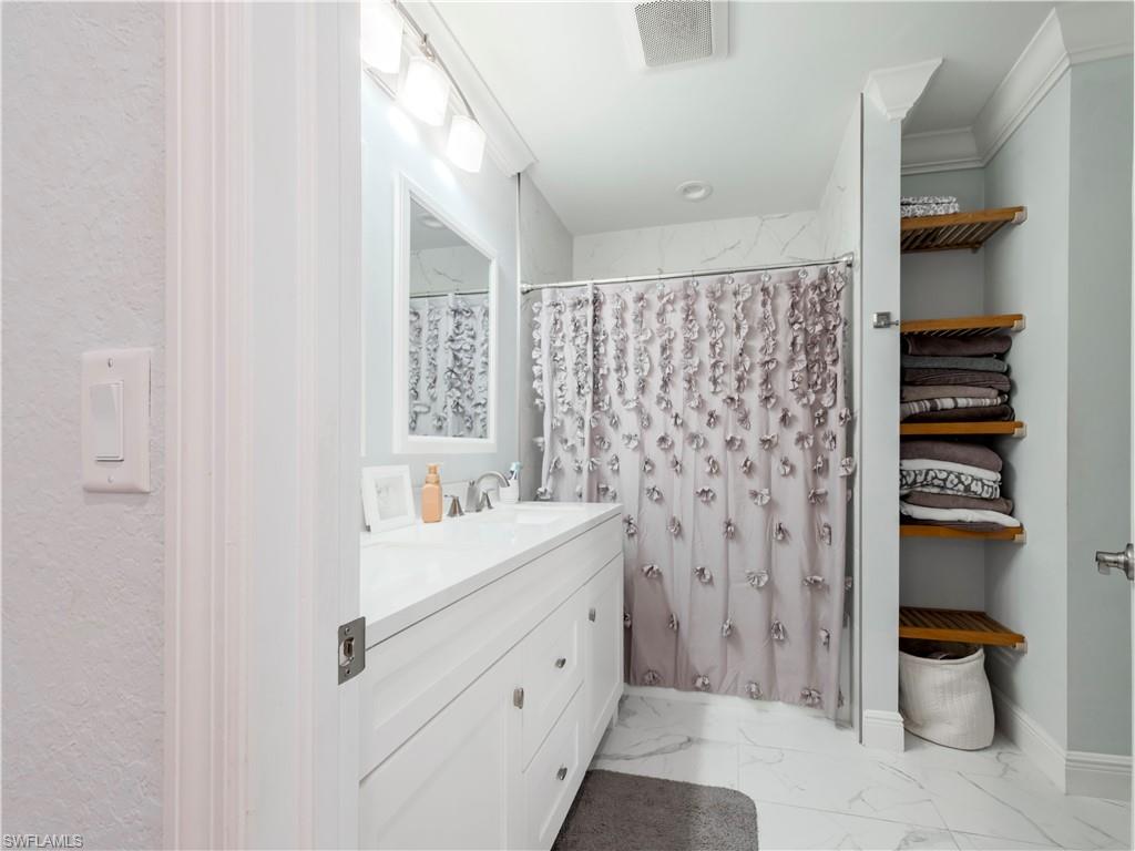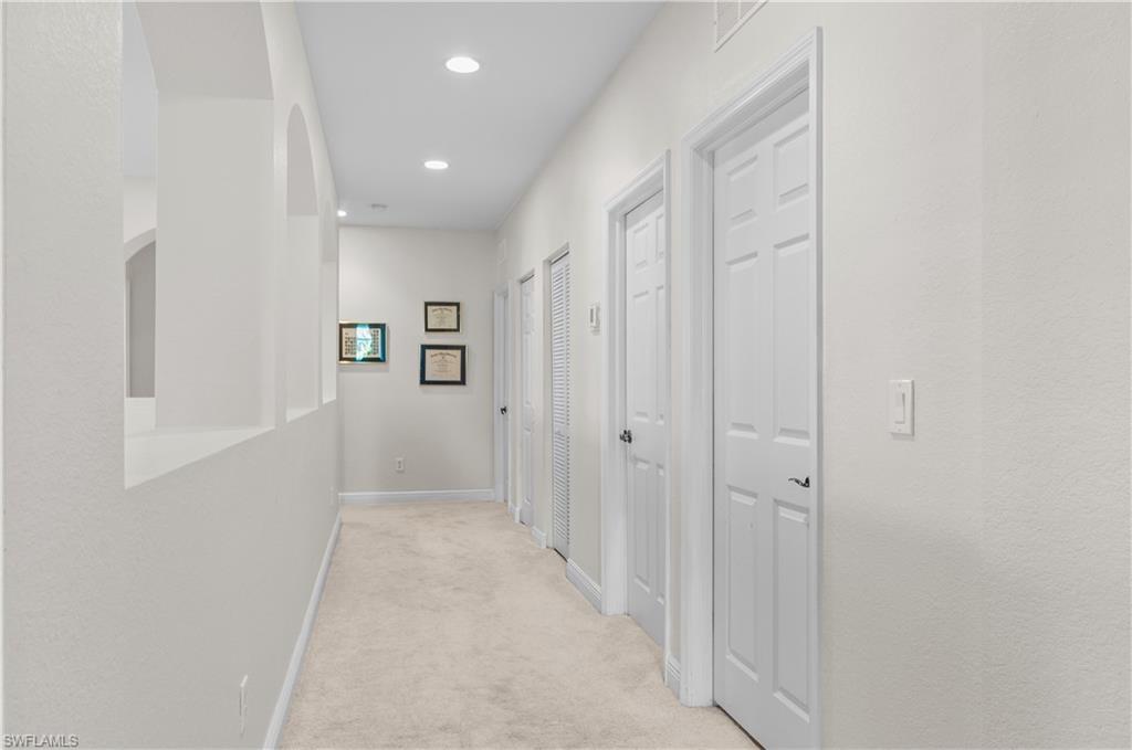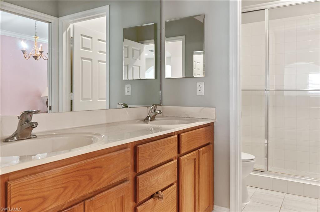 Beautifully Updated Estate Home with Scenic Lake View! This gorgeous move-in ready, spacious 5 bedroom + large loft, 3.5 bath pool home sits on an oversized corner lot with amazing lake views in the highly desired gated, golf-course community of Valencia Country Club. Step inside to find new flooring throughout, an updated kitchen, renovated guest baths, and remodeled Master Bathroom. This layout is extremely popular with the master and 3 other bedrooms on the main floor adding a large bonus room, separate bedroom, and a full bath upstairs for the ultimate media room, home office, or guest suite. Enjoy the Florida lifestyle next to your beautiful saltwater pool and large screened lanai which is absolutely perfect for entertaining, sunbathing, or relaxing by the water. Modern mechanical upgrades include A/C units which were replaced in 2019, electrical panel updated in 2022, water heater in 2024, and new pool pump in 2025. Residents of Valencia Country Club love the resort-style amenities and low-maintenance lifestyle. HOA fees include lawn care, landscaping, irrigation, and access to a beautiful clubhouse with fitness center, café, billiards, theater, library, and a large resort-style pool. Best of all—enjoy golf course living without the high fees. This is the perfect blend of space, upgrades, amenities, and value—all in a peaceful, guard-gated North Naples location. Homes like this don’t come along often.
