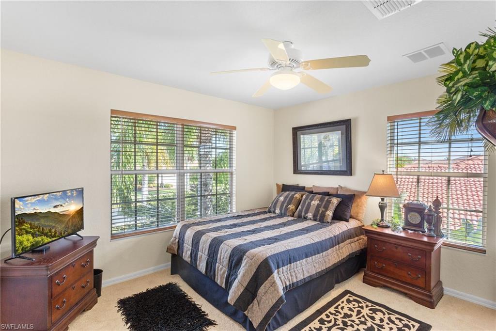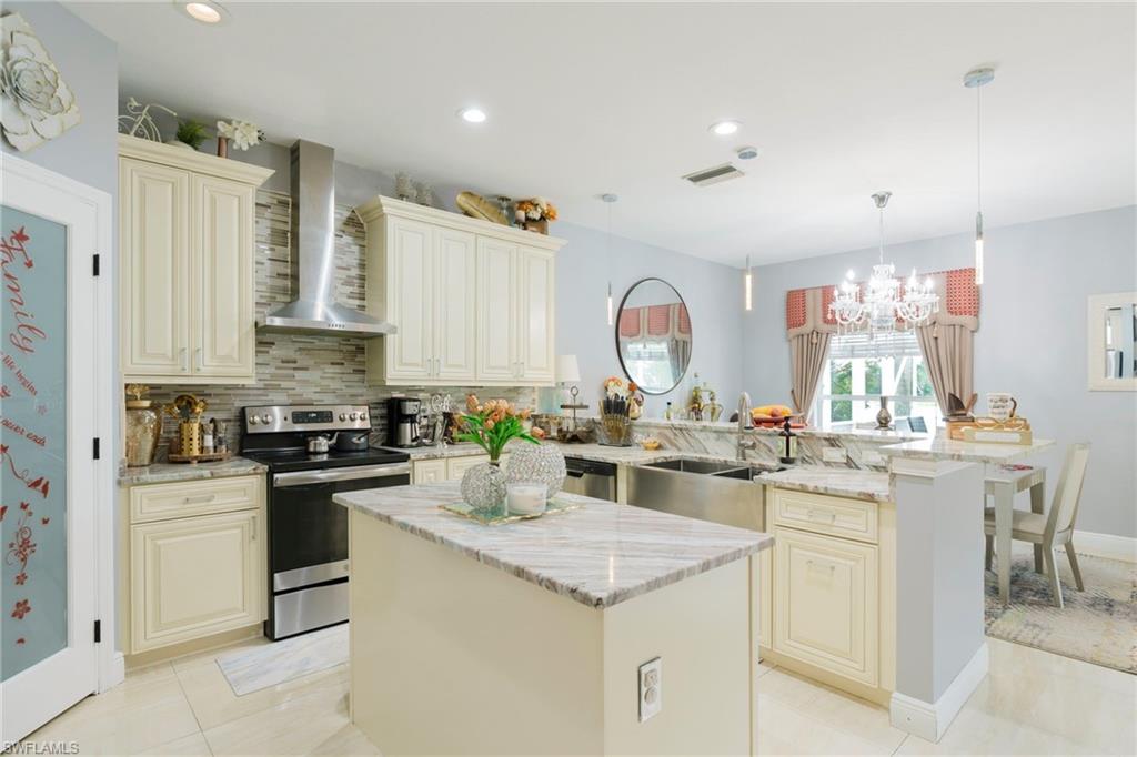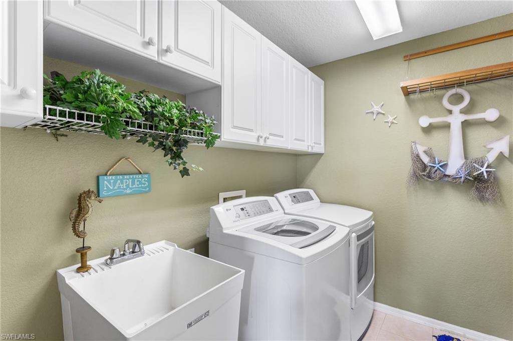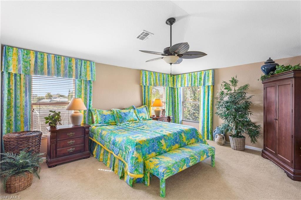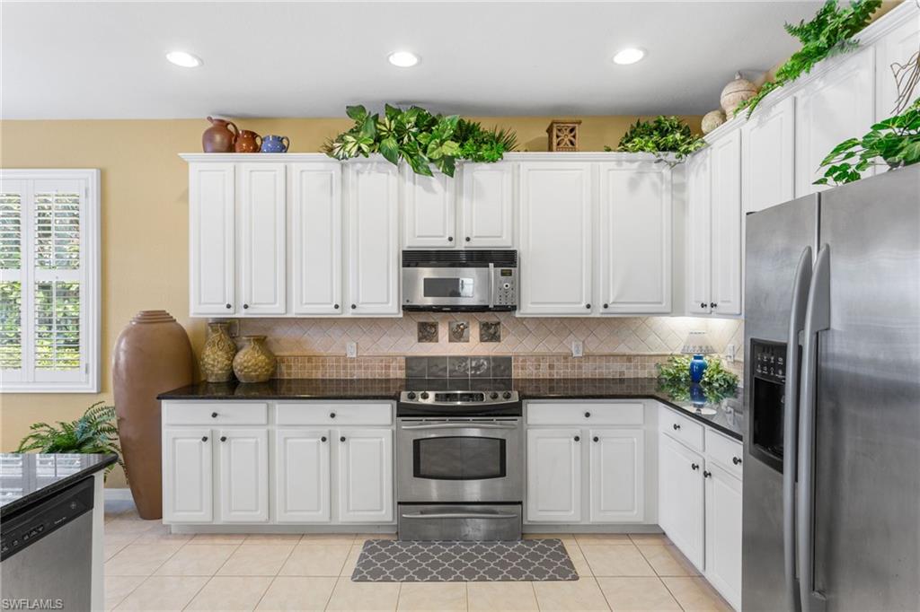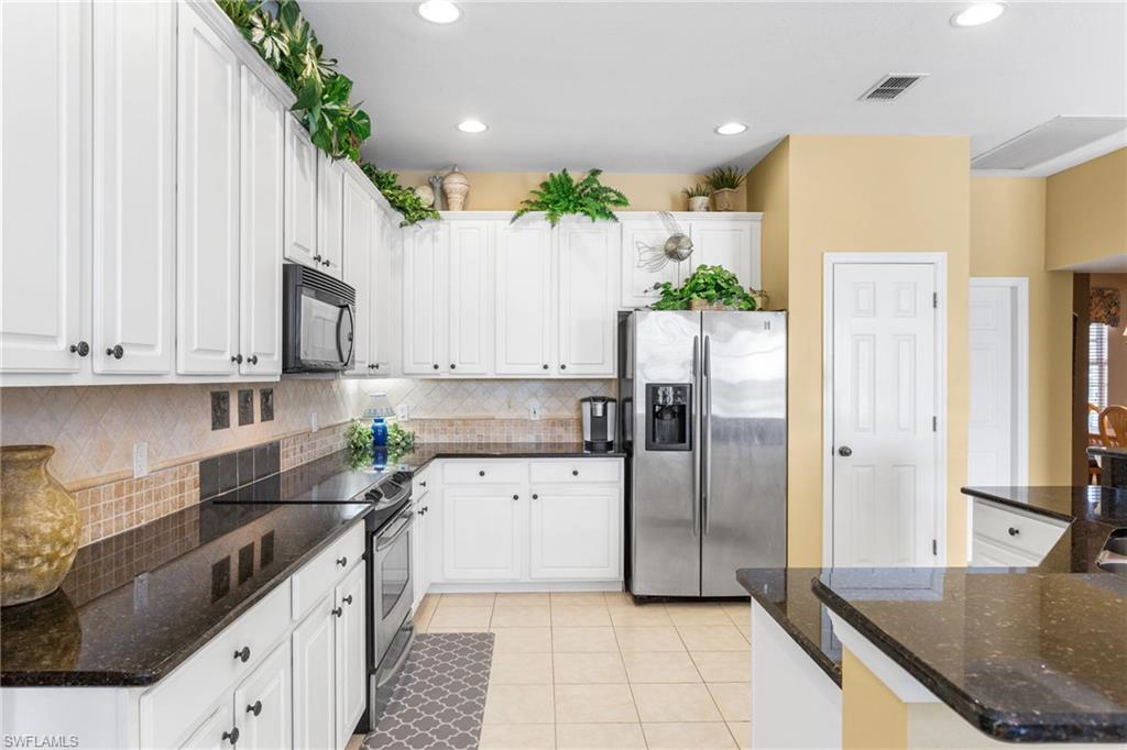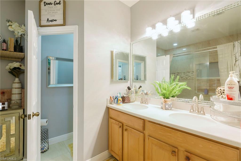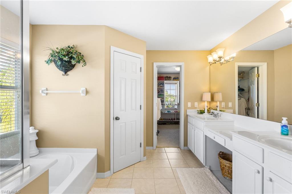 Step through the front door and you’re immediately greeted by 10 foot ceilings, a striking mosaic tile inlay, and an open, airy floor plan that feels both grand and welcoming. The layout is designed for how people actually live today—offering connected spaces for gathering, plus quiet areas for work, guests, and downtime. Just off the main living area, the first-floor den can function as a dedicated home office or hobby room, and can also be utilized as a true first-floor guest suite with an adjoining bathroom—a valuable option for multigenerational living or visiting family and friends. Upstairs, the loft flexes easily as a media room, playroom, fitness area, or second office. Thoughtful details throughout reinforce a sense of comfort, quality, and ease: an oversized 3-car garage for cars, golf gear, and storage; numerous alabaster ceiling fans; window treatments on every window; and plantation shutters in the kitchen and family room that frame the pool and wide lake views. The generously sized lot and landscaping flanking both sides of the pool create a private, resort-like oasis that feels tucked away from neighbors. The large kitchen is intentionally positioned as the heart of the home. An island offers space for prep and casual dining, while granite counters, 42 inch cabinets, a tile backsplash, and abundant cabinet and counter space support everything from quick weeknight meals to holiday gatherings. The kitchen and adjoining family room flow seamlessly to the lanai, where walls of glass invite in natural light and lead your eye straight to the peaceful water view. Upstairs, the spacious primary suite feels like a private retreat. Two walk-in closets provide ample storage, and the en-suite bath features raised dual sinks, a separate shower, and a jetted jacuzzi tub—creating a spa-like place to unwind at the end of the day. Outdoor living is a major highlight. The screened lanai, pool, and raised spa are perfectly oriented with southwest exposure, capturing warm afternoon light and memorable sunsets over the lake. The extra yard space is ideal for pets, gardening, or play, while the wide lake view adds an uncommon sense of openness and tranquility. Valencia Lakes residents enjoy low HOA fees along with a community pool and clubhouse, new Pickleball Courts fitness center, recreation room, children’s playground, basketball court, and tennis court—all in a convenient Naples location close to schools, shopping, dining, and just a short drive to the beaches. Meticulously maintained, generously sized, and set on a premier lakefront lot, 2239 Grove Drive is a compelling opportunity in Valencia Lakes for buyers seeking space, flexibility, and an indoor–outdoor Florida lifestyle. All information is believed to be accurate but is not guaranteed. All measurements, square footage, room dimensions, lot sizes, ages, fees, taxes, school information, HOA rules, and any other details are approximate and/or subject to change without notice
