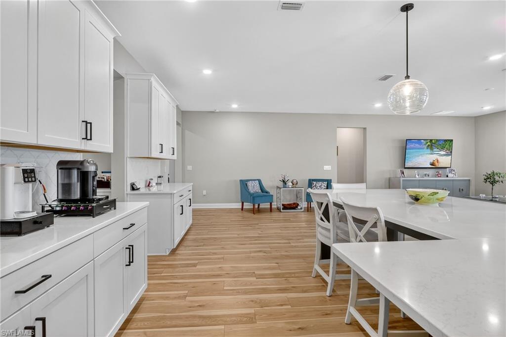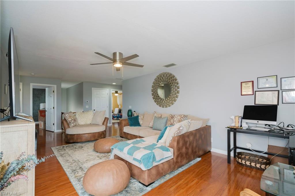Welcome to 2055 Grove Drive At the end of a quiet cul-de-sac in beautiful Valencia Lakes, your Naples dream home awaits. Set on two lots with serene southern lake views, this four-bedroom, three-bath residence blends comfort, space, and style. Step inside to an open-concept living, dining, and kitchen area with quartz countertops, stainless steel appliances, and a spacious island—perfect for morning coffee or evening entertaining. The split-bedroom design offers privacy for all, with a primary suite featuring tray ceilings, dual vanities, and a luxurious walk-in shower. Need a home office? You’ve got one—climate-controlled and ready for productivity. Enjoy the peace of your fully enclosed lanai overlooking the lake or take advantage of the newly refreshed 2025 amenities: a modern clubhouse, pool, fitness center, tennis, and pickleball courts. 2055 Grove Drive—where lakefront living, comfort, and convenience come together in one perfect Naples address.