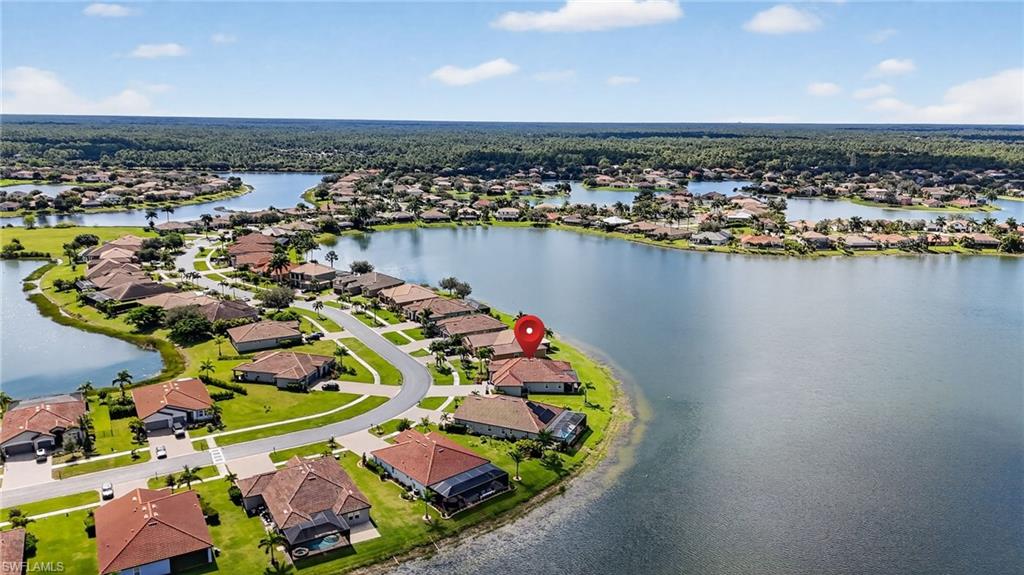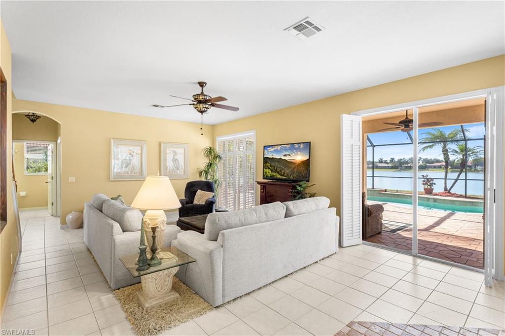 Welcome to 2225 Valencia Lakes Circle, a stunning lakefront home offering some of the best water views in Naples. This 3-bedroom + den, 3-bath residence sits on an extra-wide lot with eastern sunrise exposure, creating the perfect backdrop for peaceful mornings and picturesque views. With nearly 2,600 sq. ft. of living space, this home is designed for both luxury and functionality. The updated kitchen features modern finishes, while tile and hardwood flooring throughout add warmth and elegance. Custom shades provide privacy and style, and a custom wine rack adds a unique touch. The home is equipped with separate cooling systems for personalized comfort in different areas. Step outside to enjoy the heated pool with a soothing waterfall feature, surrounded by a spacious lanai with plenty of seating to take in the serene lake views. A pool fence is included for added safety. Additional upgrades include a 2022 roof, a brand-new irrigation system (2025), and a 3-car garage offering ample storage. Located in the sought-after Valencia Lakes community, this home provides a perfect balance of privacy, space, and breathtaking scenery. Don't miss this rare opportunity to own a piece of paradise!