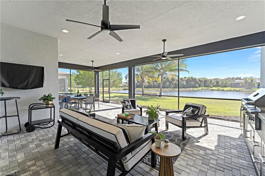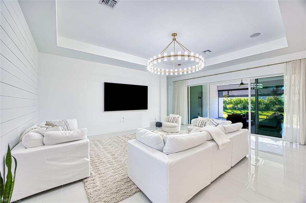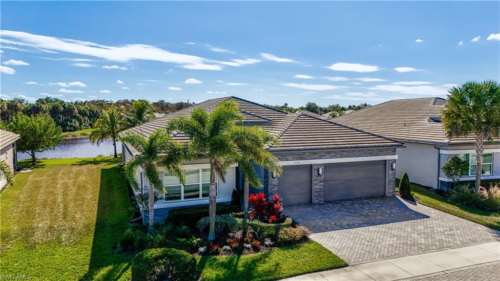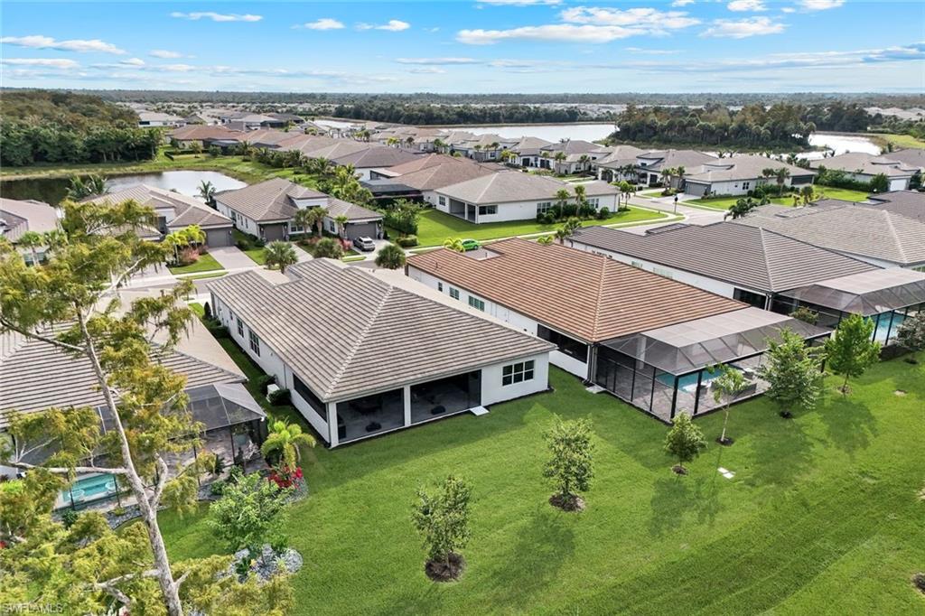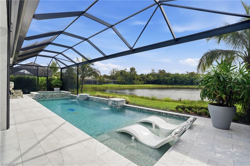 This stunning Sunrise model home offers an unparalleled blend of luxury and comfort in the highly sought-after Valencia Trails, Naples’ premier 55+ community. From the moment you step inside, the soaring 14-foot ceilings with a custom focal wall create an immediate sense of sophistication. The open-concept design seamlessly connects the kitchen and living areas, making it ideal for everyday living and elegant entertaining. The combination of luxury vinyl flooring throughout and cozy carpeting in the bedrooms ensures both style and comfort. The chef’s kitchen is a true showpiece, featuring quartz countertops, quartz backsplash, a natural gas stove, instant hot water, premium stainless steel appliances, an upgraded pantry, upgraded from cabinets to drawers, and pullout trash bins. Cabinetry with soft-close functionality and elegant molding adds a touch of refinement, while ample recessed lighting enhances the space. Just outside the glass sliding doors is an outdoor oasis retreat, complete with an extended covered lanai, private saltwater pool with gas heater, outdoor kitchen, pool cage, and breathtaking views of the pond. For peace of mind, the home has security cameras and an alarm system. Whether you’re enjoying a quiet morning coffee or hosting guests for an evening gathering, this tranquil retreat offers a seamless blend of indoor-outdoor living. Beyond your doorstep, Valencia Trails offers world-class amenities designed to enhance an active and social lifestyle. The impressive 43,000-square-foot clubhouse features a full-service restaurant and bar, a state-of-the-art fitness center, a full-service salon and spa, and multiple recreational spaces, including card rooms, an art studio, and a learning kitchen. For those who love outdoor activities, the community boasts a resort-style pool, a lap pool, a resistance pool, six tennis courts, eight pickleball courts, and scenic walking and biking trails. Even your four-legged companions will feel at home with two dedicated dog parks. This is more than just a home—it’s an opportunity to embrace a luxurious, resort-style lifestyle in one of Naples’ most exclusive communities. Homes like this are rare, and demand for Valencia Trails continues to grow. Don’t miss your chance to own a piece of paradise. Call today to schedule your private tour and experience the elegance, comfort, and breathtaking lake views for yourself."