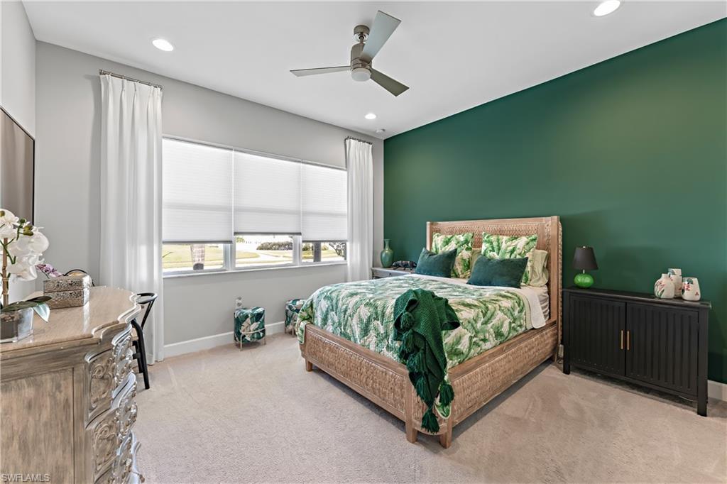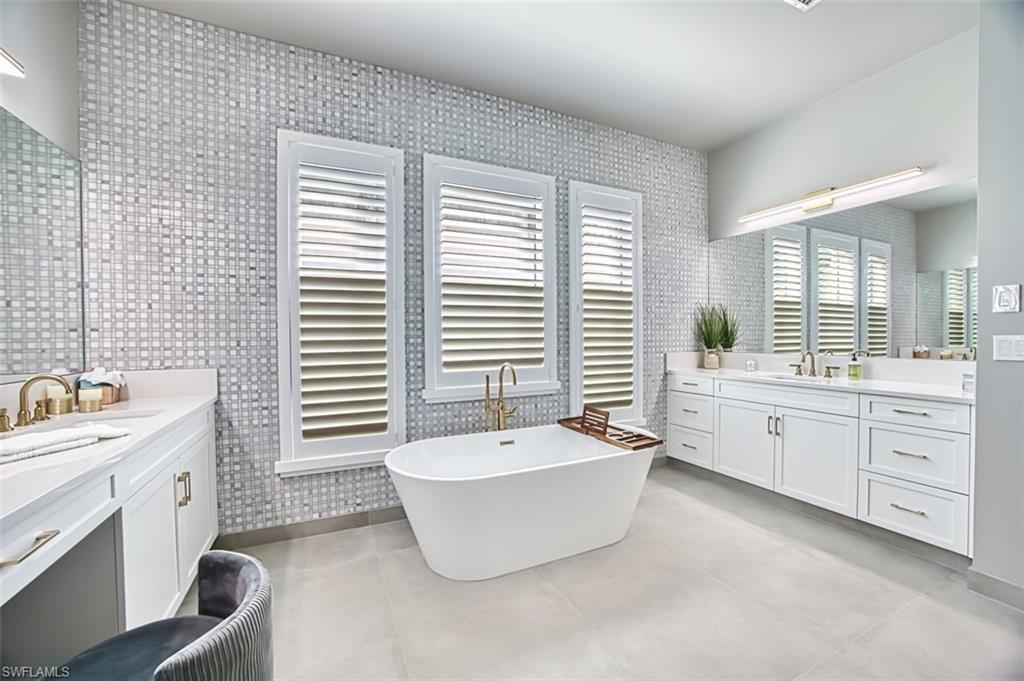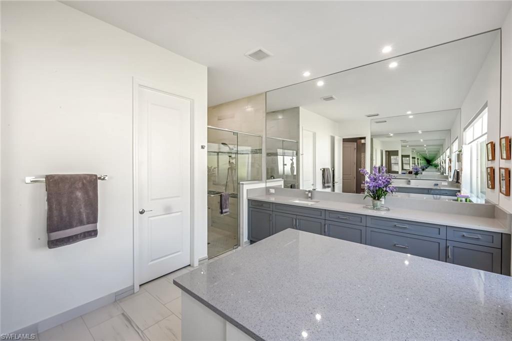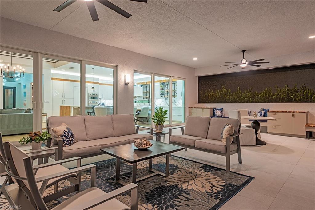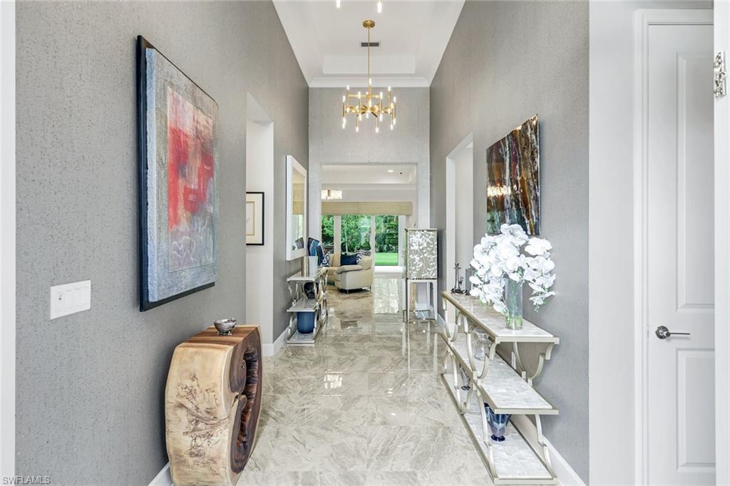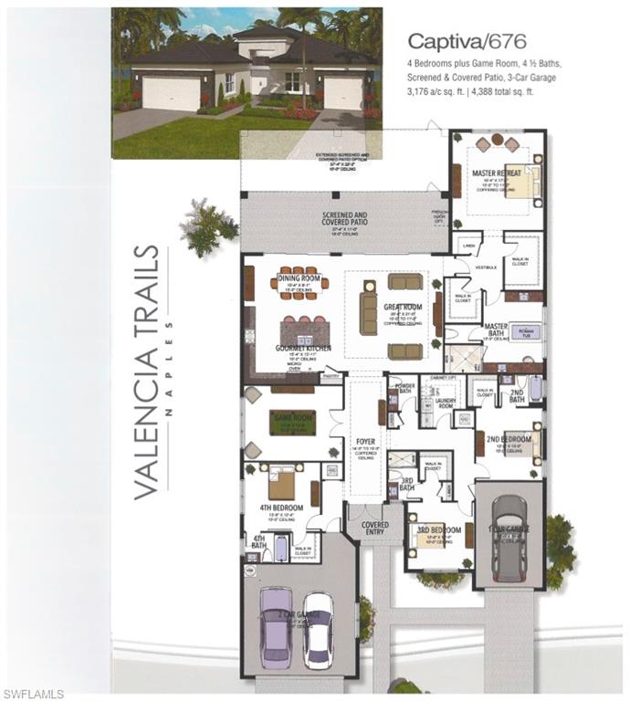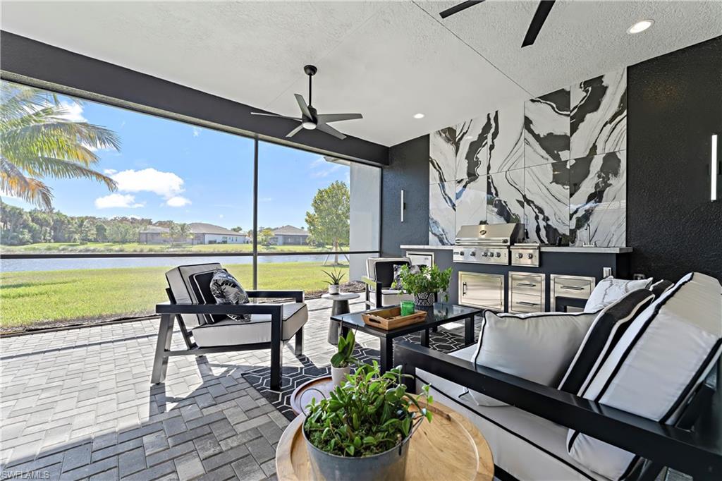 Discover unparalleled luxury in Naples' premier 55+ community, Valencia Trails, with this exquisite Captiva floorplan home, a highly sought-after design by GL Homes. Built in 2023, this newly constructed residence boasts professional decor and nearly every premium builder upgrade available. Situated on one of the largest lots in the community—nearly half an acre—this corner property on a private cul-de-sac street offers both space and serenity. The renowned Valencia Trails clubhouse is just a short stroll around the corner. This expansive home features 4 bedrooms, each with its own en suite bathroom, plus an additional half guest bath for ultimate convenience. Car enthusiasts will appreciate the air-conditioned, extended-length 3-car garage, perfect for your collection. Step outside to the iconic Captiva covered lanai, measuring an impressive 37 x 22 feet, complete with a state-of-the-art summer kitchen and exceptional outdoor living space. The custom saltwater pool and spa create a refreshing daytime oasis and transform into a dazzling nighttime retreat with a lighted spa waterfall and elegant spill-over bowls. Valencia Trails is equipped with natural gas, and this home includes a natural gas cooktop, water tank, and pool heater for added efficiency and comfort.