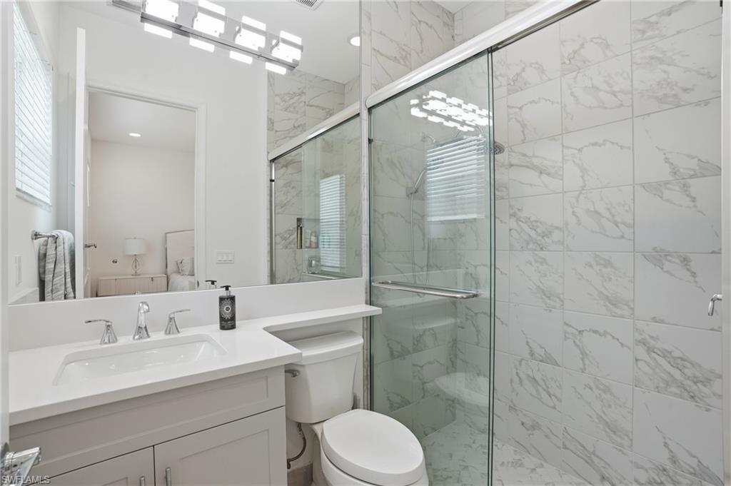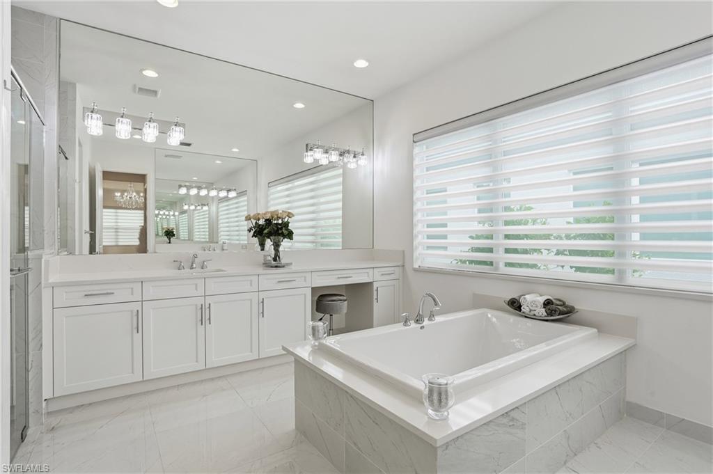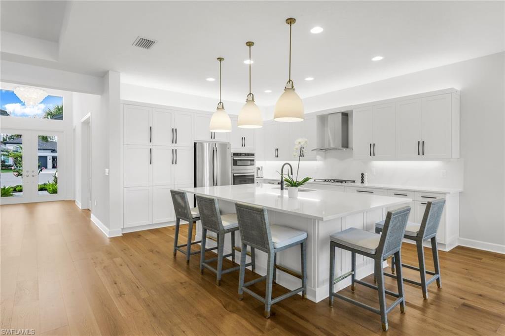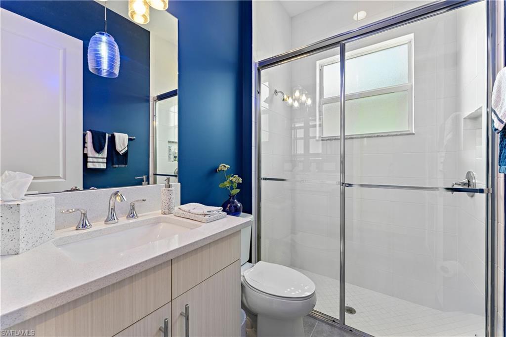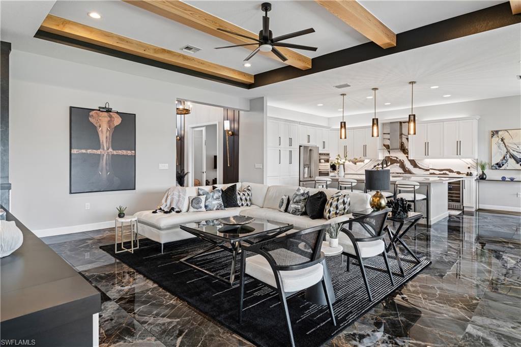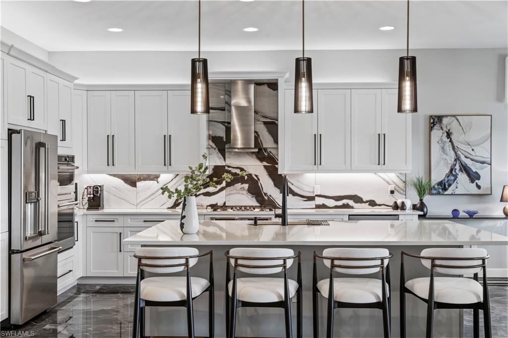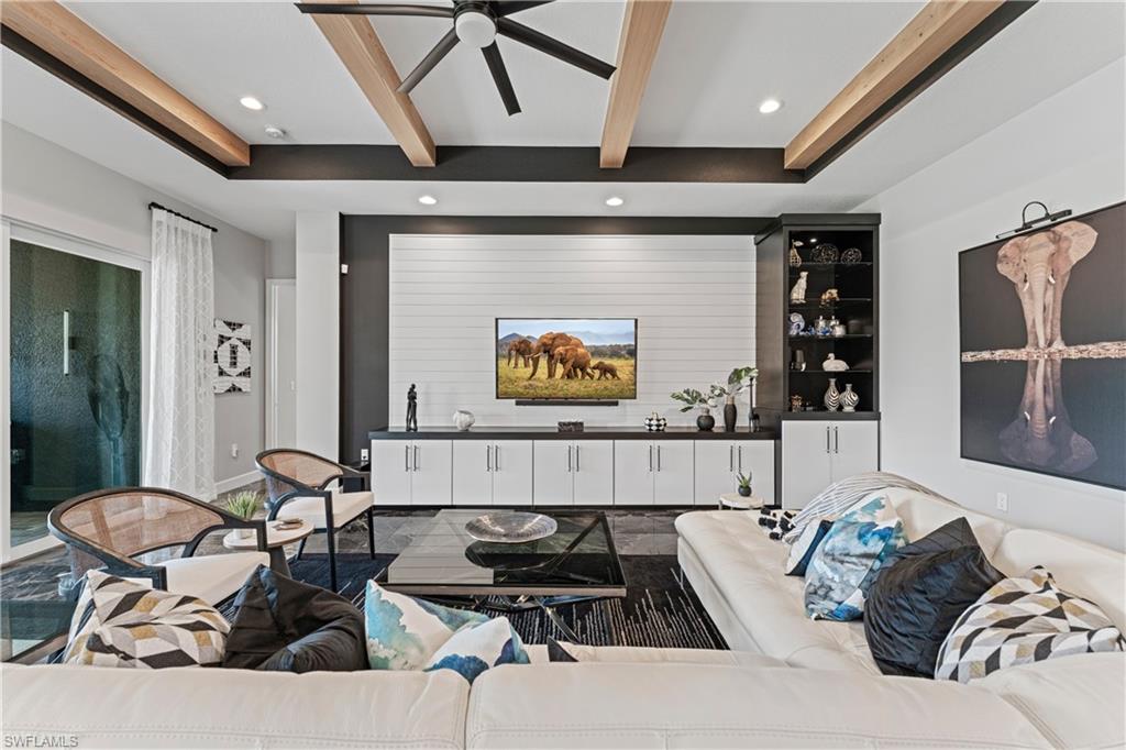 Discover unparalleled luxury in Naples' premier 55+ community, Valencia Trails, with this exquisite Captiva floorplan home, a highly sought-after design by GL Homes. Built in 2023, this newly constructed residence boasts professional decor and nearly every premium builder upgrade available. Situated on one of the largest lots in the community—nearly half an acre—this corner property on a private cul-de-sac street offers both space and serenity. The renowned Valencia Trails clubhouse is just a short stroll around the corner. This expansive home features 4 bedrooms, each with its own en suite bathroom, plus an additional half guest bath for ultimate convenience. Car enthusiasts will appreciate the air-conditioned, extended-length 3-car garage, perfect for your collection. Step outside to the iconic Captiva covered lanai, measuring an impressive 37 x 22 feet, complete with a state-of-the-art summer kitchen and exceptional outdoor living space. The custom saltwater pool and spa create a refreshing daytime oasis and transform into a dazzling nighttime retreat with a lighted spa waterfall and elegant spill-over bowls. Valencia Trails is equipped with natural gas, and this home includes a natural gas cooktop, water tank, and pool heater for added efficiency and comfort.