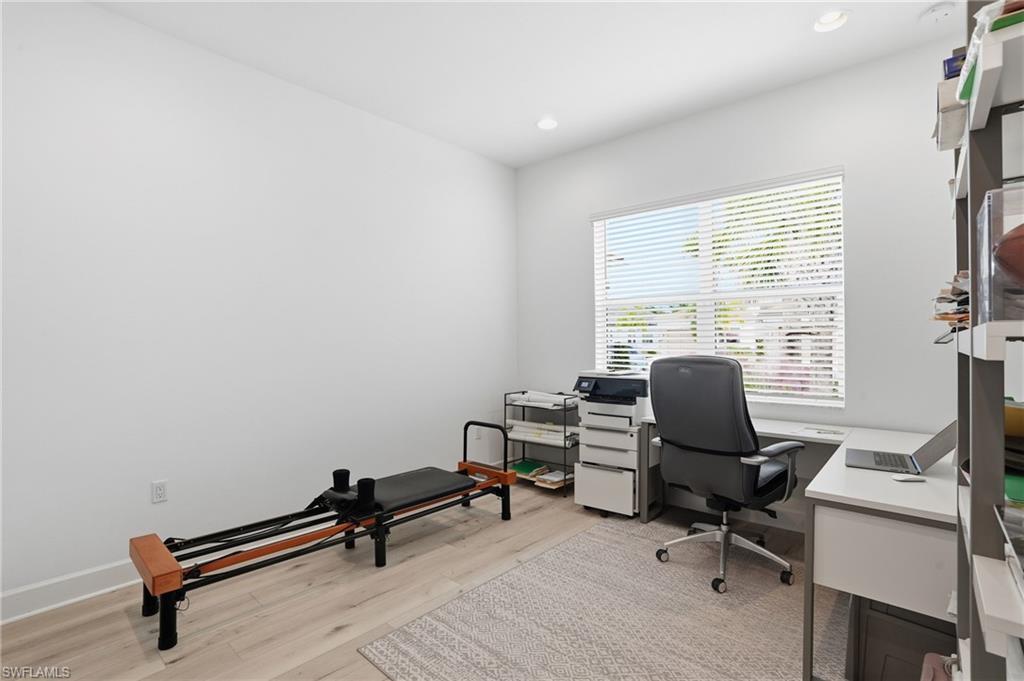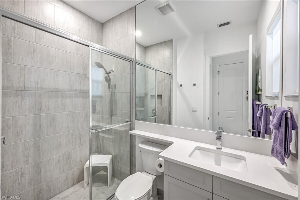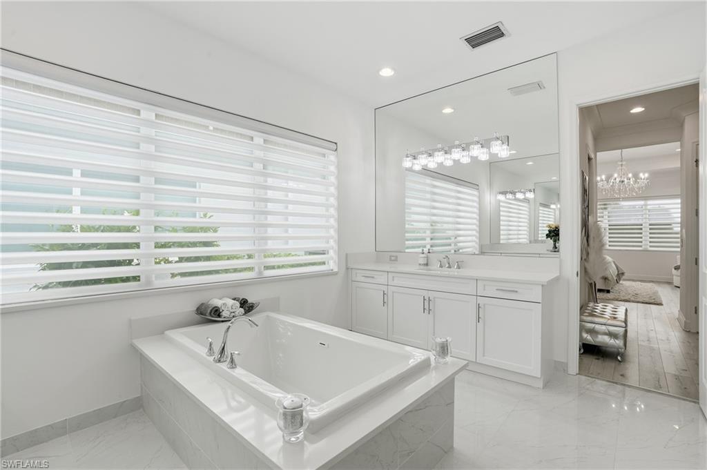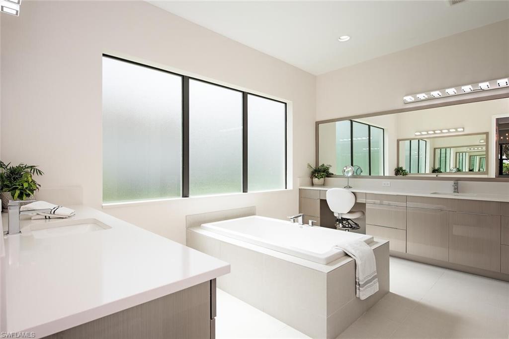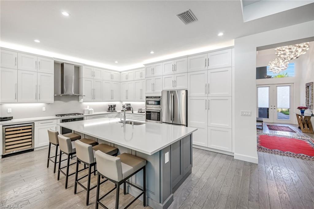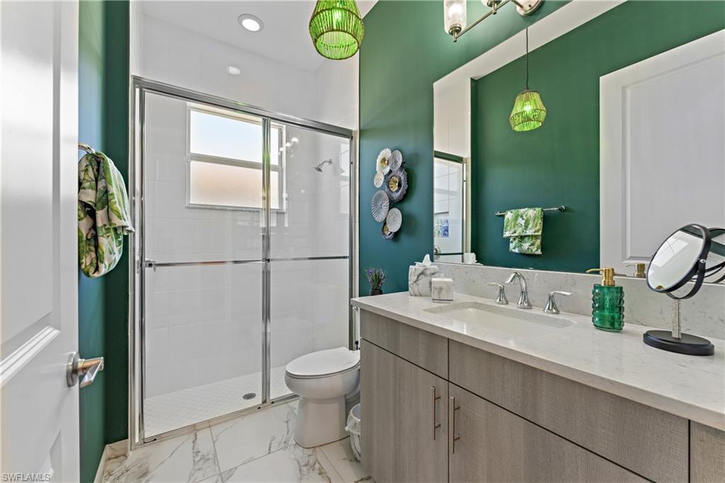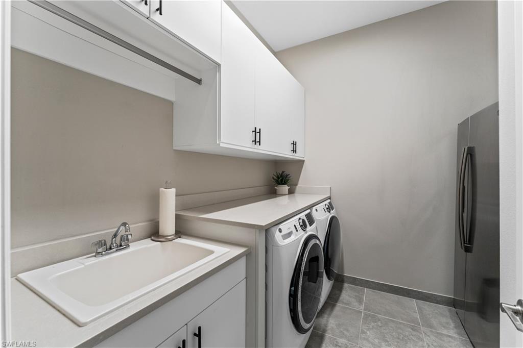 Discover unparalleled luxury in Naples' premier 55+ community, Valencia Trails, with this exquisite Captiva floorplan home, a highly sought-after design by GL Homes. Built in 2023, this newly constructed residence boasts professional decor and nearly every premium builder upgrade available. Situated on one of the largest lots in the community—nearly half an acre—this corner property on a private cul-de-sac street offers both space and serenity. The renowned Valencia Trails clubhouse is just a short stroll around the corner. This expansive home features 4 bedrooms, each with its own en suite bathroom, plus an additional half guest bath for ultimate convenience. Car enthusiasts will appreciate the air-conditioned, extended-length 3-car garage, perfect for your collection. Step outside to the iconic Captiva covered lanai, measuring an impressive 37 x 22 feet, complete with a state-of-the-art summer kitchen and exceptional outdoor living space. The custom saltwater pool and spa create a refreshing daytime oasis and transform into a dazzling nighttime retreat with a lighted spa waterfall and elegant spill-over bowls. Valencia Trails is equipped with natural gas, and this home includes a natural gas cooktop, water tank, and pool heater for added efficiency and comfort.