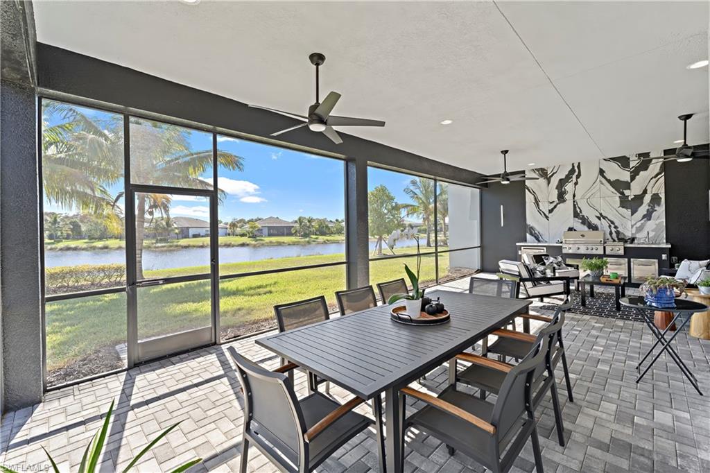 LIMITED OPPORTUNITY! Huge price drop by motivated seller who wants offers now and will consider all offers. Here is your opportunity to get one of the largest homes available in Valencia Trails, on one of the best lots with breath-taking sunset views, under market value! This prestigious lot location was won in the developers initial “Lot Lottery” for its spectacular island view. MUST SEE this incredible home boasting the pinnacle of luxury living with private sunset lake views of a picturesque preserve island backdrop. This exceptional home has been meticulously upgraded with over $500,000 in upgrades and finishes, offering a true move-in ready experience. Too many enhancements to list, including engineered hardwood flooring, custom paint and trim work throughout, designer lighting, built-ins, and custom trim work throughout. This open floor plan seamlessly connects the living, dining, and kitchen areas, creating the perfect space for entertaining, with a true gourmet kitchen featuring pull-out drawers and shelves, and multiple beverage fridges. Large sliders to the lanai flood the home with natural light, and the open pool area provides optimal sunbathing! Step outside to your private outdoor oasis, protected with motorized hurricane screens, allowing to enjoy a screened lanai area. The expansive patio with custom outdoor natural gas kitchen provides an ideal setting for al fresco dining, lounging, and enjoying the serene scenery. Each of the 4 bedrooms boasts its own private ensuite bathroom. The primary suite is a haven of relaxation with spa-like en-suite retreat is featuring a soaking tub, walk-in shower, and dual vanities. The walk-in closets with custom built-ins offer abundant, well-designed space for your wardrobe. This new 55+ resort community features an exceptional lifestyle at the 43,000 sq. ft. clubhouse, including the resort-style pool, 70 ft. lap pool, resistance pool, outdoor firepit, onsite restaurant, poolside bar, social hall with dance floor and stage, full-service spa, fitness center, nail salon, cooking studio, and much more. Situated on 160 acres of pristine preserve with over 3 miles of walking trails and endless activities including pickleball, tennis, bocce, dog park, and more. This exceptional home is a rare find and a must-see. Be sure to check out the walk-through video.