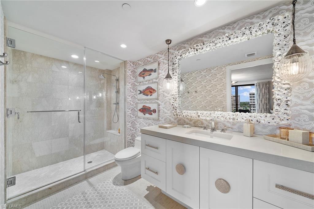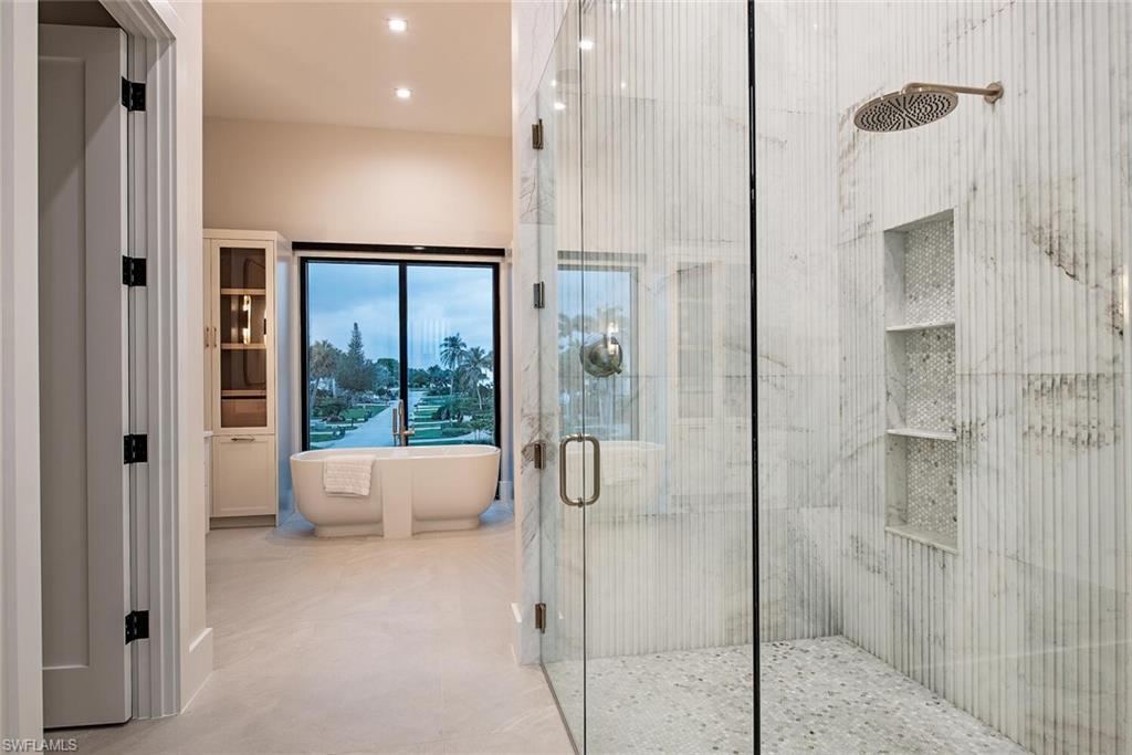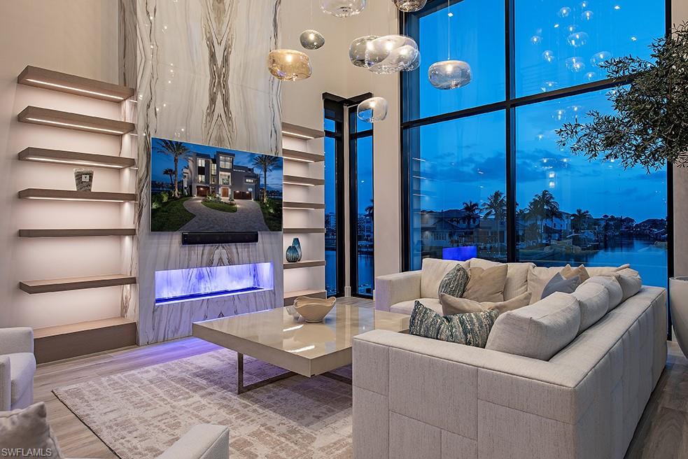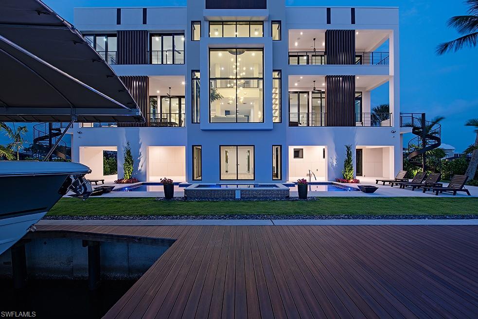 This one-of-a-kind waterfront masterpiece at 260 Channel Drive defines Naples coastal living at its finest. Walk to the powder-white sands of Vanderbilt Beach and enjoy having your boat right in your backyard for effortless Gulf access. Designed for those who appreciate exceptional craftsmanship and cutting-edge architecture, this residence blends glass, steel, and natural light into a breathtaking modern statement. Four levels of inspired design showcase panoramic bay views through walls of glass and expansive terraces that capture the essence of indoor-outdoor living. The exterior sets a bold tone with a granite paver driveway, a 3-car garage featuring frosted glass doors, stainless balcony railings, and a striking glass-and-steel staircase. Step inside through a 12-foot Tiffany-inspired stainless-steel entry door to discover a luminous interior wrapped in pure Thassos marble floors and anchored by a dramatic glass staircase framed in Macassar wood. The gourmet Allmilmo kitchen—crafted in Germany—is paired with Miele and Gaggenau appliances, dual dishwashers, dual laundry sets, and a temperature-controlled wine cooler, blending form and function seamlessly. Every detail reflects European precision and design, from the custom Bartels German interior doors to the Bisazza mosaic tile bathrooms in each ensuite. The primary suite elevates luxury with gold-leaf Bisazza tile and sweeping bay views. A state-of-the-art cinema room offers a 120” screen, 3D anamorphic projector, Bang & Olufsen sound, and Swarovski crystal lighting for an immersive experience. Additional features include an elevator with Swarovski accents, Crestron home automation, and a LightTouch lighting system throughout. The lower level provides a versatile living area with a steam room and direct access to the pool and dock—ideal for guests or a private wellness retreat. Perfectly positioned along the three finger streets in Connors off Gulf Shore Drive, this south-facing residence captures all-day sunlight and the rare combination of beachside convenience and boating luxury. Just steps to Vanderbilt Beach and LaPlaya Beach & Golf Club, and a short drive to The Ritz-Carlton, as well as the upscale shops and dining at Mercato and Waterside Shops, 260 Channel Drive delivers the ultimate Naples lifestyle—where modern design meets coastal serenity.