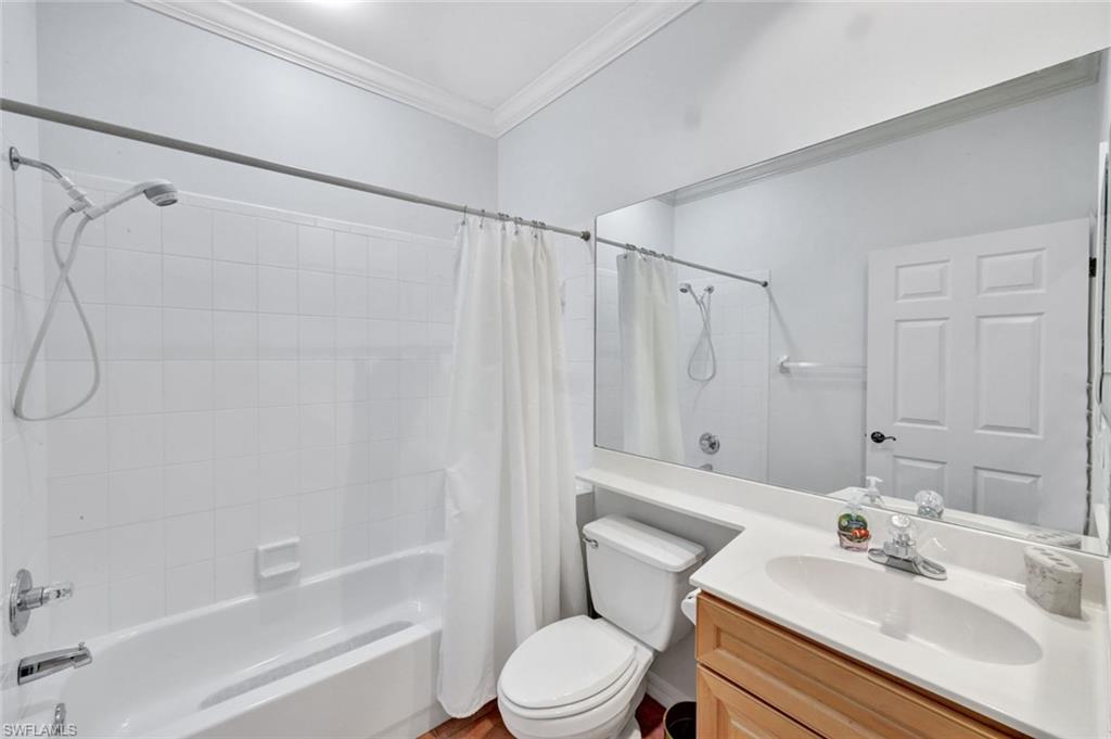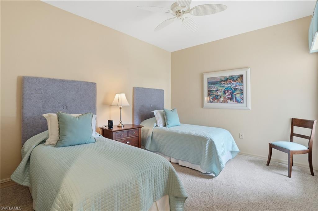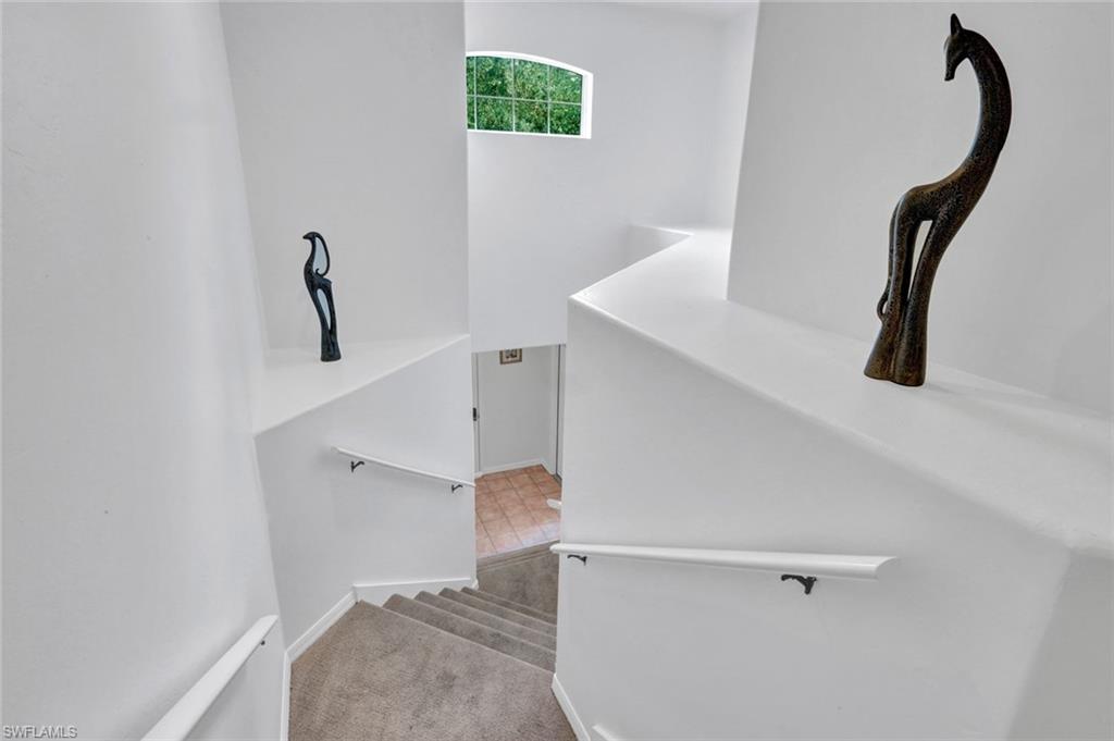 RARELY AVAILABLE 2ND FOOR CARRIAGE HOME WITH DESIRABLE EASTERN LANAI EXPOSURE. Vanderbilt Country club is an exceptional BUNDLED GOLF COMMUNITY with a well-respected golf course & driving range. The tree-lined 18 hole, par course winds through 6,631 yards of beauty and is enhanced by stunning landscape. This well maintained, clean unit offers newer appliances and a breakfast nook opening to a spacious lanai surrounded by nature. The living room/dining room open concept configuration with vaulted ceilings presents a roomy comfortable living space. This second floor home is in a convenient location with a two car garage, plantation shutters, as well as partial furnished. Extra bonus room/den is perfect for overflow company or an office with pullout couch adds to the value of this property. Brand new resort style pool and Bocce courts just completed 8/25, multiple satellite pools, tennis, pickleball, dances. Formal and casual restaurants and most importantly a friendly, fun-loving community enhance the lifestyle of all that come to live and visit. The Terrace bar is adjacent to the pool and island vibe. PT, personal training, with multiple classes, are at your back door. Don't miss out on this one!