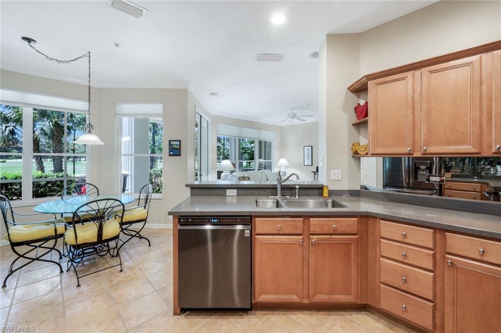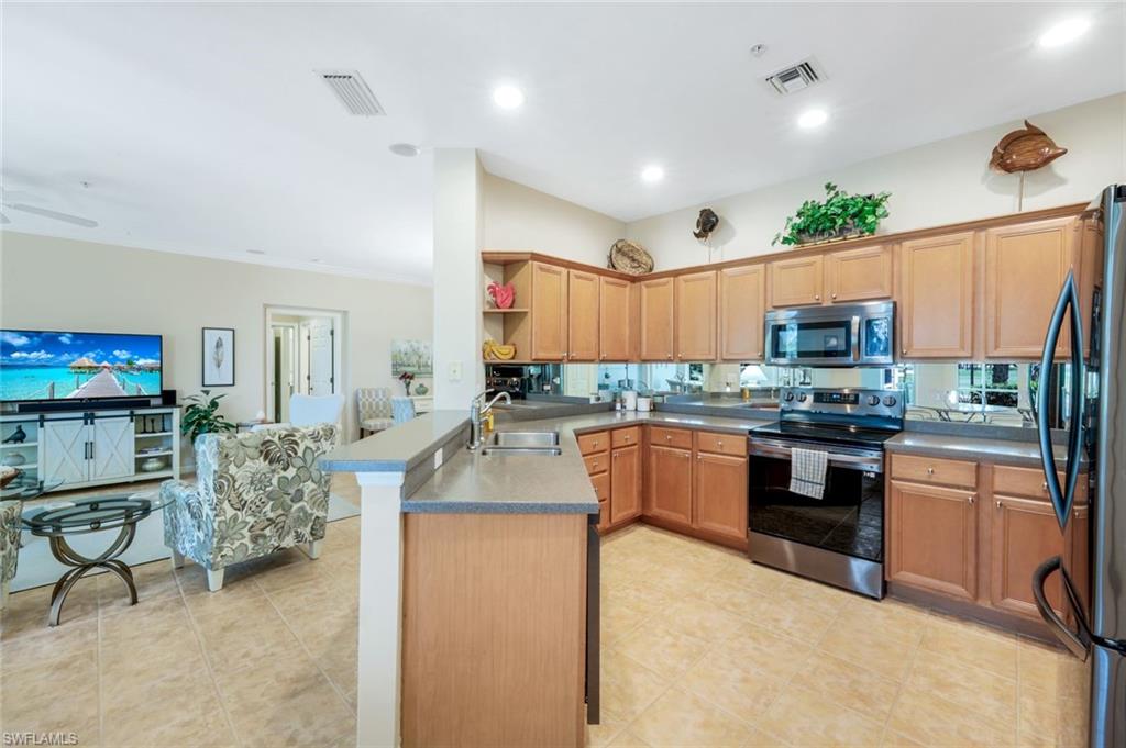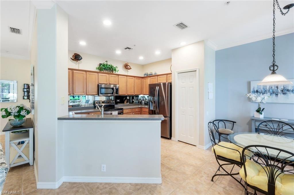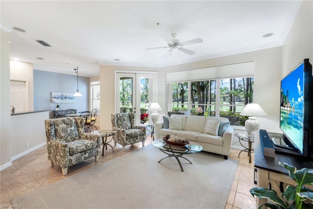 Location. Location. Location! Naples has once again been named the #1 place to retire in the U.S. by U.S. News & World Report, and this turnkey 2BR + Den carriage home with garage offers the perfect opportunity to enjoy everything this vibrant community has to offer. Ideally situated in Vanderbilt CC, an inland gated 18 hole bundled par 72 golf community, this home boasts expansive views of the 16th fairway and lake. Start your day with coffee and a sunrise on the oversized, northern facing lanai—a tranquil retreat with double-door access from the bright, open-concept living area. Screened in entry allows for breezes that flow through out the home. Perfect for entertaining, the home features crown molding throughout, neutral finishes, tile and luxury vinyl flooring, and a smart split-bedroom floor plan for ultimate privacy. The primary bedroom has en-suite bathroom, access to the lanai, a walk in closet and beautiful views of the golf course. There is an oversized bedroom perfect for guests. The den is equipped with a pull-out single bed/couch which makes a great home office or additional guest space. Newer washer and dryer is also included. The eat-in kitchen has new stainless steel appliances, a tiled backsplash and is both stylish and functional. The home comes with a Home Tech home warranty! Live the resort lifestyle with amenities including: • A stunning clubhouse with dining options • A resort-style pool + satellite pools • Har-Tru tennis courts, bocce, and full-time tennis & golf pros • A standalone fitness center with massage therapy, PT services, and organized classes Once you arrive—you may never leave.