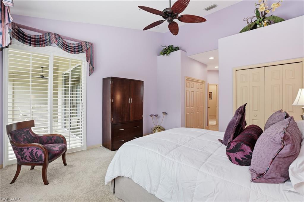 This is the sought after AUGUSTA floorplan. We call it VILLA BELVEDERE (“beautiful view”) with the spectacular and unequalled “Million Dollar “ view of the meandering lake waters and golf course . Here on your LANAI is where you will enjoy incredible sunrises over the 12th hole while sipping your morning coffee. The BREAKFAST NOOK in KITCHEN features a custom designed banquette with extra storage space as well. GUEST BATH is updated with custom cabinetry topped with Carrara marble and white Subway tiled Shower . Toilet fitted with LUXE Bidet MASTER BEDROOM features on either side of the bed custom built-in bookshelves and cabinets . CALIFORNIA CLOSET in MBR maximizes every inch of space . MASTER BATHROOM has custom cabinets topped with Travertine Marble (not granite) A wall of Travertine forms the counter to ceiling height backsplash . The bathroom contains a soaking tub and tiled glass enclosed shower . Toilette fitted with LUXE Bidet. OFFICE/DEN contains an endless amount of cabinet space and display bookshelves . A custom made file cabinet allows for a slide out printer shelf and slide out paper shredder . HOME TECH Service contract for appliances is transferable and includes Dishwasher, Garbage disposal, Refrigerator, Range, Washer & Dryer, Microwave, Hot Water Heater, AC. Extended warranty expires 2028. Full house sound system with ceiling speakers in Den, MBR, LR, and Lanai. FRONT DOOR is equipped with a Phantom Screen which allows for cross ventilation. Landscape Architect designed LANAI GARDEN features custom made Garden Benches and automatic irrigation system. The LANAI has a Motorized retractable Hurricane screen effective up to winds of 150 mph. Rain or shine, you can enjoy the lanai year 'round. These screen shutters retain about 75% of the air conditioning. Power outages are a thing of the past, thanks to the newly installed "$20,000 WHOLE HOUSE GENERAC GENERATOR