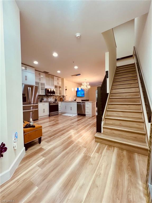 LETS TALK ABOUT THIS LOCATION! North Naples, A-rated school district, moments to paradise beaches, fine dining, shopping, golf & RSW airport! Welcome home to this newly remodeled 3 bedroom 2.5 bath townhome offering a garage, brand new roof & landscaping, new stunning high-end kitchen with stainless appliances, freshly painted interior & exterior, stunning flooring and more. Enjoy your morning coffee on your enclosed quiet lanai overlooking the serene lake! The primary bedroom boasts a large walk-in closet. Convenient upstairs laundry room includes brand new washer/dryer! This home comes negotiable with its furnishings for a quick & seamless process ready for its new owner or for an easy seasonal rental option! Priced well below its comps equals a purchase with equity! Call today for a private tour! Welcome to Paradise!