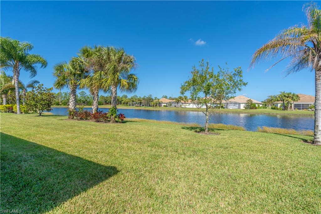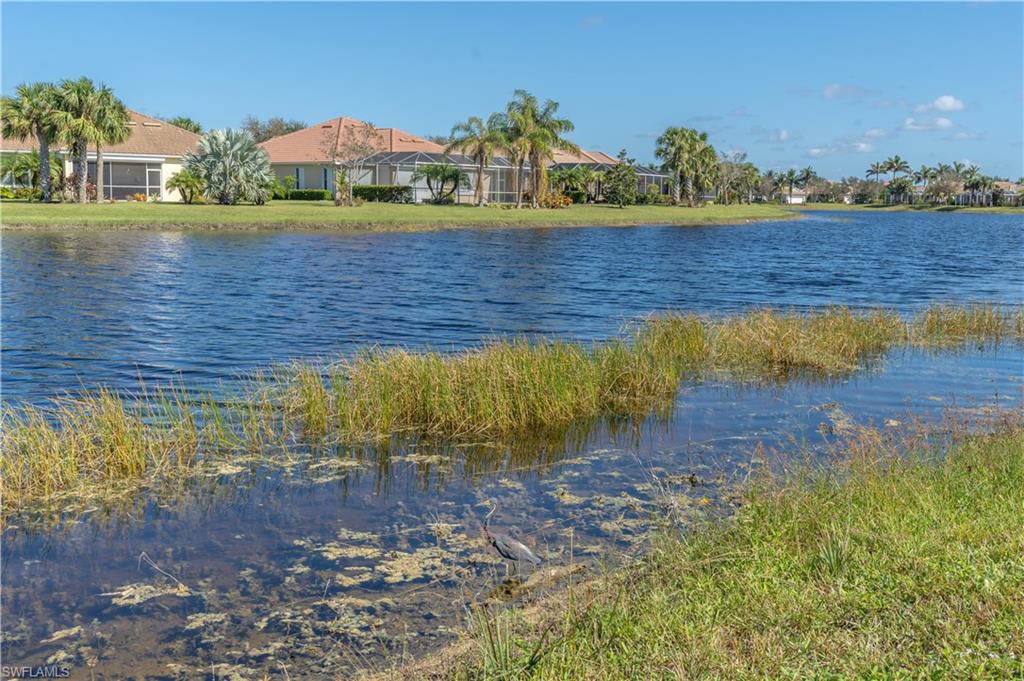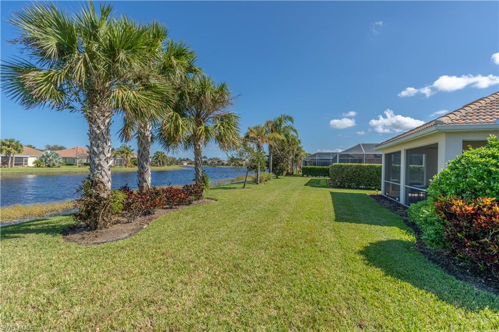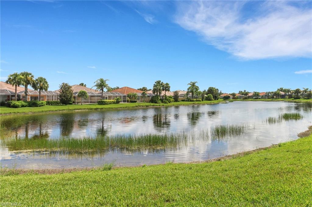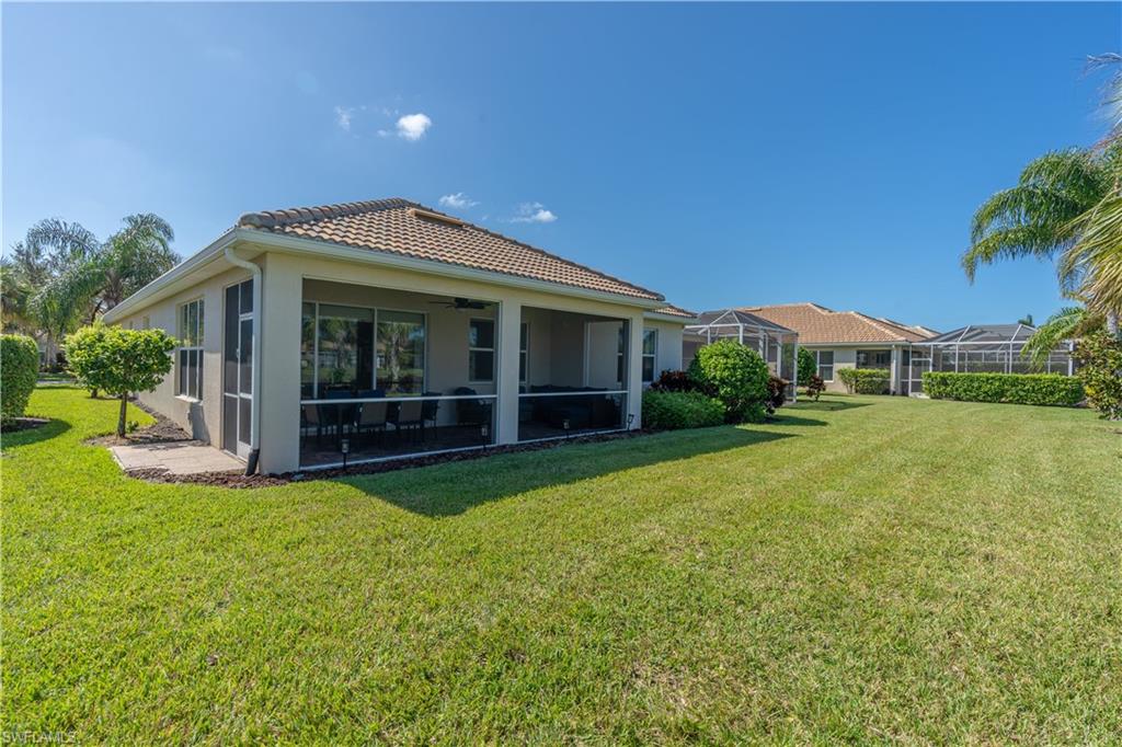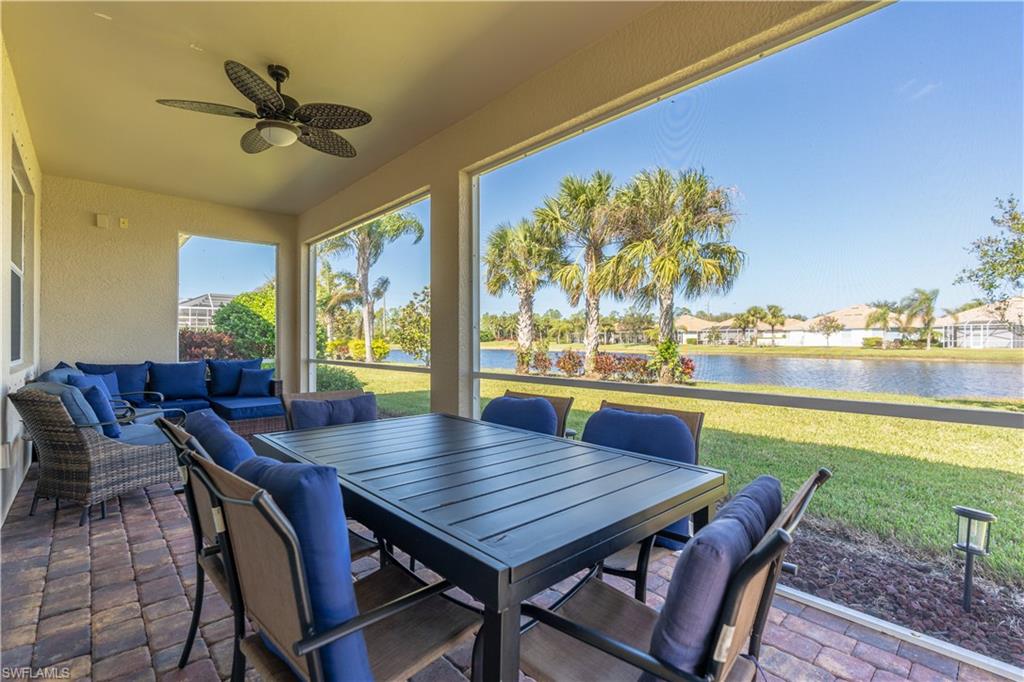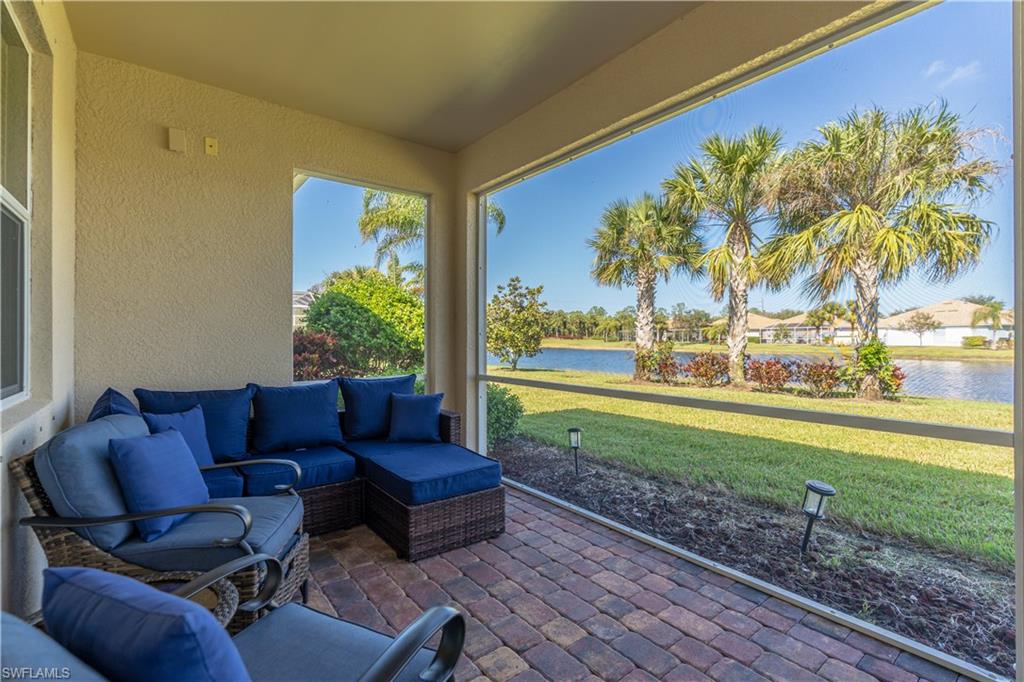 Don’t miss this beautifully appointed, MOVE-IN READY SOUTHERN-EXPOSURE single-family home in the gated community of Verona Walk in Naples, FL. Offering approximately 2,000 square feet of thoughtfully designed living space inside and out, this residence features an UPDATED roof, newer AC unit, newer hot water heater, and updated kitchen and appliances—meaning you won’t have to do a thing but move right in. Soaring ceilings and abundant windows fill the home with natural light, creating a bright and inviting atmosphere throughout. The desirable split-bedroom floor plan includes a spacious primary suite, complete with oversized closets and a luxurious his-and-her bath layout that provides privacy and convenience. Two additional bedrooms are generously sized and comfortable, complemented by a richly finished den with custom built-in cabinetry—ideal for reading, relaxing, or flexible use. The kitchen has been thoughtfully updated with stainless steel appliances, an oversized granite island with matching backsplash, ample lighted cabinetry, and generous workspace that supports both everyday living and entertaining. Tile and luxury vinyl plank flooring flow throughout the home, while high ceilings, detailed built-ins, and elegant white plantation shutters add timeless style and sophistication. Situated on a private corner lot with tranquil lake views and no homes on the west side, the property is surrounded by lush tropical landscaping that enhances privacy and a sense of spaciousness. Outdoor living is exceptional, featuring a screened lanai for relaxing and a very large, private paver lanai providing ample space for outdoor dining and entertaining in a peaceful tropical setting. An oversized paver driveway leads to a two-car garage and offers plenty of extra parking. Additional features include storm shutters and a generator-ready hook-up, further enhancing peace of mind and long-term value. Verona Walk is renowned for its outstanding resort-style amenities, including a grand clubhouse, resort-style pool and spa, state-of-the-art fitness center, tennis and pickleball courts, bocce, playgrounds, and miles of scenic walking and biking paths. Residents also enjoy the convenience of an on-site restaurant, gas station, and post office. HOA services include lawn care, irrigation, pest control, and exterior maintenance, ensuring an easy, low-maintenance lifestyle.