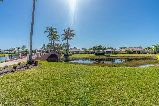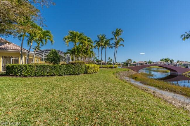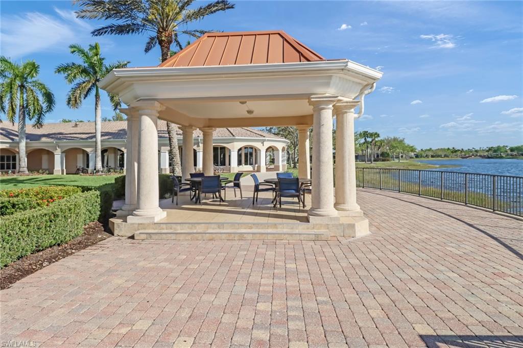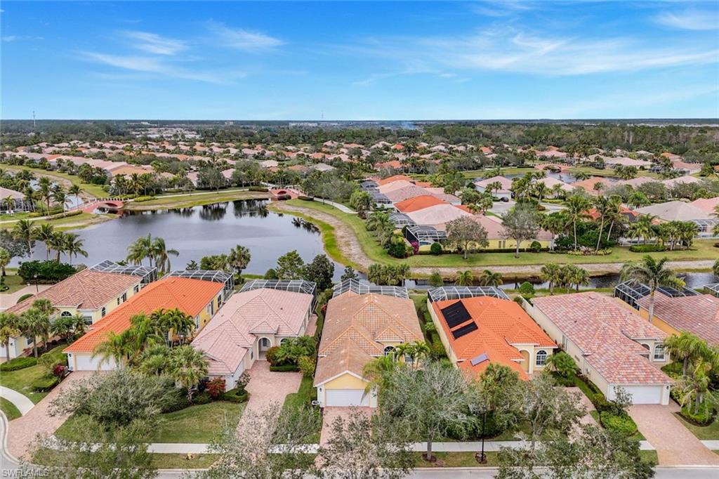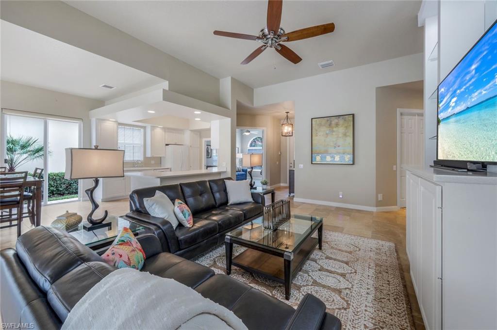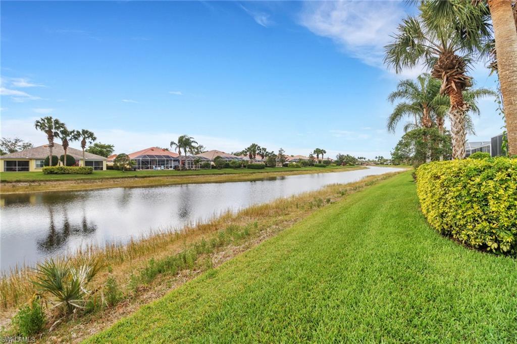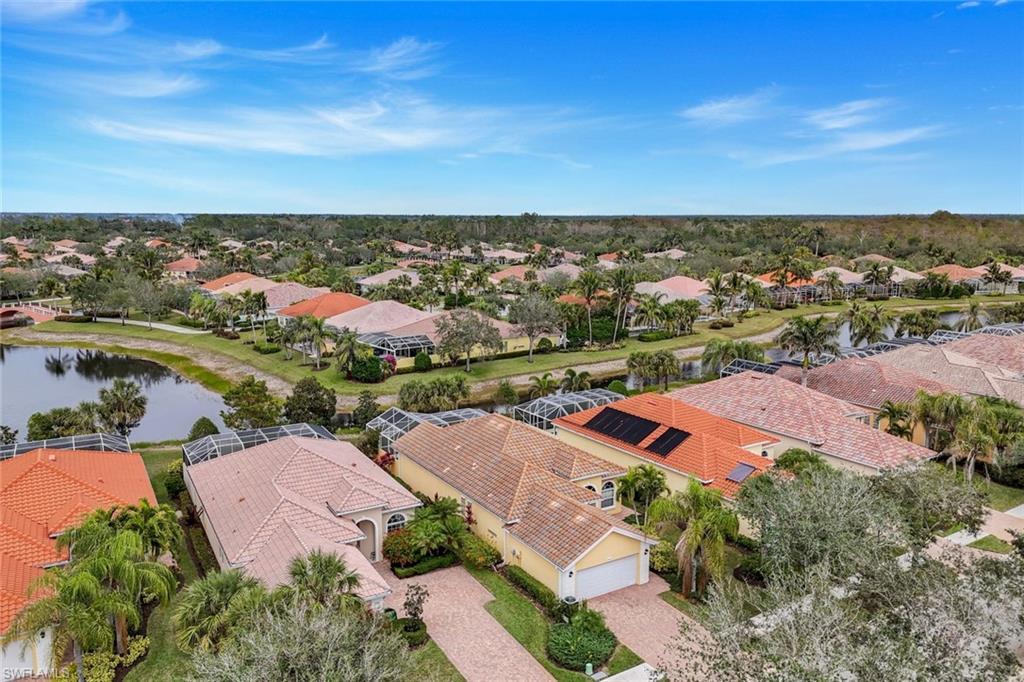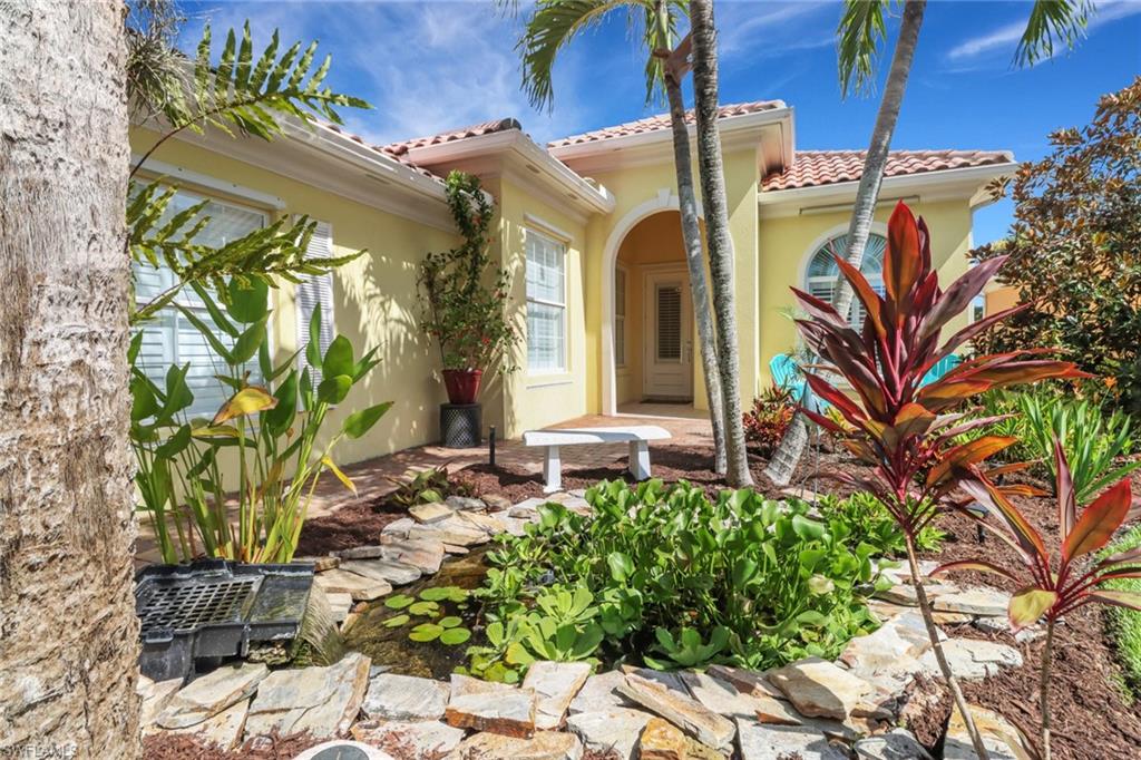 Don’t miss this beautifully appointed, MOVE-IN READY SOUTHERN-EXPOSURE single-family home in the gated community of Verona Walk in Naples, FL. Offering approximately 2,000 square feet of thoughtfully designed living space inside and out, this residence features an UPDATED roof, newer AC unit, newer hot water heater, and updated kitchen and appliances—meaning you won’t have to do a thing but move right in. Soaring ceilings and abundant windows fill the home with natural light, creating a bright and inviting atmosphere throughout. The desirable split-bedroom floor plan includes a spacious primary suite, complete with oversized closets and a luxurious his-and-her bath layout that provides privacy and convenience. Two additional bedrooms are generously sized and comfortable, complemented by a richly finished den with custom built-in cabinetry—ideal for reading, relaxing, or flexible use. The kitchen has been thoughtfully updated with stainless steel appliances, an oversized granite island with matching backsplash, ample lighted cabinetry, and generous workspace that supports both everyday living and entertaining. Tile and luxury vinyl plank flooring flow throughout the home, while high ceilings, detailed built-ins, and elegant white plantation shutters add timeless style and sophistication. Situated on a private corner lot with tranquil lake views and no homes on the west side, the property is surrounded by lush tropical landscaping that enhances privacy and a sense of spaciousness. Outdoor living is exceptional, featuring a screened lanai for relaxing and a very large, private paver lanai providing ample space for outdoor dining and entertaining in a peaceful tropical setting. An oversized paver driveway leads to a two-car garage and offers plenty of extra parking. Additional features include storm shutters and a generator-ready hook-up, further enhancing peace of mind and long-term value. Verona Walk is renowned for its outstanding resort-style amenities, including a grand clubhouse, resort-style pool and spa, state-of-the-art fitness center, tennis and pickleball courts, bocce, playgrounds, and miles of scenic walking and biking paths. Residents also enjoy the convenience of an on-site restaurant, gas station, and post office. HOA services include lawn care, irrigation, pest control, and exterior maintenance, ensuring an easy, low-maintenance lifestyle.