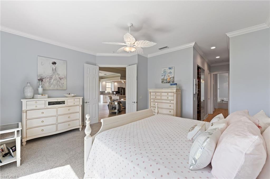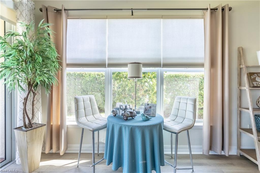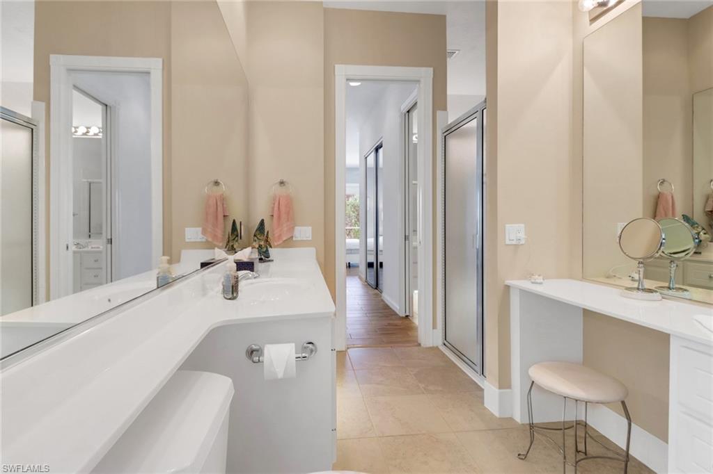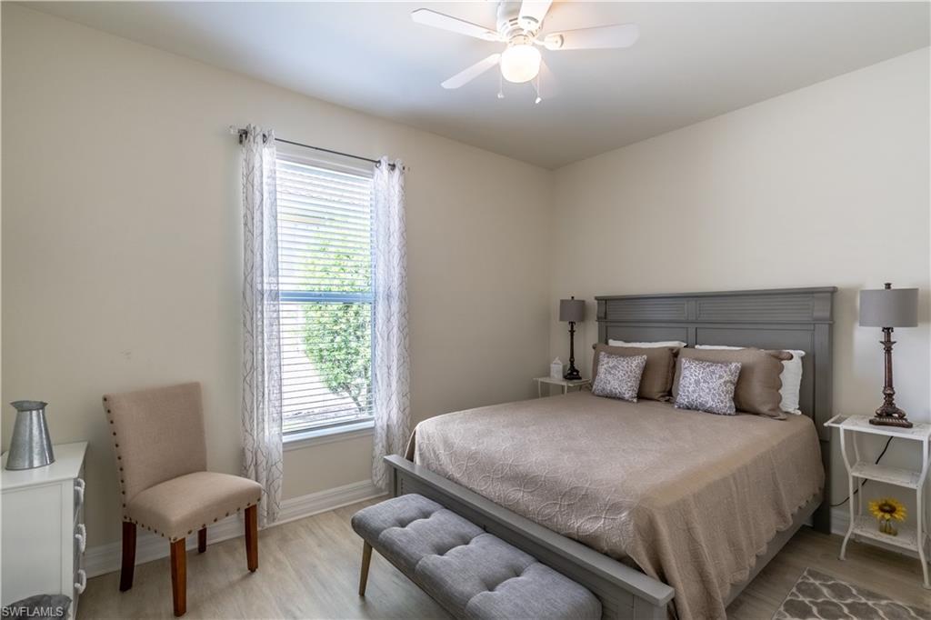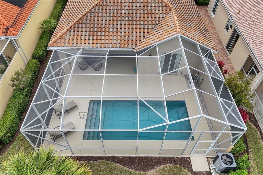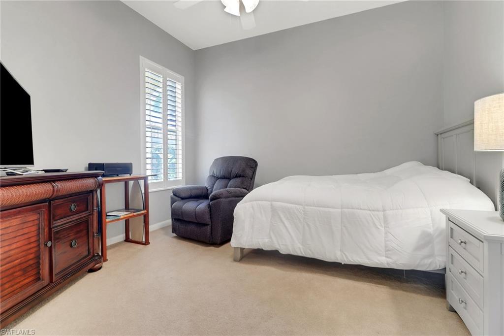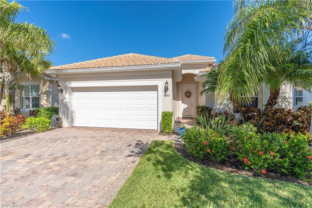 Don’t miss this beautifully appointed, MOVE-IN READY SOUTHERN-EXPOSURE single-family home in the gated community of Verona Walk in Naples, FL. Offering approximately 2,000 square feet of thoughtfully designed living space inside and out, this residence features an UPDATED roof, newer AC unit, newer hot water heater, and updated kitchen and appliances—meaning you won’t have to do a thing but move right in. Soaring ceilings and abundant windows fill the home with natural light, creating a bright and inviting atmosphere throughout. The desirable split-bedroom floor plan includes a spacious primary suite, complete with oversized closets and a luxurious his-and-her bath layout that provides privacy and convenience. Two additional bedrooms are generously sized and comfortable, complemented by a richly finished den with custom built-in cabinetry—ideal for reading, relaxing, or flexible use. The kitchen has been thoughtfully updated with stainless steel appliances, an oversized granite island with matching backsplash, ample lighted cabinetry, and generous workspace that supports both everyday living and entertaining. Tile and luxury vinyl plank flooring flow throughout the home, while high ceilings, detailed built-ins, and elegant white plantation shutters add timeless style and sophistication. Situated on a private corner lot with tranquil lake views and no homes on the west side, the property is surrounded by lush tropical landscaping that enhances privacy and a sense of spaciousness. Outdoor living is exceptional, featuring a screened lanai for relaxing and a very large, private paver lanai providing ample space for outdoor dining and entertaining in a peaceful tropical setting. An oversized paver driveway leads to a two-car garage and offers plenty of extra parking. Additional features include storm shutters and a generator-ready hook-up, further enhancing peace of mind and long-term value. Verona Walk is renowned for its outstanding resort-style amenities, including a grand clubhouse, resort-style pool and spa, state-of-the-art fitness center, tennis and pickleball courts, bocce, playgrounds, and miles of scenic walking and biking paths. Residents also enjoy the convenience of an on-site restaurant, gas station, and post office. HOA services include lawn care, irrigation, pest control, and exterior maintenance, ensuring an easy, low-maintenance lifestyle.