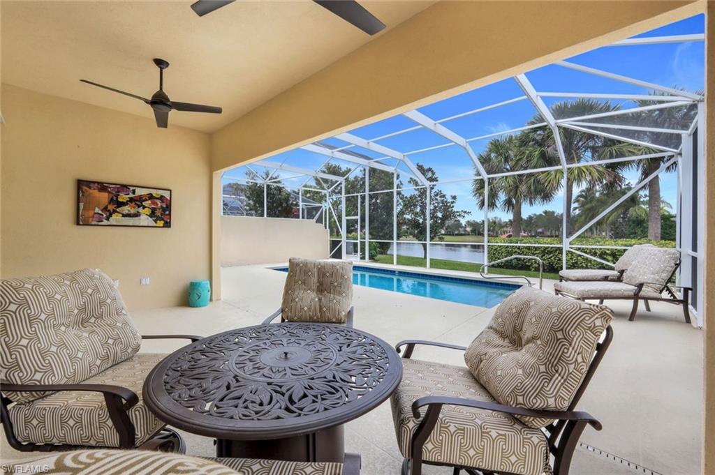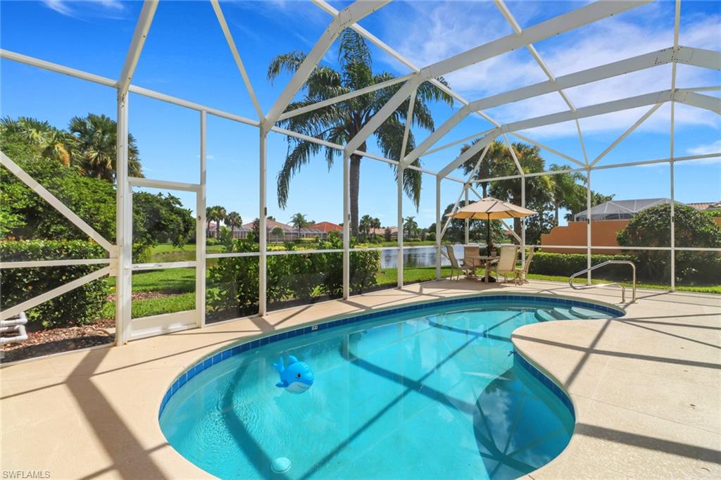 Welcome to your dream home in the highly sought-after gated community of Verona Walk! This exquisite residence boasts abundant natural light throughout, creating a warm and inviting atmosphere. Featuring 3 spacious bedrooms plus a versatile den, this home offers the perfect blend of comfort and functionality. The master suite, was designed for relaxation and includes a private en-suite bathroom as well as access to an outdoor oasis that is ready for YOU to personalize. This ever popular Oakmont floor plan allows plenty of space and privacy for the homeowner and guests alike, with the primary bedroom towards the back of the home and the guest bedrooms strategically placed towards the front of the home. The living area flows seamlessly into a well-appointed kitchen, making it ideal for entertaining family and friends. With double sliders over looking the patio, pool, and waters, the living space and kitchen define Florida style living! Whether you're soaking up the sun or enjoying a peaceful evening by the water, this home and its outdoor space are perfect for relaxation and entertainment. Verona Walk offers a vibrant community lifestyle with numerous amenities, including walking trails, a clubhouse, and recreational facilities. Don't miss the opportunity to make this beautiful home yours – experience the perfect combination of luxury, comfort, and serenity in Naples, Florida. Schedule your private showing today!