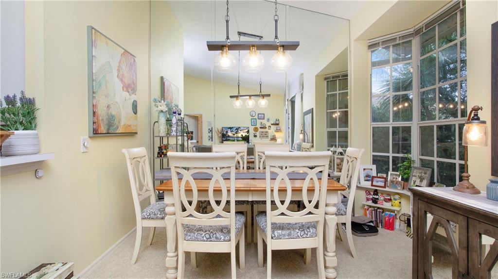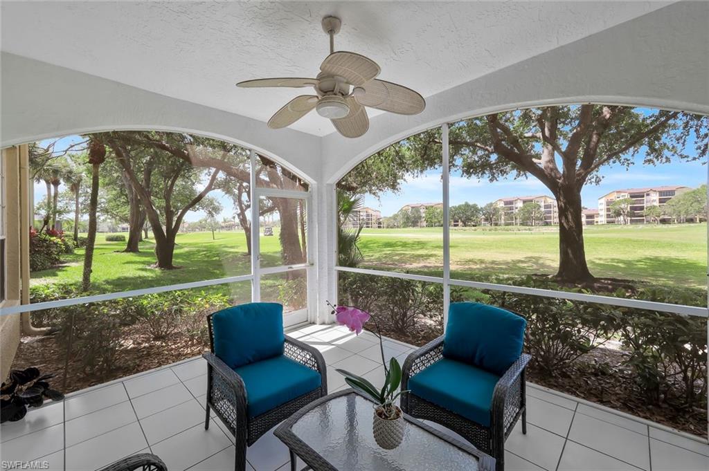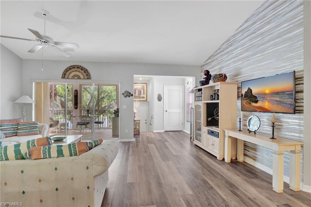 Chardonnay in the Vineyards is simply a great community to enjoy your full time or seasonal residency in SWFL! This fresh and breezy first floor condo offers front and rear screened lanai spaces for optimal living and the rear lanai, accessible from the great room and the primary bedroom, offers serene sunrises and golf course views. Step into this charming condo and be immediately drawn to the inviting view while appreciating the subtle detail throughout. The open, spacious great room/dining room combo flows to the updated kitchen complete with pretty ceiling detail and white cabinets. A second dining area can also function perfectly as a quiet workspace or a lively game night spot. The primary bedroom and bath are well-appointed with an updated shower, separate tub and dual sinks. Featuring a brand-new A/C system installed in August 2025, this impeccably maintained residence offers comfort and care at the highest standard. Located only 5 miles from sandy gulf beaches, and walking distance to Crossroads Market Shopping Center and Physicians Regional, a multitude of dining and shopping destinations, arts centers and nature trails, this is an ideal location for enjoying everything Naples. Vineyards Country Club offers several levels of optional membership which can include 36 holes of Championship Golf, Pickleball, Bocce, Har Tru Tennis courts, Wellness/Fitness Center, Spa, Saltwater Lap pool and a Halotherapy Salt Room!