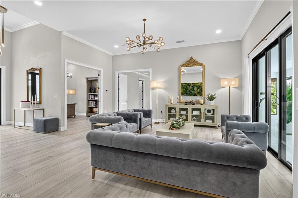 Best-Priced New Construction Home in Weber Woods – Luxury Living on 2.5 Acres in a Prime X Flood Zone! Welcome to your exceptional dream estate in the heart of Weber Woods, one of Naples’ most coveted non-HOA neighborhoods—offering the space and prestige of Pine Ridge Estates, but at a fraction of the price. This brand-new custom home is the best-priced new construction in Weber Woods, showcasing over 5,300 sq. ft. of luxury living on a lush and private 2.5-acre upland lot, all located in the highly desirable FEMA X flood zone—no flood insurance required. Thoughtfully designed for elegance and comfort, this estate features 4 spacious bedrooms plus a private den, 4.5 bathrooms, and a grand 3-car garage, with soaring ceiling heights up to 15 feet throughout. Both the Master Suite and Junior Suite open directly to your resort-style 14’ x 40’ pool, complete with a gas fireplace, outdoor kitchen, and oversized lanai—perfect for hosting or simply unwinding in serene surroundings. At the heart of the home, a chef’s dream kitchen awaits, boasting a gas cooktop, high-end appliances, large walk-in pantry, wine & beverage coolers, ice-maker, and an elegant butler’s kitchen with a separate service entrance—ideal for catering or entertaining. A stylish home office off the main entry offers a refined workspace for remote professionals or creatives. Enjoy crystal-clear drinking water from your private well with a state-of-the-art reverse osmosis system—no water bills here. This expansive estate also provides ample room for future expansion, with space for a guest house, workshop, horse barn, or additional garage—the possibilities are endless. Nestled in a quiet, upscale setting, yet just minutes from Publix, world-class shopping, dining, and Naples' white-sand beaches, this property offers the best of luxury, freedom, and value. No HOA means no restrictions and no fees—just the freedom to live your Naples lifestyle to the fullest. Don’t miss this rare opportunity to own a luxury estate in Weber Woods at unmatched value. Schedule your private tour today.