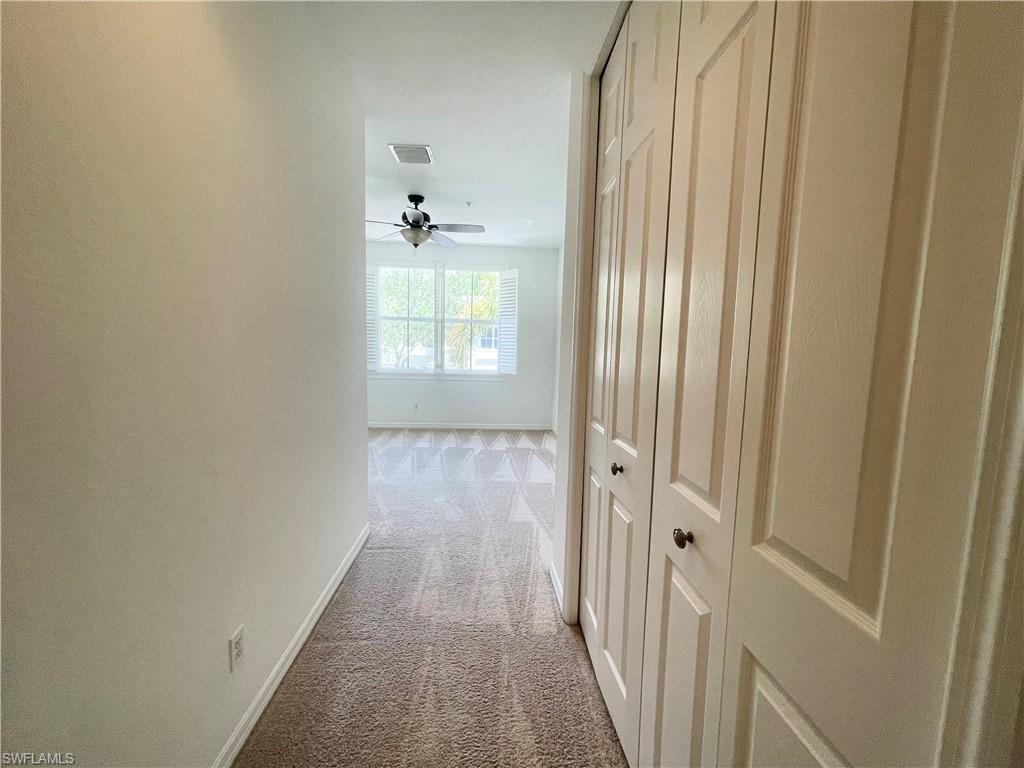 This spacious 2334 sq. ft. townhome features three bedrooms, two-and-a-half baths, 2 car garage and a large loft to fit your needs. The laundry room is on the second floor for convenience to the bedrooms. The well-laid-out first floor features the kitchen with plenty of white cabinetry and new stainless steel appliances with breakfast bar overlooking the eat-in kitchen and great room. In addition there is a formal dining room for entertaining. Enjoy the long lake view and beautiful sunsets from your lanai. You will have peace of mind with Impact Hurricane Windows. This home features very neutral colors so you can add your own decorating and color palettes. Mariposa is a small gated community with only 180 homes and is centrally located with access to Livingston Road and shopping. The community features community pool, clubhouse, and exercise room. Great value in a premier location.