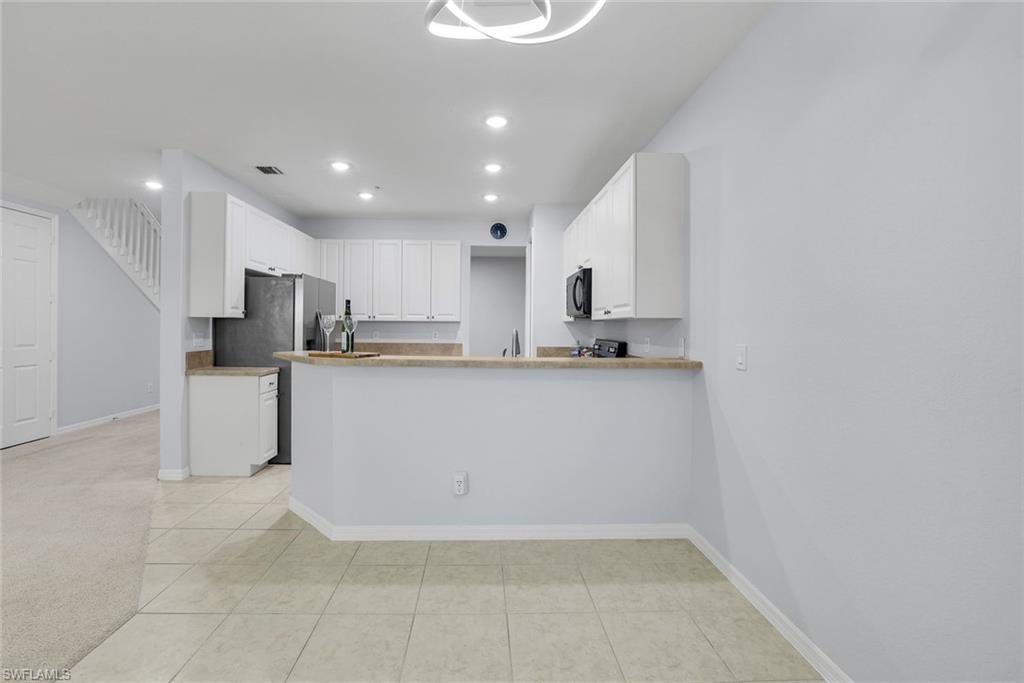 Now offered is a well cared for Townhome, 3 bedrooms, 2.5 bathrooms located in North Naples with easy access to shopping, Dining, schools and travelling. Low Fees, and move-in ready. The open style Kitchen has been updated with a newer refridgerator and Stove, and Quartz countertops. Flooring is wood throughout on first floor, Expresso colored and white Plantation shutters throughout this home. Garage is oversize, 2 car. Driveway can also park 2 cars as well. There is a New Water heater, (October, 2025). Living quarters are upstairs, along with a Loft/Multi-purpose area, and laundry room. The Primary BR is large with good Closet space and a accomadating Primary bathroom with Large soaking Tub plus Shower and door on the water closet all with a nice window, light and bright. The other two bedrooms, Guest Bathroom and Laundry Room are synomous in size. Pets are acceptable, but limited to 1 pet, 40 lbs. Mariposa is known for its large square footage. Come and see for yourself!