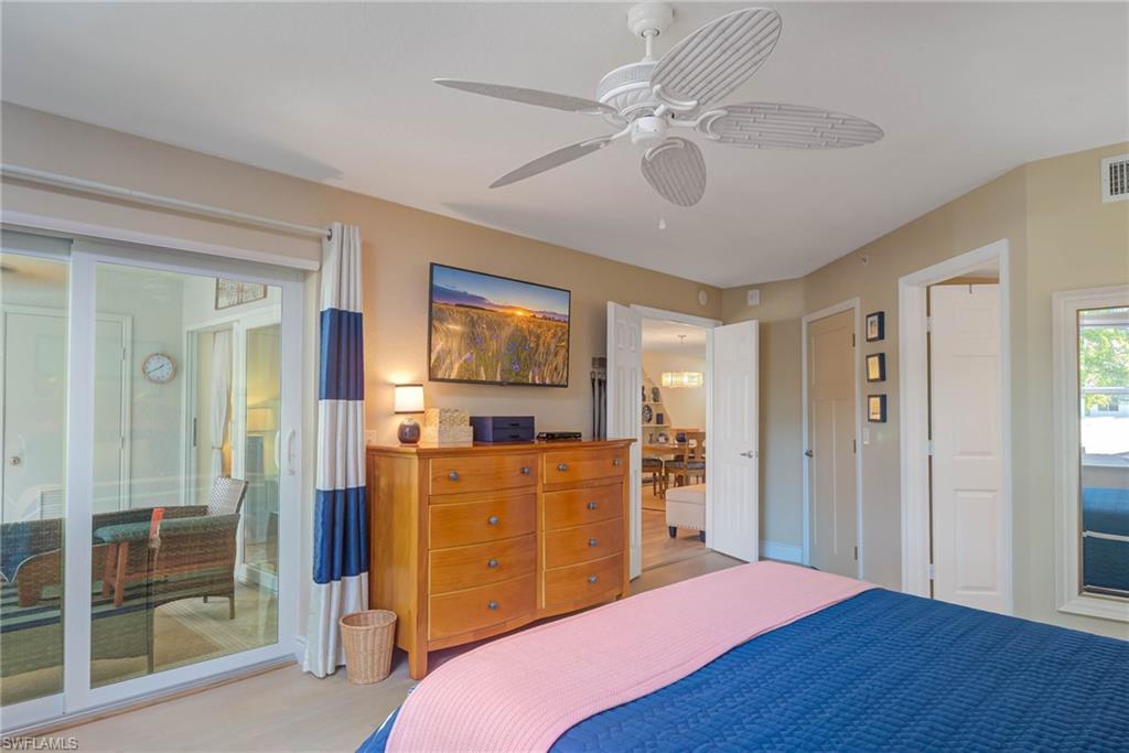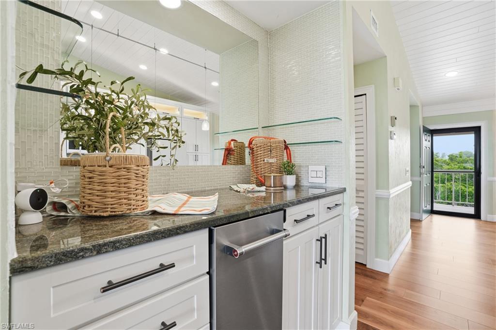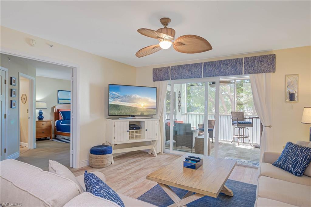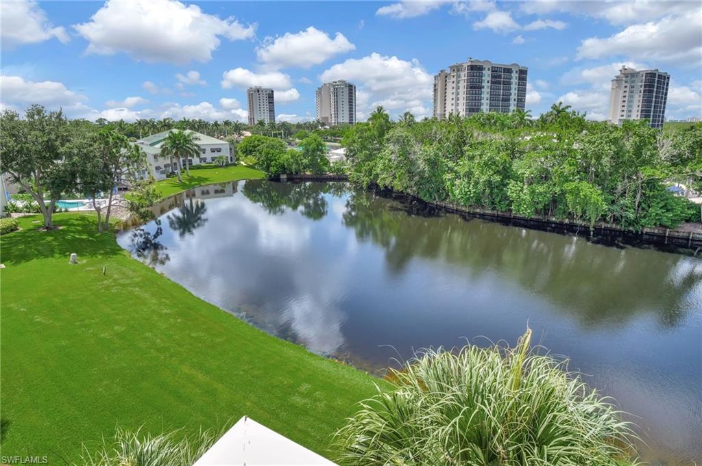 THE VIEW! THE VIEW! THE VIEW! (AND IF THAT'S NOT ENOUGH - ALL IMPACT GLASS AND MEMBERSHIP BENEFITS WITH THIS OWNERS TARPON MEMBERSHIP IS EXTRA DELIGHTER). Prepare to be captivated by the spectacular long lake views from this beautifully renovated second-floor condo in Harbourside at Wiggins Bay - where tranquility meets coastal sophistication. Perfectly positioned just moments from the Gulf, this residence combines stylish updates with a smart, open layout designed for effortless Florida living. Step inside and you’ll immediately notice the wide-plank Cortec wood-style flooring that flows seamlessly throughout, blending warmth and durability with easy maintenance. The chef-inspired kitchen shines with modern cabinetry, upscale counters, and premium stainless-steel appliances, making everyday living both functional and elegant. Both bathrooms have been thoughtfully redesigned with contemporary finishes, tile-and-glass showers, and sleek fixtures, creating a spa-like retreat. The spacious bedrooms feature walk-in closets with custom organizers, while plantation shutters, crown molding, and hurricane-impact windows add an elevated touch of quality and comfort. Enjoy year-round serenity from the enclosed lanai, which extends the living area and frames the stunning water views — or from the screened front entry lanai, ideal for enjoying Naples’ gentle breezes in any season. Additional upgrades include a newer AC system, tankless water heater, newer washer/dryer, and a remote-control electric fireplace, ensuring both convenience and ambiance. Just steps away is the Tarpon Cove Yacht & Racquet Club, where members enjoy a full suite of amenities: tennis, bocce, dining, social events, and even a boat shuttle to the beach. A new private golf club, Kinsale Golf Club, is also being developed right across the street, further enhancing the lifestyle appeal of this premier location. Set near the turquoise waters of the Gulf of Mexico, Wiggins Bay was designed for those seeking the ultimate Florida lifestyle - boating, fishing, beach days, and endless dining and shopping options in both Naples and Bonita Springs are right at your fingertips. Bonus: The seller’s Tarpon Cove Club membership is transferable, allowing buyers to pay only half of the initiation fee ($12,500 instead of $25,000) - a rare and valuable perk. If you’ve been waiting for a beautifully updated home with an unforgettable view and a lifestyle to match, this one is a must-see.