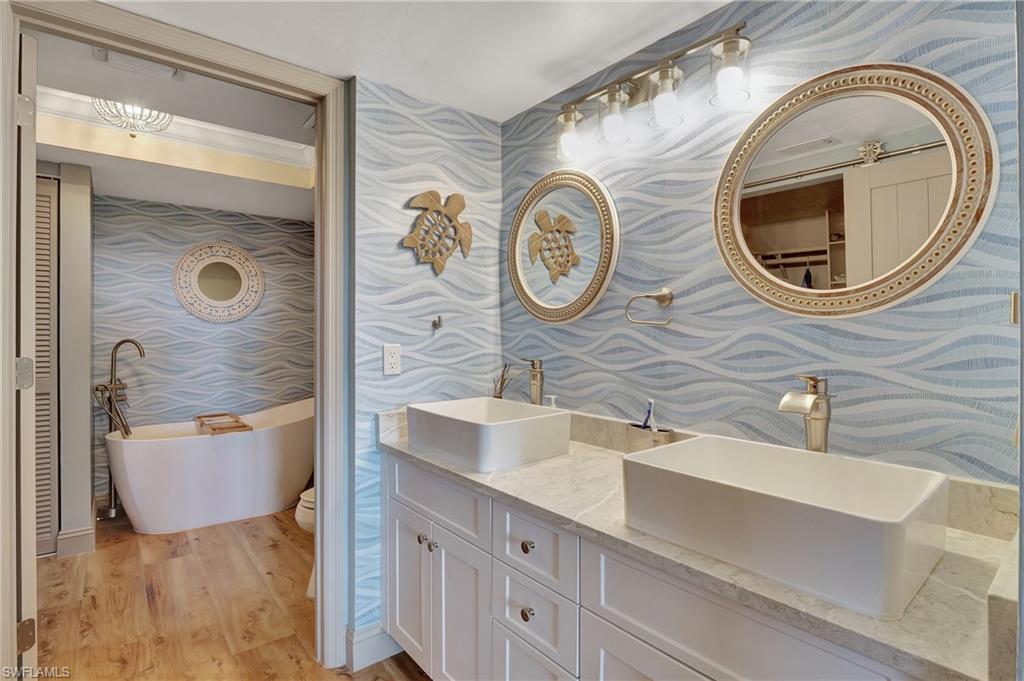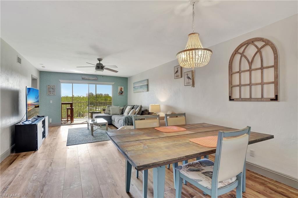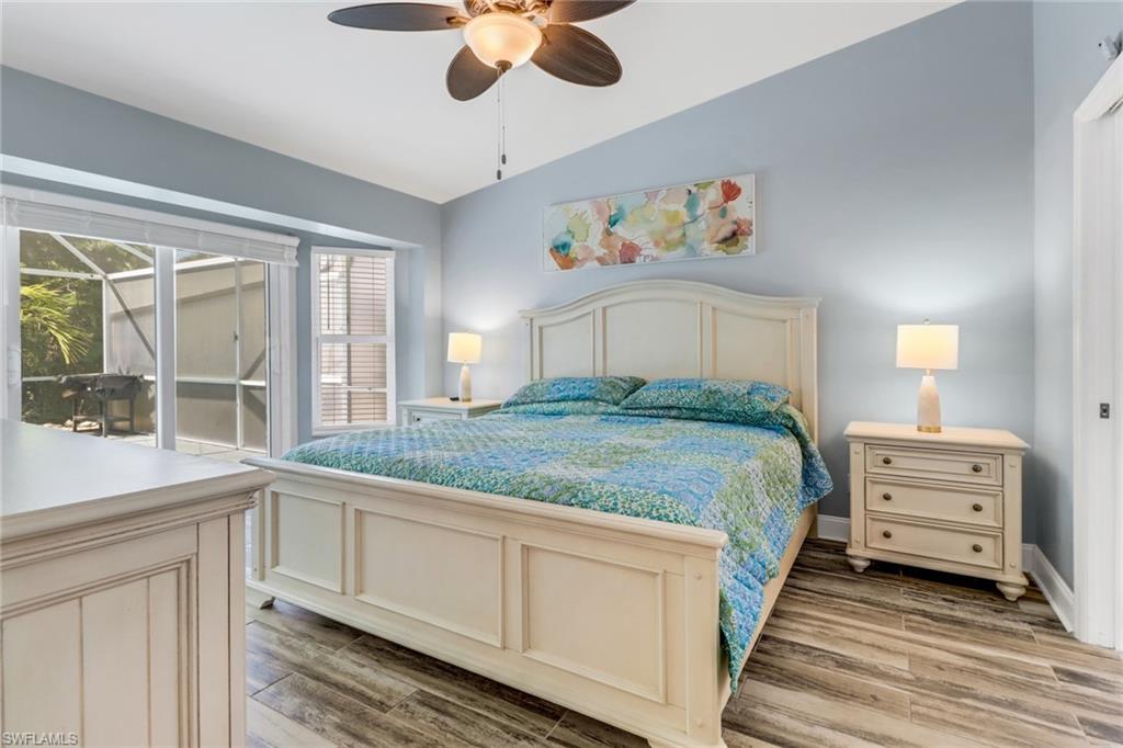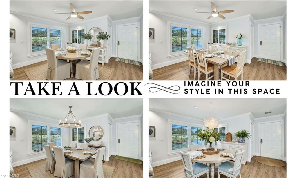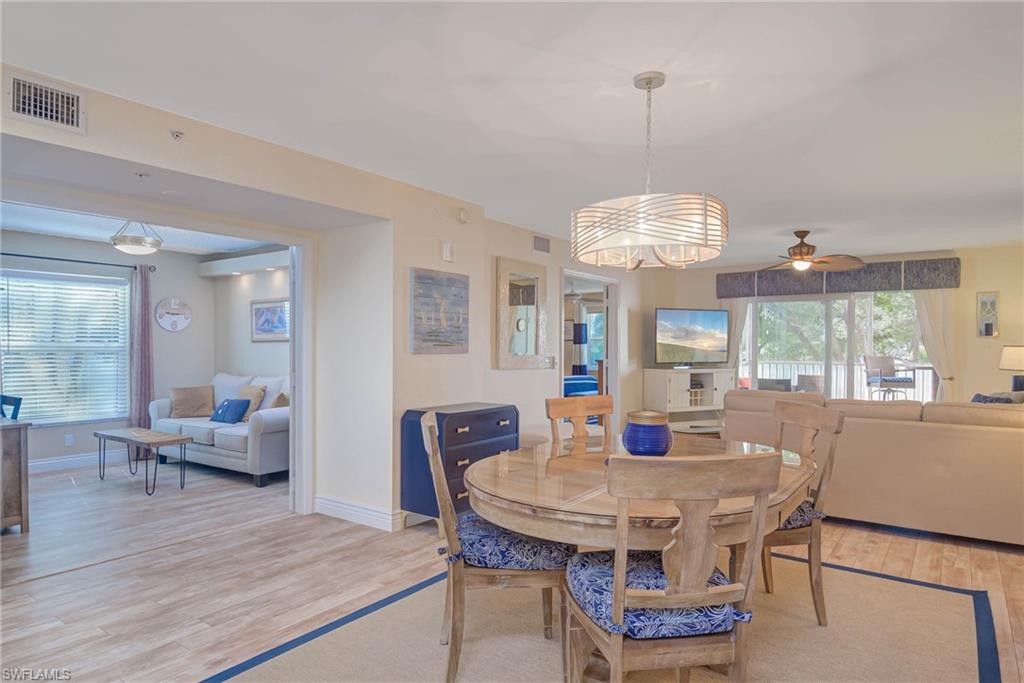 THE VIEW! THE VIEW! THE VIEW! (AND IF THAT'S NOT ENOUGH - ALL IMPACT GLASS AND MEMBERSHIP BENEFITS WITH THIS OWNERS TARPON MEMBERSHIP IS EXTRA DELIGHTER). Prepare to be captivated by the spectacular long lake views from this beautifully renovated second-floor condo in Harbourside at Wiggins Bay - where tranquility meets coastal sophistication. Perfectly positioned just moments from the Gulf, this residence combines stylish updates with a smart, open layout designed for effortless Florida living. Step inside and you’ll immediately notice the wide-plank Cortec wood-style flooring that flows seamlessly throughout, blending warmth and durability with easy maintenance. The chef-inspired kitchen shines with modern cabinetry, upscale counters, and premium stainless-steel appliances, making everyday living both functional and elegant. Both bathrooms have been thoughtfully redesigned with contemporary finishes, tile-and-glass showers, and sleek fixtures, creating a spa-like retreat. The spacious bedrooms feature walk-in closets with custom organizers, while plantation shutters, crown molding, and hurricane-impact windows add an elevated touch of quality and comfort. Enjoy year-round serenity from the enclosed lanai, which extends the living area and frames the stunning water views — or from the screened front entry lanai, ideal for enjoying Naples’ gentle breezes in any season. Additional upgrades include a newer AC system, tankless water heater, newer washer/dryer, and a remote-control electric fireplace, ensuring both convenience and ambiance. Just steps away is the Tarpon Cove Yacht & Racquet Club, where members enjoy a full suite of amenities: tennis, bocce, dining, social events, and even a boat shuttle to the beach. A new private golf club, Kinsale Golf Club, is also being developed right across the street, further enhancing the lifestyle appeal of this premier location. Set near the turquoise waters of the Gulf of Mexico, Wiggins Bay was designed for those seeking the ultimate Florida lifestyle - boating, fishing, beach days, and endless dining and shopping options in both Naples and Bonita Springs are right at your fingertips. Bonus: The seller’s Tarpon Cove Club membership is transferable, allowing buyers to pay only half of the initiation fee ($12,500 instead of $25,000) - a rare and valuable perk. If you’ve been waiting for a beautifully updated home with an unforgettable view and a lifestyle to match, this one is a must-see.