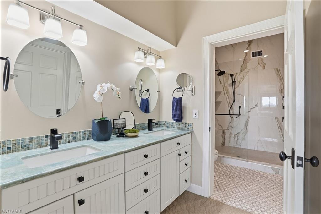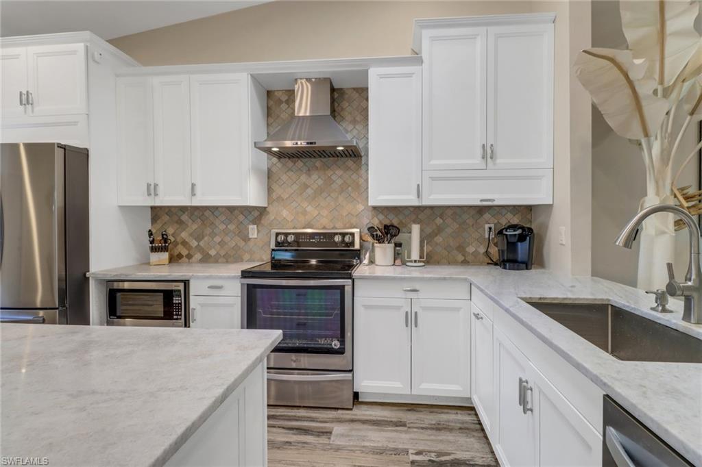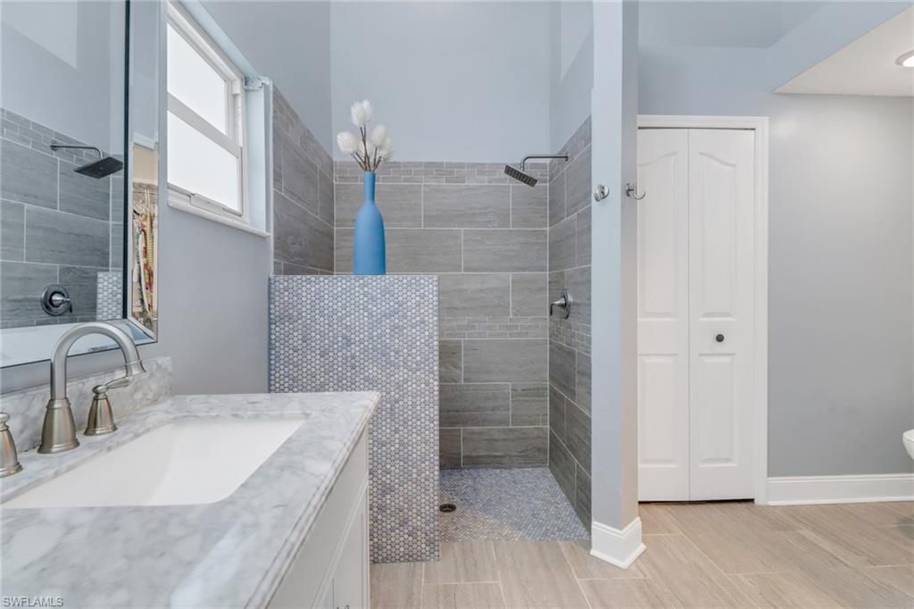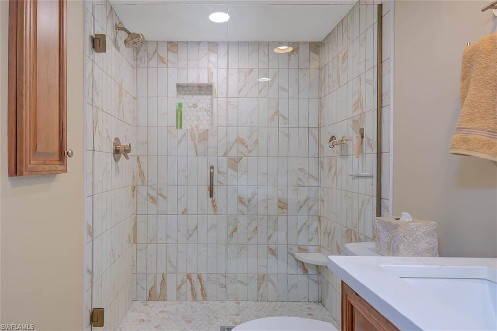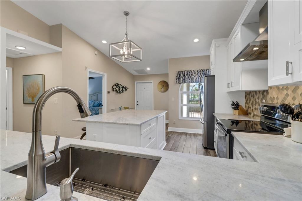 With over $125,000 in extensive improvements, this three-bedroom end unit villa has been totally renovated and lives like a single family home without all the maintenance. It is light, bright and move-in ready. Great room floor plan with soaring ceilings and a long list of extensive updates include newer TILE ROOF, HURRICANE IMPACT WINDOWS, HVAC, APPLIANCES, WATER HEATER, PLANK TILE FLOORING THROUGHOUT, FULLY RENOVATED KITCHEN, UPDATED BATHROOMS, PLUMBING LINES, HUNTER DOUGLAS WINDOW SHADES and the list would go on and on. Neutral color palate throughout. Split bedroom floor plan. The guest suite has direct access to a full bath and could be a second primary suite. Also, corner lot, private entrance, EXTENDED screened lanai with “no see um” screening and attached two car garage with hurricane impact rated door and extra storage in the garage attic. Prime North Naples West of 41 location close to beaches, golf, dining, shopping, entertainment, gulf access, and more. Great location with the complex just a short stroll from the heated pool and across from the Tarpon Cove Yacht & Racquet Club (optional membership) with clubhouse, pool, tiki bar, fitness center, tennis courts, wellness classes and water taxi beach shuttle. The low association fee includes insurance on the building, roofs, exterior paint, landscaping, irrigation, reserve, professional management and Summit fiber optic (cable TV and internet.) There are also boat slips for sale or lease offering direct gulf access. This is a very quality, impeccable residence with absolute pride of ownership. According to the Seller, this property has never flooded in their 15 years of ownership.
