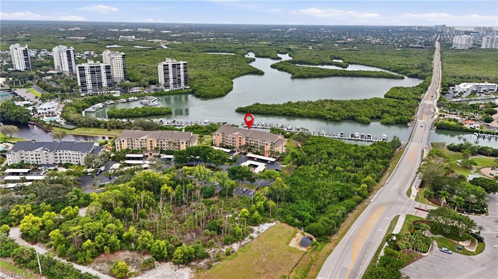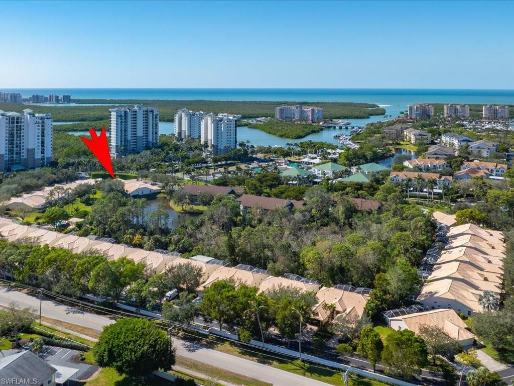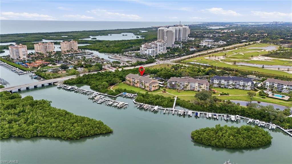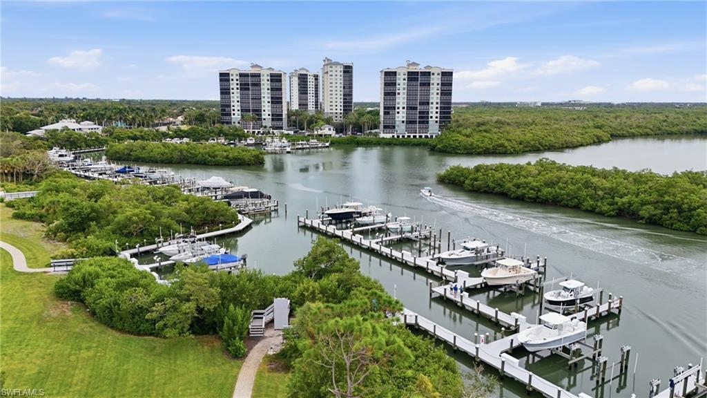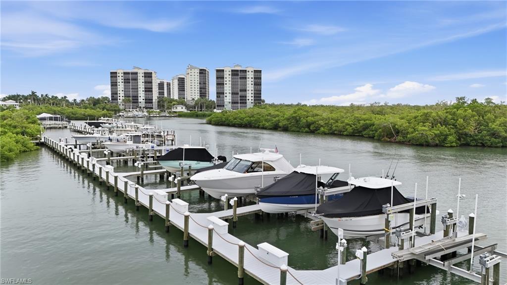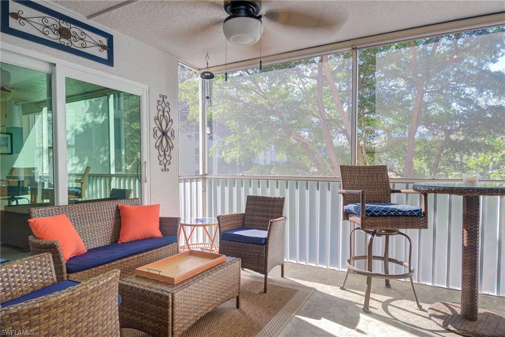 Come live in this Resort Community! This gorgeous condo which includes 2 BR, a Den, 2 BA, and a carport, with a fabulous lake and fountain view, offers amazing value. Watching expansive sunsets from your private, second-floor lanai is a delight. This unit looks brand new with a beautifully renovated kitchen, baths, and exceptional furnishings. An assumable membership to Tarpon Cove Yacht and Racket Club is also available which offers dining, tennis, bocci ball, many social clubs, a resort-style pool with Tiki Bar, and a beach boat available to shuttle you to Delnor-Wiggins State Park. Easily accessible, newly built boat slips are also available to buy or rent. Imagine walking to your slip and heading up Wiggins Pass in minutes! Also, the newly-opened Kinsale Golf Club across the street offers amazing investment property opportunities. You are centrally located with shopping, restaurants, golf, and beaches nearby. RSW is an easy 30-minute drive. Make this celebrated North Naples community your own at an incredible price. Florida living at its best!