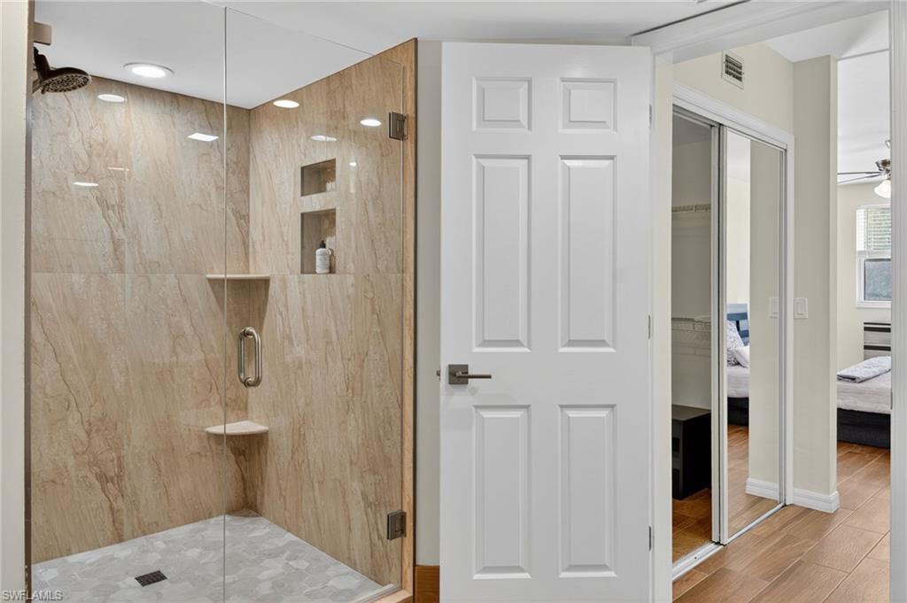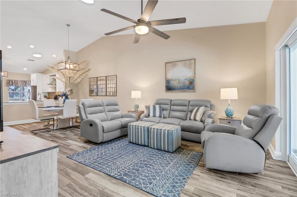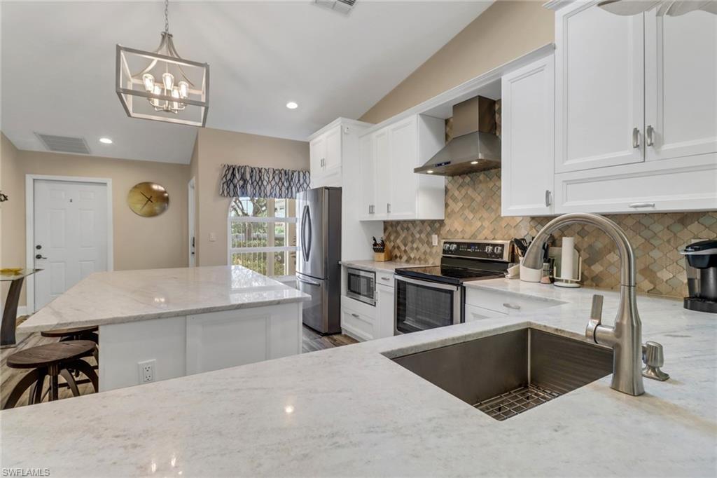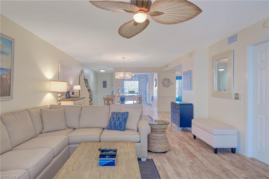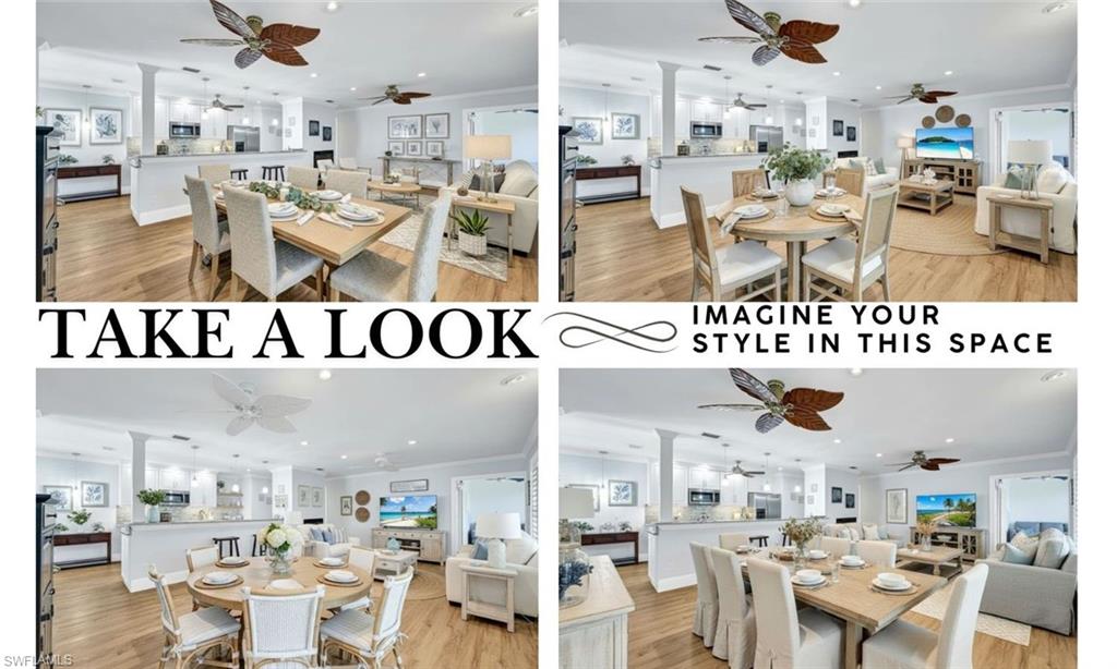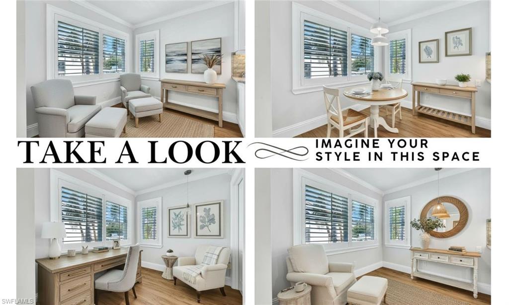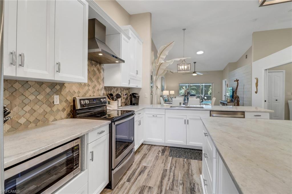 PRICE REDUCED! SLLER SAYS SELL! Just minutes away from the Gulf of Mexico, this rarely available spacious 2 Bedroom plus den, end-unit has been beautifully renovated and offers a fabulous open living plan that seamlessly flows from the front of the home out onto your oversized screened lanai. Offered TURNKEY, this home is ready for new owners with a redesigned and renovated light, bright and open kitchen with off white shaker cabinets, quartz countertops, undermount sink, and new appliances including a slide in range and extra storage galore! The master bathroom (2 yr old) offers a walk in shower, undermount dual sinks with light quartz & neutral cabinetry. The 2nd bath offers newer cabinets and quartz tops. NEW TRANE A/C (May 2025)Flooring was updated to LVP flooring throughout making this home move in ready.. IMPACT WINDOWS & DOORS have been installed allowing for peace of mind. Bermuda Cove at Wiggins Bay features a community pool, spa & bbq area. Just walking distance away to Vanderbilt Beach, public boat launch, Gulf Shore Dr as well as Mercato & much more! An optional membership at the Tarpon Cove Yacht Club provides a luxury resort lifestyle right inside Wiggins Bay, A private beach shuttle, clubhouse w/poolside bar, fire pits, dining, bocce ball, tennis, fitness center & members have reciprocal golfing and club privileges.
