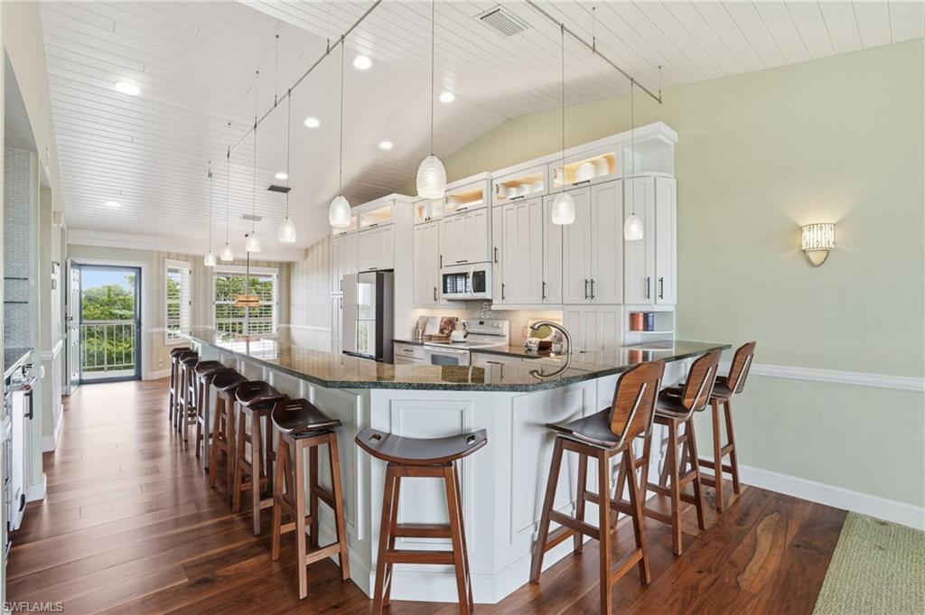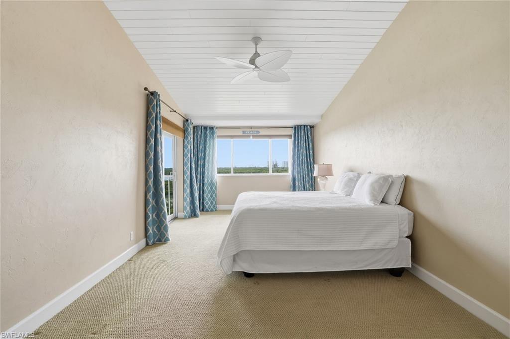 Welcome to one of North Naples’ most seldom offered penthouse opportunities—an elevated waterfront back bay, gulf access residence reimagined with exceptional craftsmanship and coastal sophistication. This top-floor unit offers vaulted ceilings, finished with stunning white tongue-and-groove wood that draws the eye upward and highlights the scale of the space. The owner thoughtfully reconfigured nearly every non–load-bearing wall and fully opened the kitchen to create an expansive layout with modern flow. A major architectural upgrade replaced the smaller original 8-foot wide slider with a second 12-foot wide slider, inviting significantly more natural light while maximizing sightlines of the back bay and mangroves. Additional enhancements include fully remodeled bathrooms with walk-in showers (the primary featuring dual showerheads), solid-core interior doors throughout, and high-end white kitchen cabinetry contrasted with gorgeous walnut flooring, brand-new lanai screens and stunning herringbone porcelain tile that resembles natural wood. These large penthouse units seldom come available, this particular unit has only had two owners in its 33-year history while two neighboring penthouses still belong to their original owners. Princeton Place Building One offers the most unobstructed vantage point of all five buildings in the complex with easy access to the docks, providing exceptional ambience and further enhancing the coveted waterfront lifestyle. Boat docks are available for sale or lease just steps from your back door. Residents may also enjoy optional membership to the highly regarded Tarpon Cove Beach & Racquet Club, featuring Har-Tru tennis courts, sophisticated dining, a resort-style pool, fitness offerings, and a private boat shuttle to Delnor-Wiggins Pass State Park Beach.