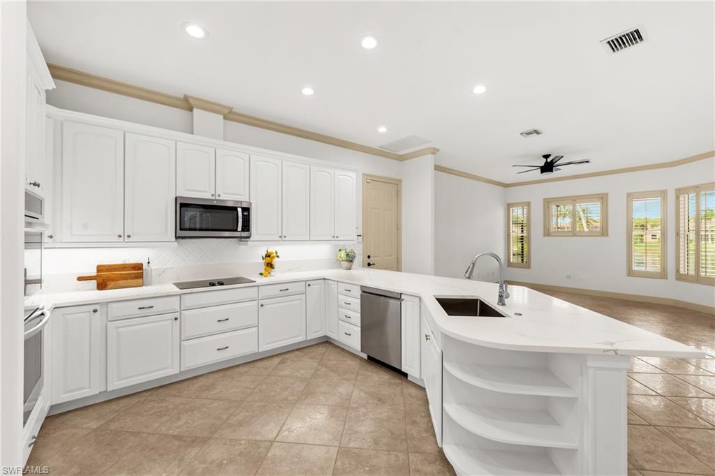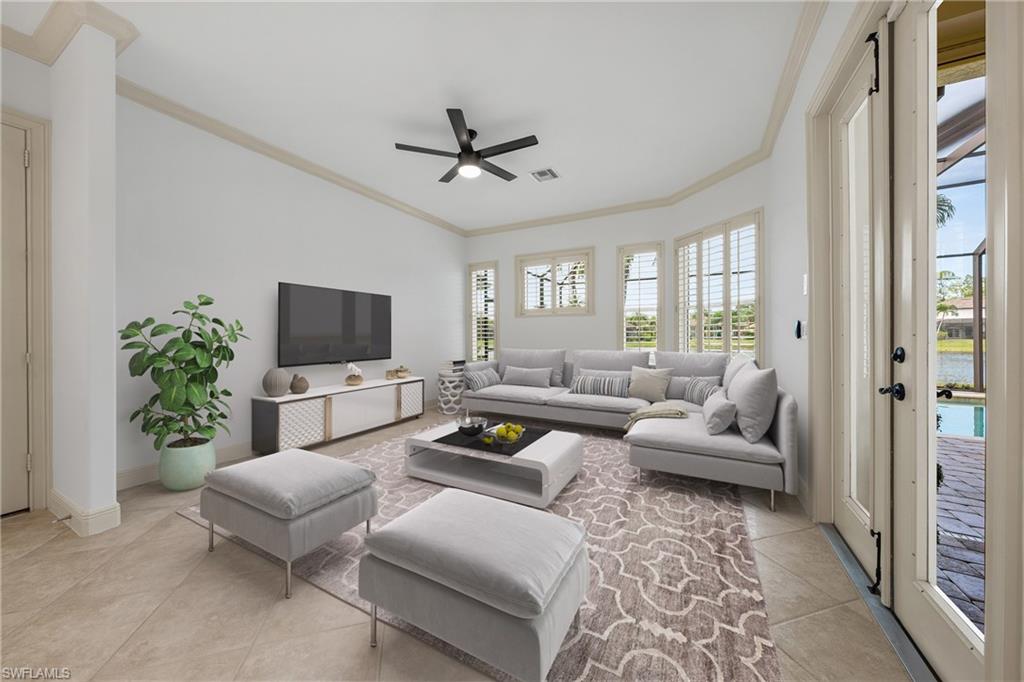 Beautifully Updated Lakefront Home in Wilshire Lakes, Naples Welcome to this stunning FORMER MODEL home in the highly sought-after gated community of Wilshire Lakes. Thoughtfully updated and freshly painted throughout, this residence blends timeless elegance with modern comfort. A newly refreshed exterior and ALL NEW IMPACT WINDOWS— including floor-to-ceiling panes, transom windows, and stackable sliders — fill the home with natural light while providing seamless storm protection and peace of mind. Step inside to an open, split-bedroom floor plan featuring FOUR BEDROOMS and 3 full baths. The 4th bedroom has an en-suite bath, built-ins, and a walk-in closet, making it ideal as a home office or fourth bedroom. The formal living and dining rooms offer sophisticated spaces for entertaining, while the spacious family room impresses with soaring ceilings and expansive windows showcasing beautiful lake views. The chef’s kitchen is designed for both function and style, featuring wood cabinetry, granite countertops, a large island, stainless steel appliances, travertine backsplash, and a composite sink. An adjoining eat-in area overlooks the open-air travertine-paved pool deck, perfect for relaxing or hosting gatherings. The primary suite is a true retreat, offering sliders to the pool, a large walk-in closet with custom built-ins, and a luxurious bath. Additional highlights include three full bathrooms, crown molding, designer light fixtures, tile and carpet flooring, a newer A/C system (2019), a newer hot water heater (2022), Roof (2015), and windows (2024). The stunning amenities include 2 clubhouses with resort style pools, fitness center, and tennis courts.This home is located in a TOP RATED SCHOOL DISTRICT offering an outstanding foundation for your children's education. Enjoy the tranquil lakefront setting and the comfort of living minutes from shopping, dining, I-75, RSW Airport, and Southwest Florida’s world-renowned beaches. Experience the perfect combination of refined style, comfort, and location in this beautifully updated Wilshire Lakes home.