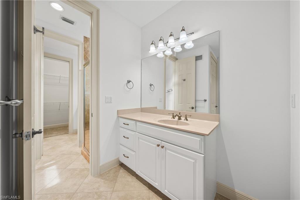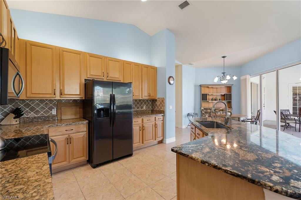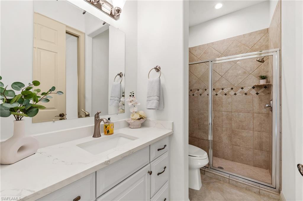 Luxurious Home in the Prestigious Wilshire Lakes Gated Community Welcome to your dream home in the highly desirable Wilshire Lakes community. This exquisite residence welcomes you with a stunning courtyard design, accessible from multiple rooms throughout the home. At its heart lies a serene, lighted, and heated pool and spa with a cascading waterfall—perfect for relaxation or entertaining. The screened courtyard offers both sun and shade, complemented by new pool heating, filtration, lighting, and ceiling fans to create the ultimate year-round oasis. Step inside to discover a beautifully maintained contemporary layout featuring 4 spacious bedrooms and 3.5 baths. The expansive open kitchen impresses with high vaulted ceilings, new cabinetry showcasing rare Brazilian granite countertops with beveled edges, striking hardware and lighting, and a wet bar ideally positioned for conversation. Appliances include a pot-filling tap over the stove, microwave, refrigerator, and new dishwasher, along with a built-in desk area and walk-in pantry for ample storage. Built in 2005, this home boasts abundant natural light through extra windows that frame peaceful views. French doors open from the lanai to a poolside lavatory with artistic tile accents and a pedestal sink. Passing through grand pillars and vaulted ceilings, the living room offers a tranquil retreat with lush privacy landscaping and a lake view backdrop. The primary suite serves as a true sanctuary, featuring an ensuite bath with a tile shower, spa tub, dual sinks, a vanity, a large walk-in closet, a linen closet, and a private water closet. Sliding doors lead directly to the courtyard and a private side porch or dog run. A spacious laundry room with granite countertops, generous cabinetry, washer/dryer, and utility sink connects to the two-car garage, which includes hurricane shutters and attic access. The courtyard also features a private guest cabana or in-law suite with a separate entrance, full kitchenette (stove, refrigerator, sink, and cabinetry), full bath, closet, and its own AC unit—perfect for guests or extended family. The exterior has been freshly painted and professionally landscaped, complete with lighting, new sod in the front and side yards, and a new roof (2019). Located on a private corner lot, this home enjoys low HOA fees, access to “A”-rated schools, and convenient proximity to North Naples shopping, dining, parks, and the beautiful Gulf beaches. Don’t miss the opportunity to experience luxury living at its finest—schedule your private tour of this exceptional Wilshire Lakes home today!