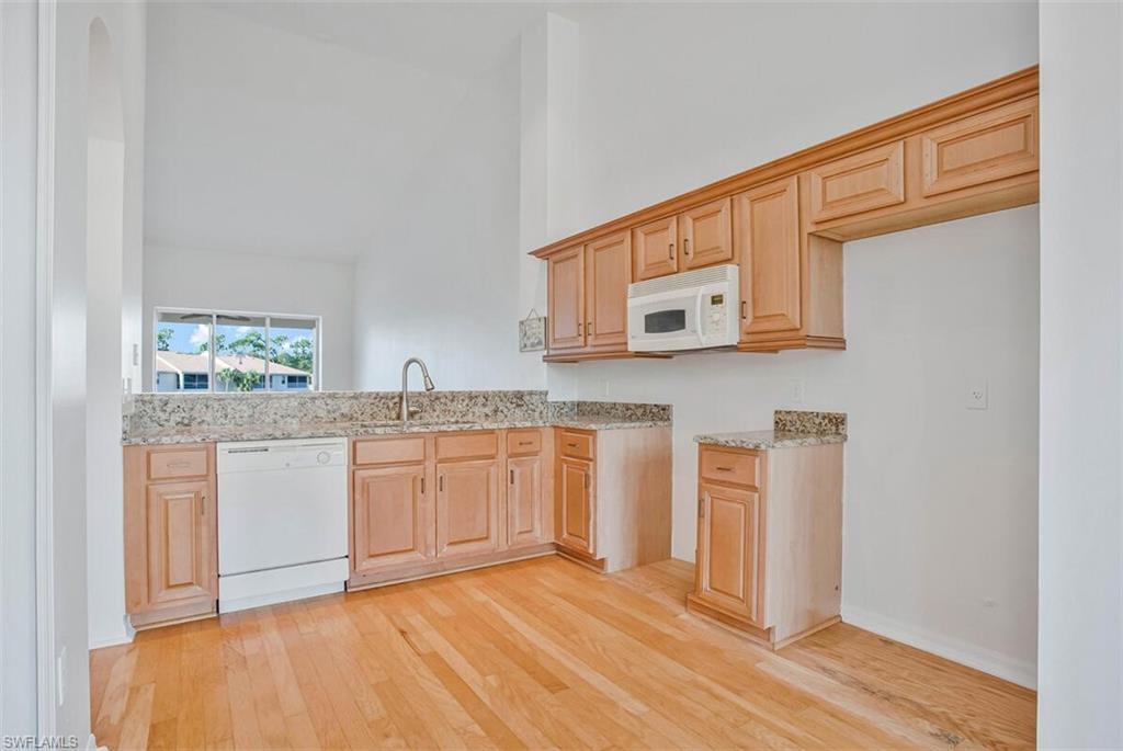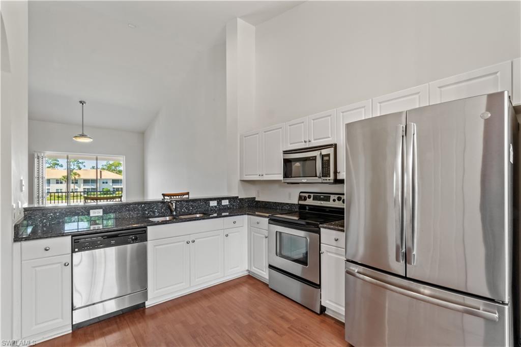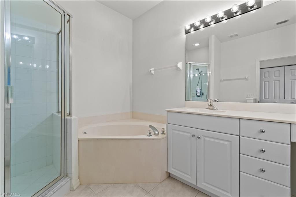 Easy access to this first floor, end unit with a southern lake view. Freshly painted! Tile in common areas and new LVP flooring in all bedrooms! Kitchen features a breakfast nook, which could also be used as an office area, granite countertops and stainless appliances. This open floor plan 3 bedroom, 2 bathroom layout with a large great room / dining area allows you to decide how to best to use the space to fit your lifestyle. Master bedroom with 2 separate closets. En suite bathroom offers a large vanity with 2 sinks, separate soaking tub and shower. Guest bedrooms and bathroom are located on the opposite side of the condo for maximum privacy. Plentiful storage throughout the home, including multiple linen / supply closets. Generous laundry room with storage cabinets and closet. Building roof replaced in 2023. One car detached garage. Wilshire Lakes offers 2 newly-renovated clubhouses and pools -- with the Wilshire Pines pool, spa and clubhouse just steps away! It's almost like your own private pool. Other amenities include a basketball court, barbecue area, community room, fitness center, internet access, and tennis courts. In the heart of North Naples, Wilshire Lakes is a pet-friendly, gated community. Next door to North Collier Regional Park, where miles of scenic nature trails, top-tier sports facilities, a water park, and the Golisano Children's Museum await. Plus, you’re less than five miles from the breathtaking white-sand beaches of the Gulf. With endless shopping and dining options in every direction and convenient access to I-75 and multiple international airports, this is the perfect place to call home.