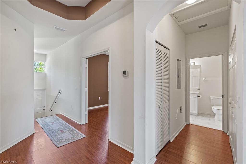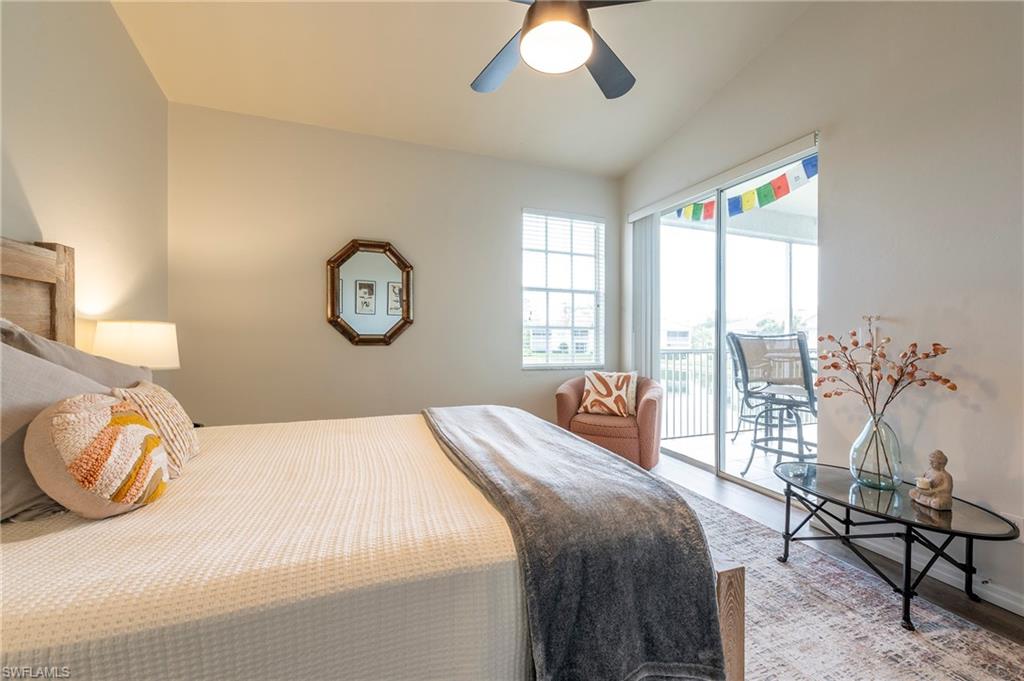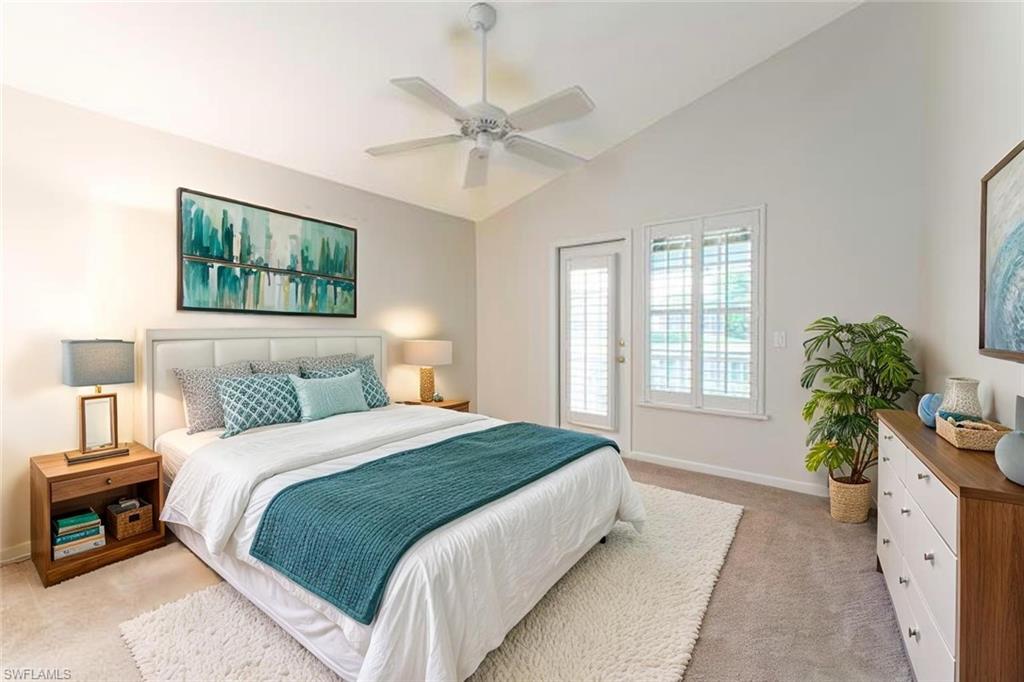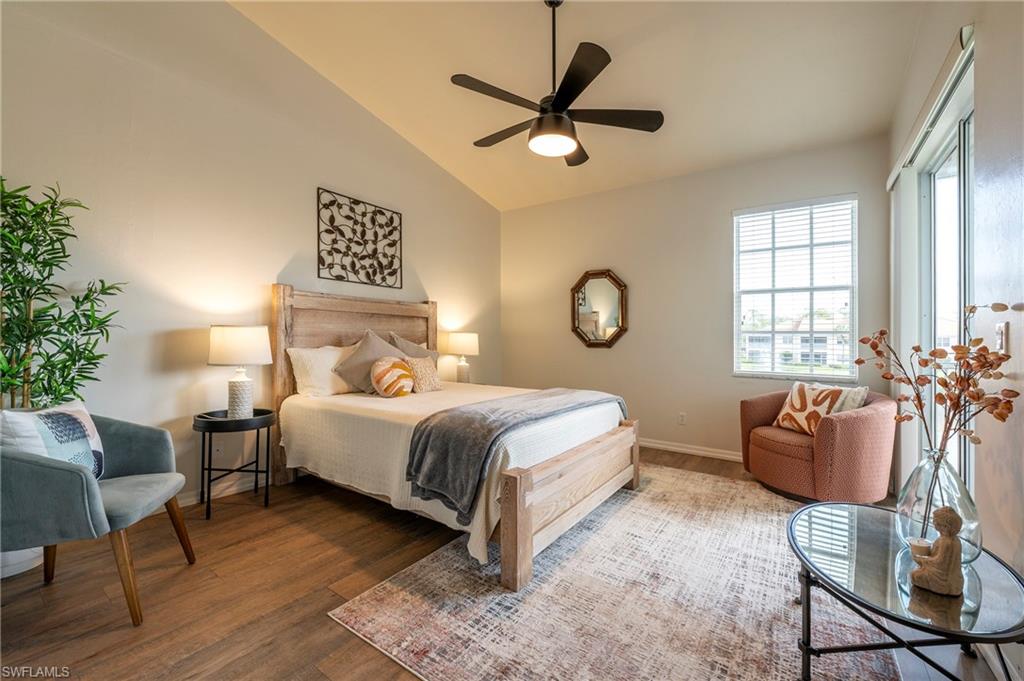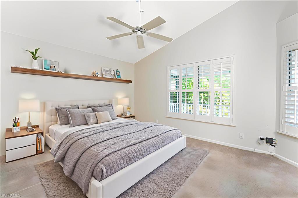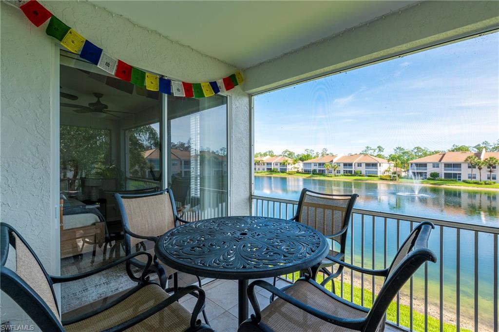 Serene Lakes Views in the Heart of North Naples. Welcome to your peaceful retreat in the gated community of Wilshire Lakes, where this beautifully maintained second-floor unit offers relaxing lake views from a private, screened-in lanai. This turnkey residence features three spacious bedrooms, two full bathrooms, and vaulted ceilings that enhance the open, airy feel throughout. Step inside and ascend the newly carpeted staircase to an inviting all-white kitchen—perfect for preparing your favorite beverage before settling into the open-concept living area. Slide open the glass doors and unwind on your balcony as you take in the tranquil water views. The primary suite is a true sanctuary, complete with a double vanity, walk-in shower, and generous storage. A split-bedroom layout ensures privacy for guests, with two additional bedrooms and a shared bath. A detached single-car garage adds convenience and extra storage. Wilshire Lakes offers resort-style amenities including two clubhouses, two swimming pools & spa, a fitness center, and Har-Tru lighted tennis courts. All just minutes from the white sand beaches of the Gulf of Mexico, upscale shopping, and dining hotspots. Preserve paths in Wilshire Lakes and continue on through PATH ACCESS to NORTH NAPLES REGIONAL PARK, and the Golisano Children's Museum. The Pines clubhouse—just a short walk away—is just finishing up a stunning renovation, including a new pool, hot tub, and clubhouse. Residents enjoy a wealth of amenities, including a basketball court, barbecue area, community room, fitness center, internet access, sidewalks, and tennis courts. You will be minutes away from Mercato, and close to Waterside Shops, and Artis Naples. This property is being offered fully furnished and turn-key, is pet-friendly and move-in ready!