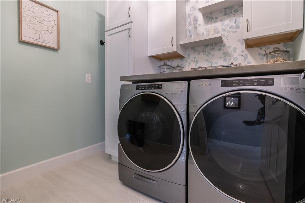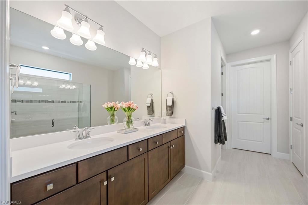 Built in 2022, this 2,124-square-foot Mystique model by DiVosta offers a rare turnkey opportunity, fully furnished with over $100,000 in luxury personal property, including indoor and outdoor furniture, artwork, decor, cookware, bedding, and more. Virtually everything photographed is included, ensuring effortless move-in-ready elegance. The residence blends sophisticated design with functionality, featuring porcelain tile flooring, premium finishes, and custom furnishings throughout. The chef’s kitchen, a centerpiece, showcases two-tone cabinetry, a quartz island, and stainless-steel appliances, ideal for culinary enthusiasts. The open-concept living area flows to a screened lanai, where a heated saltwater pool and paver deck are framed by serene wilderness preserve views, perfect for relaxation or entertaining. The primary suite offers a spa-inspired bathroom with dual vanities and an expansive walk-in closet. Practical features include hurricane storm protection, a spacious laundry room with built-in storage, and a two-car garage. Dramatic landscape lighting adds vibrant depth to the exterior, enhancing curb appeal and creating a refined nighttime ambiance. This meticulously crafted home elevates modern luxury with timeless comfort. This 3-bedroom, 3-bathroom residence, complete with a den, balances elegance and practicality. The two guest bedrooms, each with full bathroom access, ensure privacy and comfort. The den, ideal as a home office, features built-in shelving and natural light. The great room, with 10-foot ceilings and large windows, frames tranquil preserve views. Smart-home technology, including automated lighting and climate control, enhances efficiency. The heated saltwater pool, with a sun shelf and lighting, and the paver deck with manicured landscaping, create a refined outdoor retreat. Upgraded fixtures, such as rainfall showerheads in the primary bathroom and recessed lighting throughout, elevate the home’s sophisticated aesthetic. The exterior features low-maintenance tropical landscaping, complementing the preserve backdrop. Nestled in the gated Winding Cypress community in Southeast Naples, this home is part of a prestigious enclave of 766 residences. Spanning 800 acres of preserves and 80 acres of lakes, Winding Cypress blends natural beauty with luxury. Residents enjoy low HOA fees and amenities, including a resort-style pool with cabanas, a fitness center with modern equipment, and courts for pickleball, bocce, and tennis. The clubhouse, a social hub, offers an internet café, event spaces, and a catering kitchen. A dog park, community garden, and trails through lush preserves cater to diverse lifestyles. Located minutes from Marco Island’s beaches, Naples’ vibrant 5th Avenue, and I-75, this home ensures access to fine dining, shopping, and cultural attractions. Winding Cypress offers a close-knit community, making this turnkey home a standout in Naples luxury living.