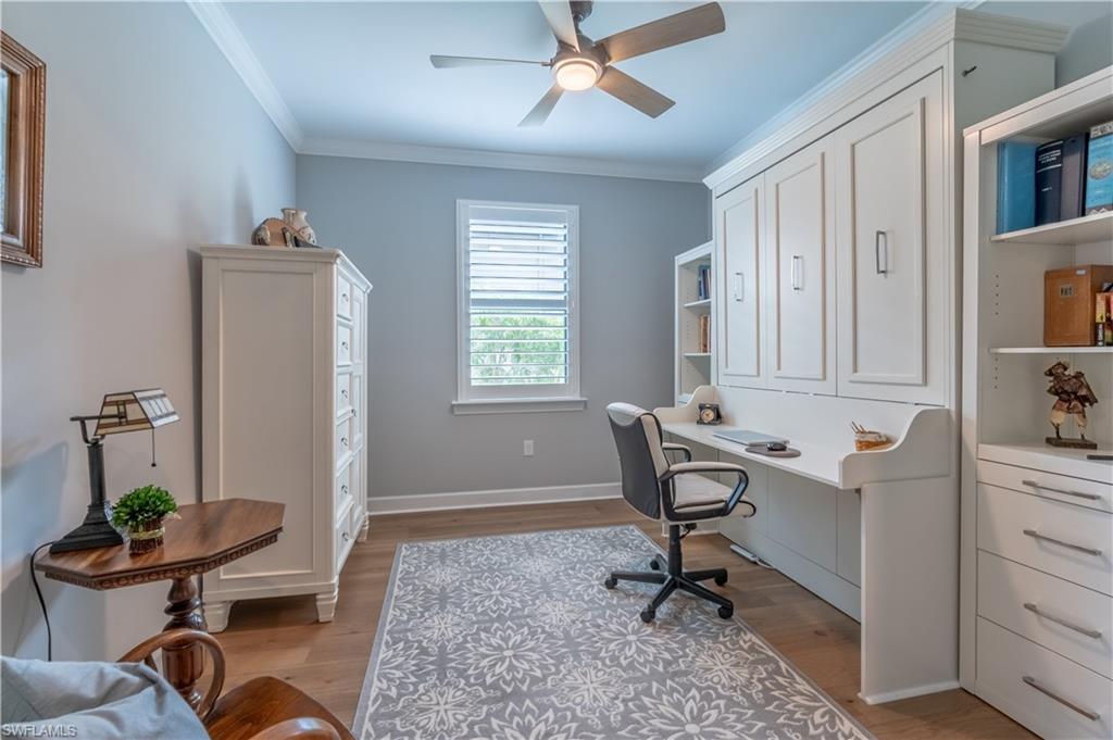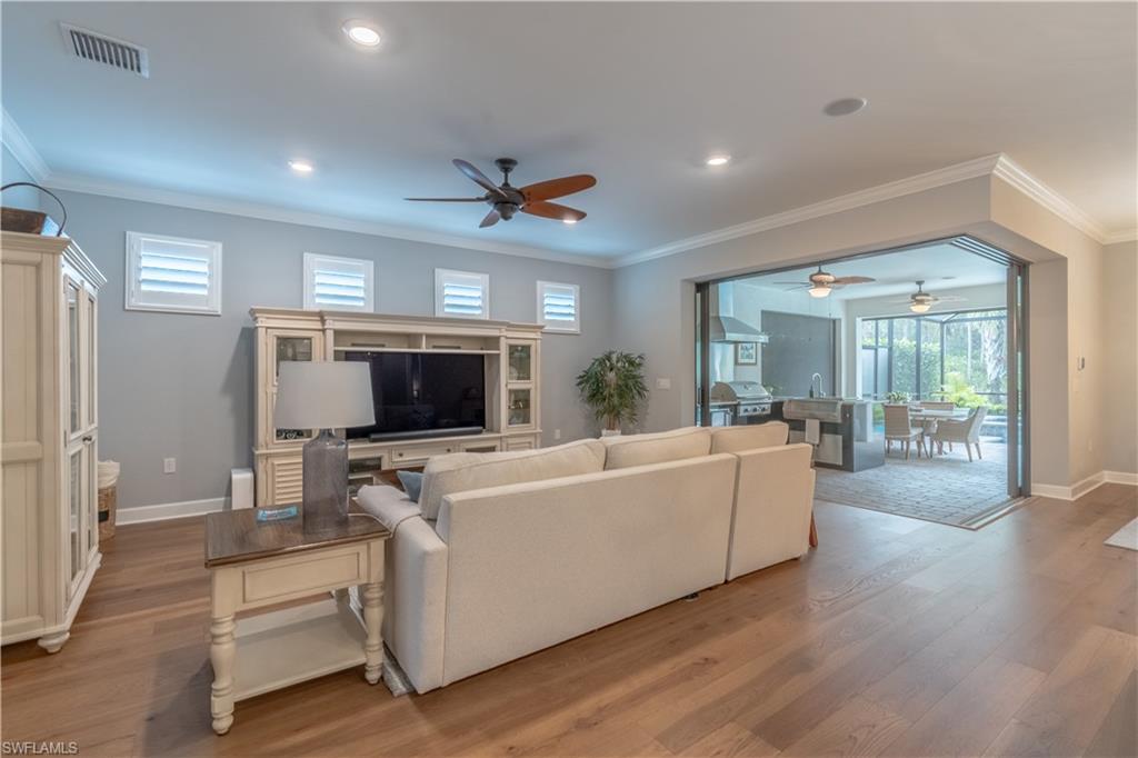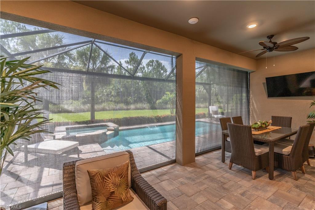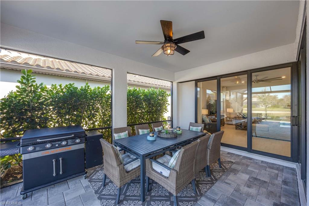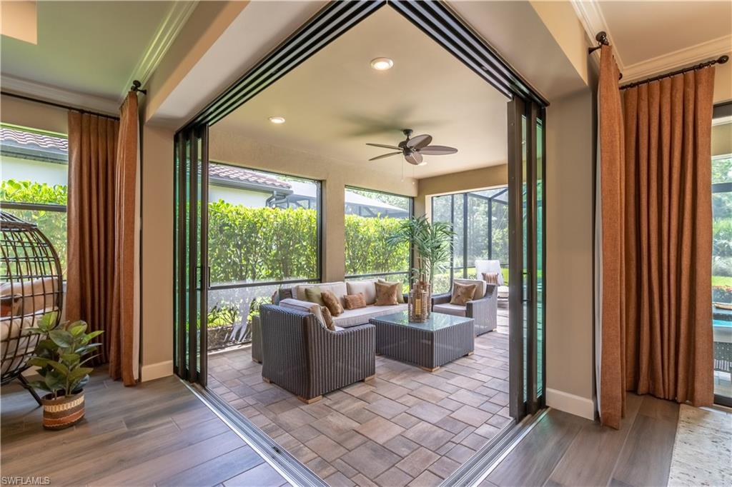 The perfect move in ready home for sale! This Summerwood floorplan features 2 bedrooms, 2 baths+den, saltwater pool and spa, and a 2+car garage offering a blend of style, comfort, and functionality. The open-concept layout features a dramatic zero-corner slider, seamlessly connecting indoor and outdoor spaces, while the whole home generator, exterior cameras, and impact windows and doors provide peace of mind. Inside, extensive upgrades are everywhere. The kitchen boasts built-in appliances and a spacious island, perfect for entertaining. Additional highlights include built-in Sonos speakers, crown molding, hard flooring throughout, custom primary closet, and a Murphy bed in the den—ideal for guests or a home office. The thoughtful laundry room has an upgraded washer and dryer and custom cabinets with a dedicated spot for charging your vacuum. You will have tons of storage space in the air conditioned tandem garage which can accommodate up to three cars. Outside, the saltwater pool and spa are heated by both gas and solar (a smart money-saving combo), expansive outdoor kitchen, hurricane screens for a second layer of protection, privacy lanai screening, plenty of seating areas, gorgeous lush landscaping, and areas for storage. This home has been meticulously maintained, most recently the duct work was cleaned and pavers sealed. Winding Cypress is a natural gas community with resort-style amenities! Dine at Shady Palm, the onsite restaurant, or enjoy pickleball, bocce, tennis, a state-of-the-art fitness center, a resort-style pool, a community garden, and even a dog park for your furry friend. This pet-friendly community allows rentals, has low fees, and boasts a prime location—central to Marco Island, 5th Avenue, and I- 75.