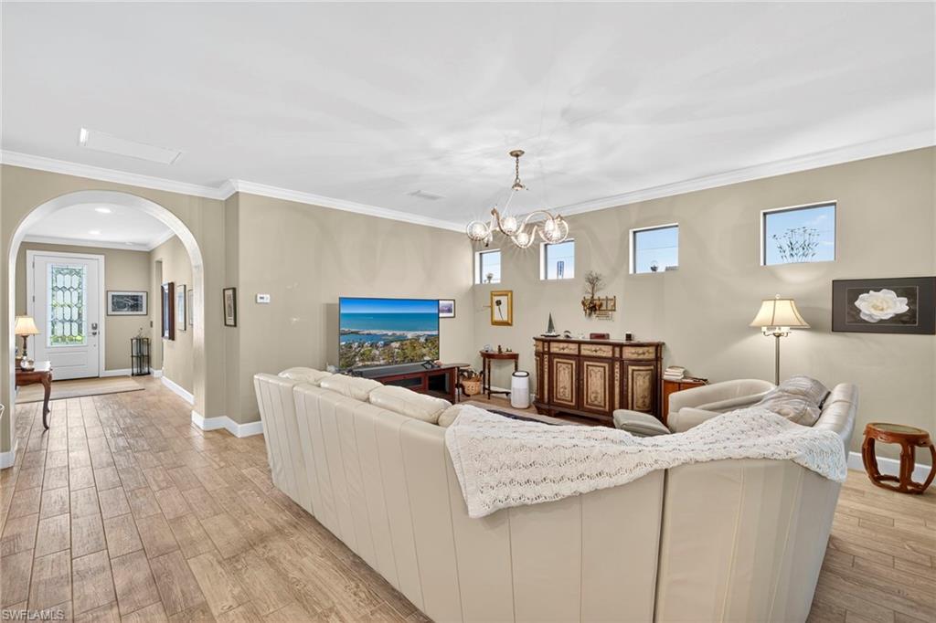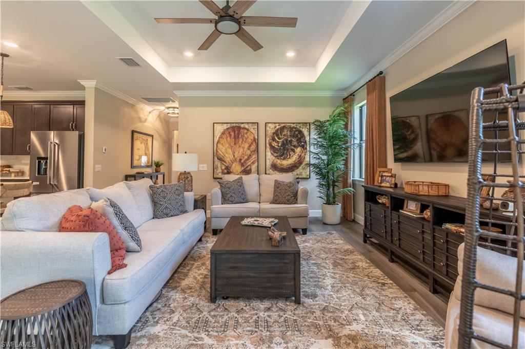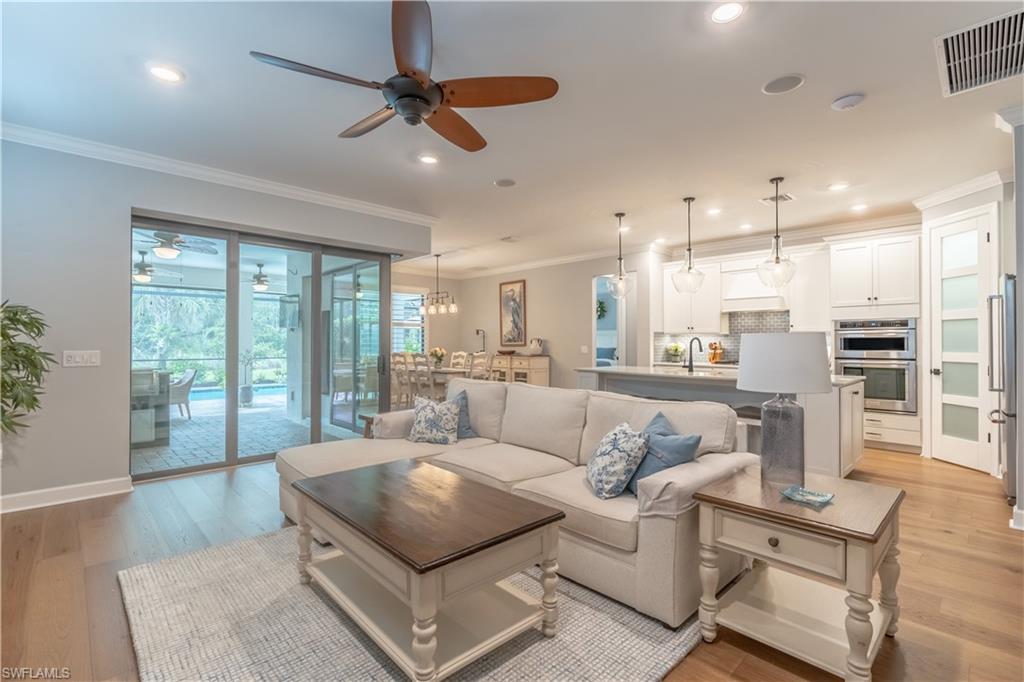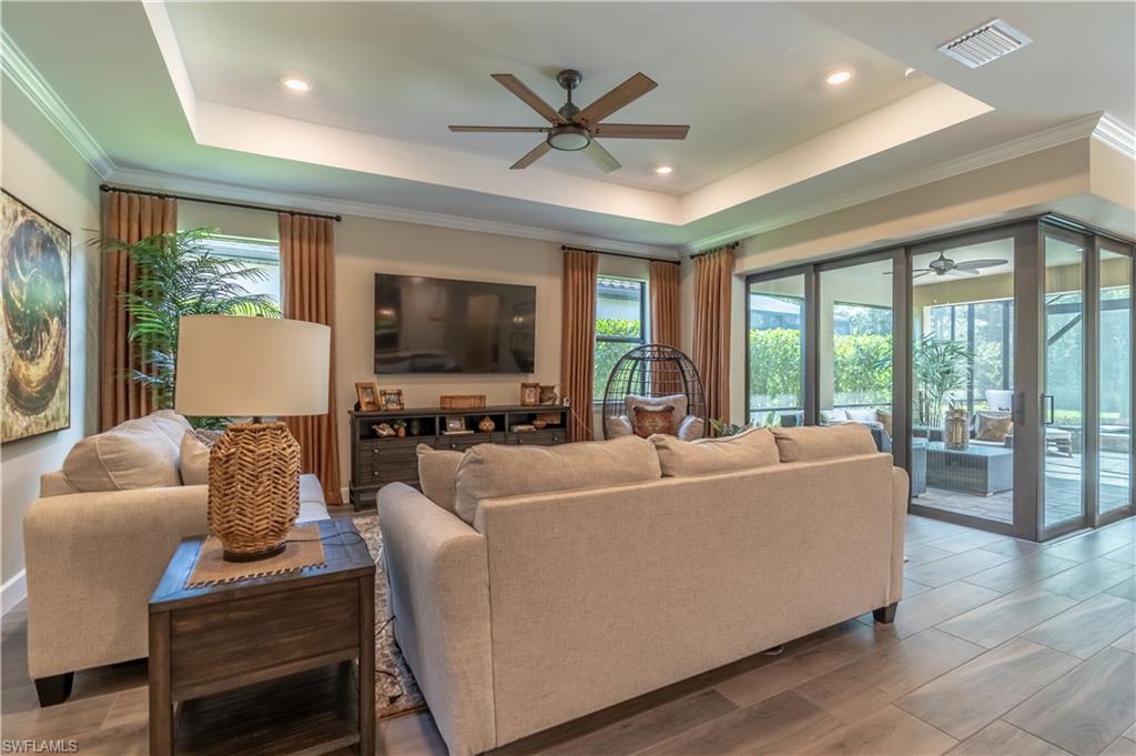 This turnkey furnished Mystique home feels like a model — impeccably maintained, thoughtfully laid out, and filled with cozy, stylish touches throughout! The floorplan features 3 bedrooms + den, 2 baths, pool and spa, and an oversized car garage. The open-concept layout features a dramatic zero-corner slider, seamlessly connecting indoor and outdoor spaces, while the whole home generator, exterior cameras, and impact windows and doors provide peace of mind. Inside, extensive upgrades are everywhere. The kitchen boasts a spacious island with upgraded appliances, perfect for entertaining. Additional highlights include tray ceilings, crown molding, tile flooring throughout, upgraded showers in both bathrooms, and an upgraded washer and dryer. You will have tons of storage space in the air conditioned and insulated garage with an extra 4 feet of space. Outside, the pool and spa is heated by gas and hurricane screens add a second layer of protection. There are plenty of seating areas, and a picture window lanai screen to enhance the quiet, private preserve view. Winding Cypress is a natural gas community with resort-style amenities! Dine at Shady Palm, the onsite restaurant, or enjoy pickleball, bocce, tennis, a state-of-the-art fitness center, a resort-style pool, a community garden, and even a dog park for your furry friend. This pet-friendly community allows rentals, has low fees, and boasts a prime location, central to Marco Island, 5th Avenue, and I- 75.