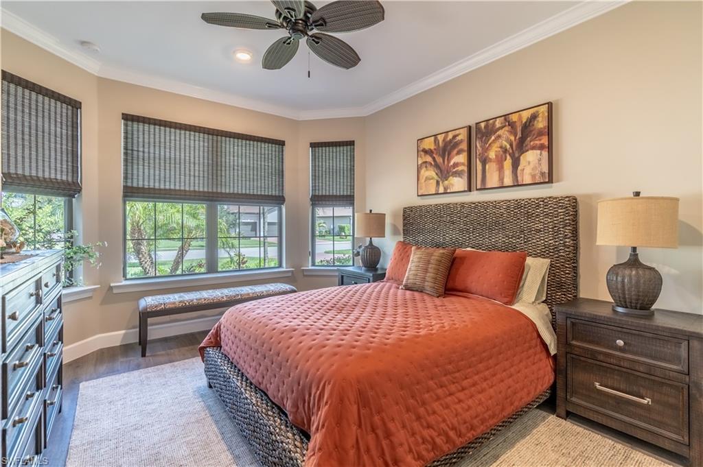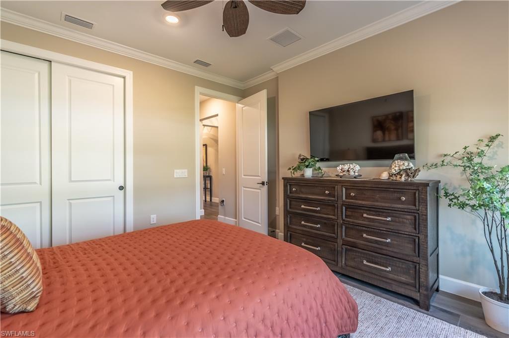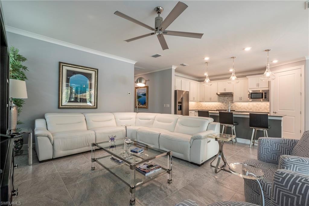 Winding Cypress – Resort-Style Living in Naples - Priced to sell! Welcome to your Florida dream home in the sought-after gated community of Winding Cypress! This immaculate residence built in 2016, offers the perfect blend of modern luxury and relaxed coastal living. Featuring 2,230’sq under air, 3 bedrooms plus a den, 2 full baths, and an open-concept floor plan, this home is designed for comfort and entertaining. Step inside to find upgraded tile flooring, a gourmet kitchen with granite countertops, stainless steel appliances, and a large center island ideal for gathering with friends and family. The spacious great room opens through sliding glass doors to a screened lanai, creating seamless indoor-outdoor living. This home also features a "sunroom" addition and an oversized garage. Enjoy peaceful views of the lush landscaping and lake—the perfect backdrop for morning coffee or sunset cocktails. The primary suite offers a spa-like bath with dual sinks, walk-in shower, and large walk-in closet. Additional features include plantation shutters, crown molding, impact-resistant windows and doors, new electric hurricane screens, a "sunroom" addition not included in other floor plans, and an oversized garage.and a 2-car extended garage with epoxy flooring. Located within minutes of downtown Naples and the Gulf beaches, Winding Cypress offers resort-style amenities including a lagoon-style pool, on-site restaurant, tennis, pickleball, fitness center, dog park, and miles of nature trails. Move-in ready and priced to sell quickly — this home combines style, value, and an unbeatable location.
