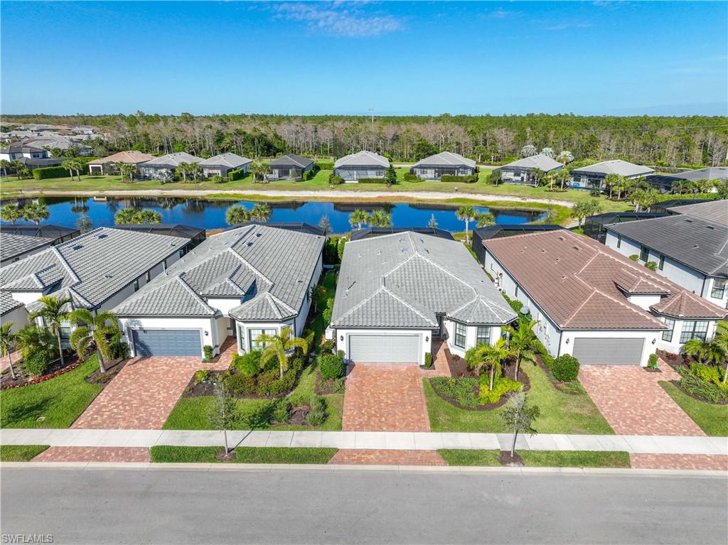 Perfection is the only way to describe this home! It shows like a model as it has been rarely lived in since built barely three years ago. Welcome to the desirable Pulte/DiVosta Mystique Model located in the popular amenity rich community of Winding Cypress. This waterfront property sits on a dead-end cul-de-sac and is loaded with owner and builder upgrades. It's impeccably decorated and furnished and could come turnkey providing the new owner with everything you'll ever need to begin living in paradise! The Mystique’s footprint, a 3 bed, 2 bath plus optional den offers the sought after open kitchen, great room, and dining area concept with split bedrooms to ensure comfort and privacy. All the bedrooms are large with the primary suite being expansive. This home's upgrades include a whole-house generator, a hurricane impact zero-corner sliding glass door that provides a spectacular indoor/outdoor living area combining an expansive great room to the under roof lanai dining and and separate sitting section. That's just part of the lighted lanai. There's an extended paver area for you to soak in the sun while you admire the custom pool with a soothing water feature. Looking out over the beautiful lake is made easy with the option "picture window" lanai screen. Electric StormSmart metal shutters enclose the lanai providing additional peace of mind, safety and security. Additional enhancements include a chef's kitchen layout with quartz counters, a natural gas cooktop and range, upgraded cabinets with above and under lighting, expansive island with an overhang to sit three, an upgraded backsplash and a large walk-in pantry. This home also boasts upgraded tile plank flooring, custom 8' doors throughout, high-end interior plantation shutters on all windows, an expanded laundry area with cabinets, counters, a utility sink, and extra storage. The 2 car garage has an insulated overhead door. Winding Cypress is optimally located just 15 minutes to Olde Naples, 10 minutes to both Marco Island and I75, and 30 minutes to RSW Airport. For this price point, the amenities at Winding Cypress are second to none. A resident's only full service restaurant, resort pool with spa that rivals a Las Vegas hotel, pickleball, tennis, and bocce courts, the best fitness center around, an vibrant community center with onsite management and Activities Director, a dog park, community garden, and a boardwalk nature trail are just a few of the things that make Winding Cypress so special. With only 766 single-family homes spread out over 1250 total acres that includes 850+ acres of spectacular preserve and lakes, enjoy the peace, serenity and beautiful wildlife that few communities are able to offer.