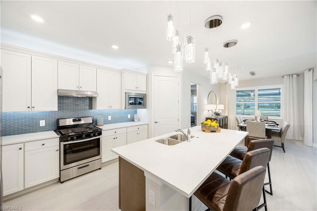 Sense the comfort and beauty of this magnificent home the minute you enter the foyer and see the view out to the inviting pool and spa. This 3 bedroom, plus separate den, great room floor-plan is perfect for entertaining or just a lovely place to call home. These original owners have impeccably maintained the home making it feel brand new. Built in 2021 it boasts a chef's delight kitchen with stainless steel appliances, center island and breakfast bar, natural gas cooktop/range, pull-out drawers, quartz counter-tops, recessed and pendant lighting, and more! The cook of the house will love it! The great room and dining area are adjacent to the kitchen. An extra plus is the den with double raised paneled doors and a window for natural light. The main bedroom is approx 14' x 16' and sits on its own separate wing from the other bedrooms. You will love the main bathroom with its 9' x 3'3" tiled shower with multiple shower heads, dual sinks, quartz counter-tops, walk-in closet and separate toilet closet. It is very spacious! Another plus to this home is the zero corner doors off the great room extending your great room out to your covered lanai. The extended lanai is all plumbed for the outdoor kitchen of your liking. Enjoy the Florida sunshine in your pool and spa in the privacy of your own backyard which backs up to a preserve. Some of the other features of this lovely home are a 9' x 7' laundry room with cabinets, folding counters, sink, and storage closet, 2 car garage with a 4 foot extension and epoxy flooring, and impact resistant windows and sliders. The home boasts beautiful tile and light colors throughout. The white plantation shutters in many of the rooms add to the character of the home. Winding Cypress is a newer, well maintained community offering an abundance of amenities. You will find a resort-style pool and separate spa, cabanas, Shady Palm Cafe, pickleball, bocce, tennis, state-of-the-art fitness center, community garden and a dog park for your fur babies. Winding Cypress sits in a great location in Collier County, less than 30 minutes from beautiful 5th Avenue in Naples, and the white sand beaches of Marco Island. This home is a must see!