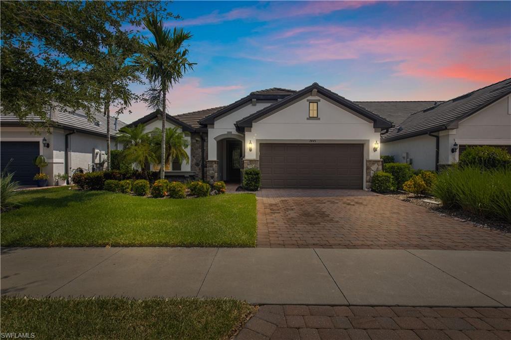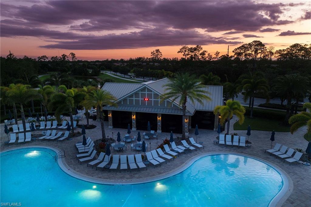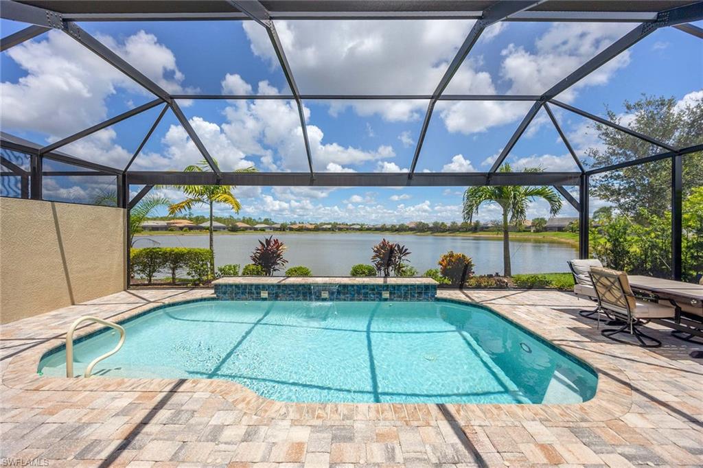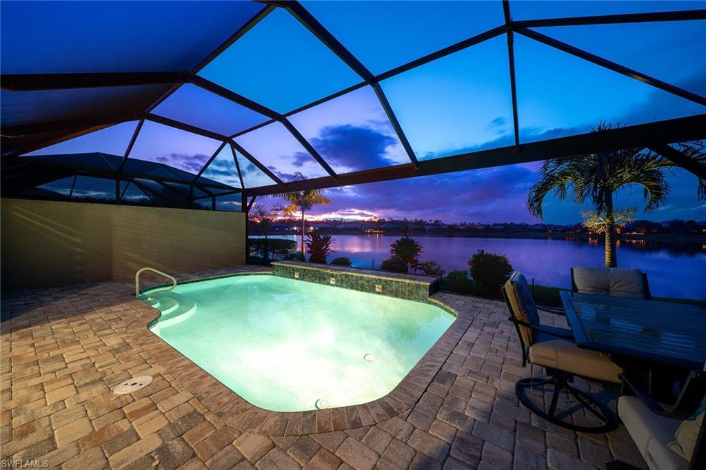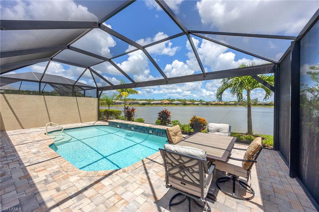 On a premium oversized lot, this beautifully upgraded villa offers one of the most stunning sunset water views in all of Winding Cypress. The extended screened lanai features a panoramic no-see-um screen, heated saltwater pool, and a fully equipped outdoor kitchen with a five-burner Bull Grill, stainless steel sink, premium refrigerator, and a 42-inch lighted vent hood, an entertainer’s dream and the ultimate space to relax and take in the view. Hurricane-impact windows and doors throughout the home provide peace of mind, while a stylish glass entry door, two ceiling-mounted garage storage racks, and attic access in the garage and primary closet add smart functionality. Inside, the open floor plan is elegant and inviting with diagonal tile flooring, plantation shutters and upgraded LED recessed lighting. The home includes two furnished bedrooms plus a flexible den with 8-foot French doors and a new Murphy bed, ideal for guests or a home office. The gourmet kitchen features granite countertops, a tasteful tiled backsplash, staggered cabinetry with under- and over-cabinet lighting, and bar seating. California Closets have been added to the primary suite and kitchen pantry for optimal organization. This smart home includes a Nest thermostat, video doorbell, cameras at garage and lanai, Nest Protect smoke and CO2 detectors and Leviton Wi-Fi lighting switches. Gently lived in as a pet-free, smoke-free seasonal home, it shows like new. Winding Cypress offers over 800 acres of natural preserves, a resort-style clubhouse with a heated pool, restaurant, fitness center, white sand beach, tennis and pickleball courts, dog park and scenic nature trails. With low HOA fees and a natural gas community, all just 25 minutes to 5th Avenue, 20 minutes to Marco Island and five minutes to major shopping, this home blends luxury, peace of mind and lifestyle in one incredible package.