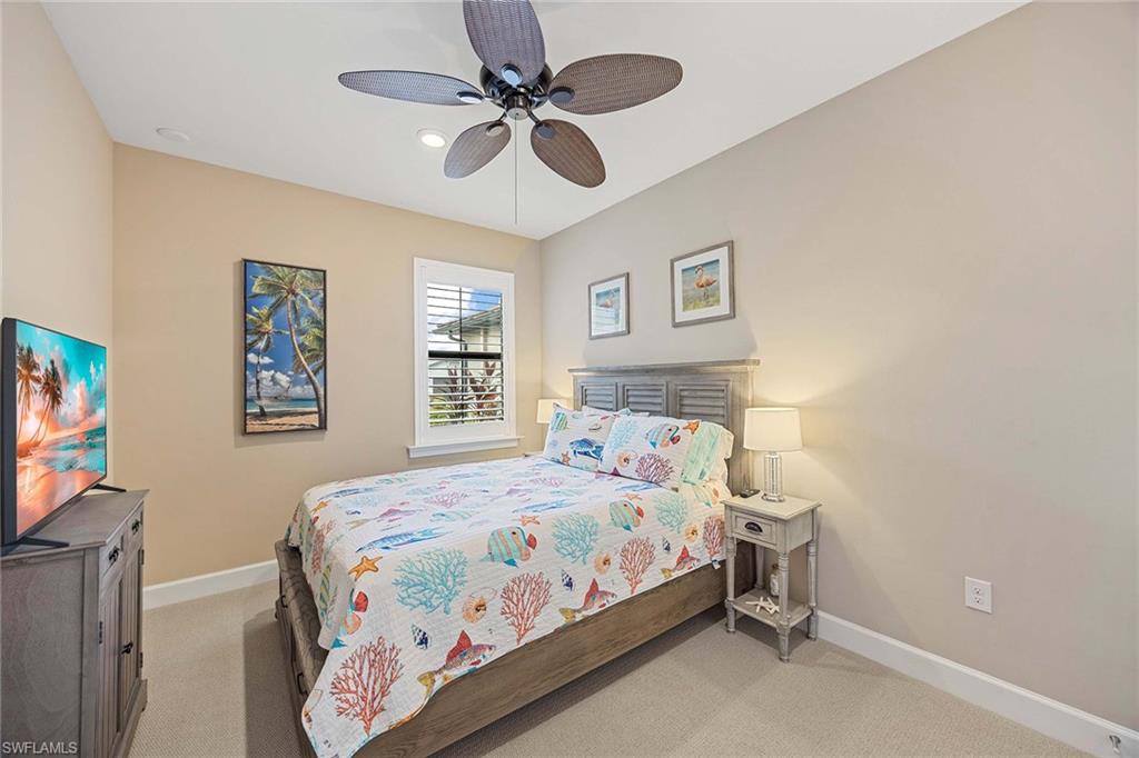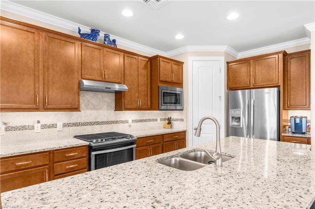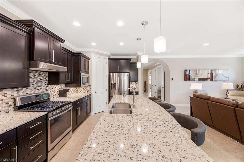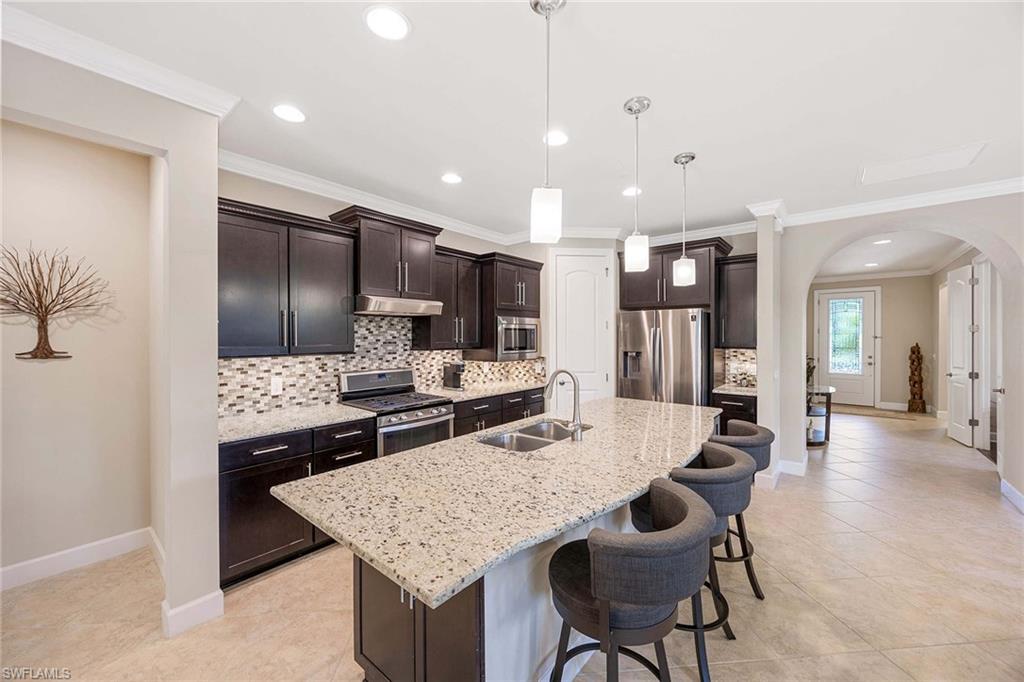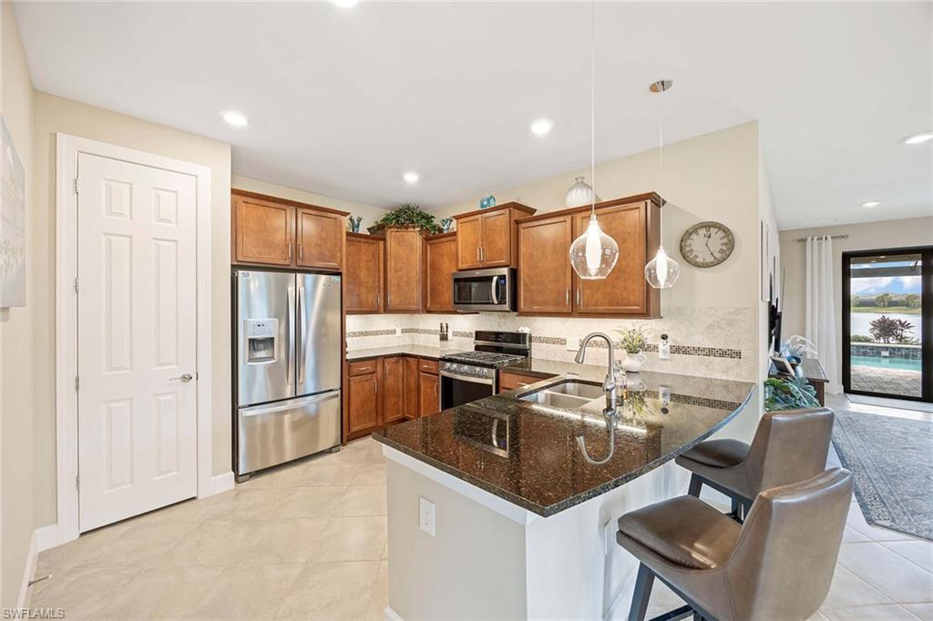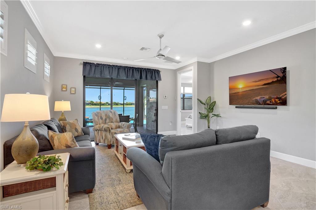 On a premium oversized lot, this beautifully upgraded villa offers one of the most stunning sunset water views in all of Winding Cypress. The extended screened lanai features a panoramic no-see-um screen, heated saltwater pool, and a fully equipped outdoor kitchen with a five-burner Bull Grill, stainless steel sink, premium refrigerator, and a 42-inch lighted vent hood, an entertainer’s dream and the ultimate space to relax and take in the view. Hurricane-impact windows and doors throughout the home provide peace of mind, while a stylish glass entry door, two ceiling-mounted garage storage racks, and attic access in the garage and primary closet add smart functionality. Inside, the open floor plan is elegant and inviting with diagonal tile flooring, plantation shutters and upgraded LED recessed lighting. The home includes two furnished bedrooms plus a flexible den with 8-foot French doors and a new Murphy bed, ideal for guests or a home office. The gourmet kitchen features granite countertops, a tasteful tiled backsplash, staggered cabinetry with under- and over-cabinet lighting, and bar seating. California Closets have been added to the primary suite and kitchen pantry for optimal organization. This smart home includes a Nest thermostat, video doorbell, cameras at garage and lanai, Nest Protect smoke and CO2 detectors and Leviton Wi-Fi lighting switches. Gently lived in as a pet-free, smoke-free seasonal home, it shows like new. Winding Cypress offers over 800 acres of natural preserves, a resort-style clubhouse with a heated pool, restaurant, fitness center, white sand beach, tennis and pickleball courts, dog park and scenic nature trails. With low HOA fees and a natural gas community, all just 25 minutes to 5th Avenue, 20 minutes to Marco Island and five minutes to major shopping, this home blends luxury, peace of mind and lifestyle in one incredible package.