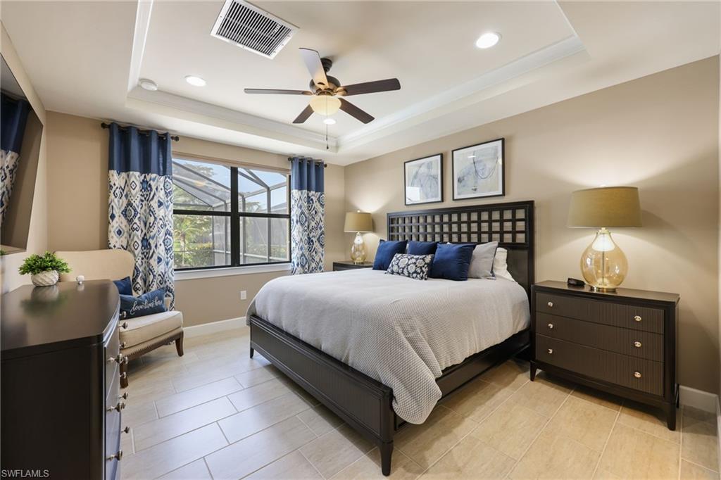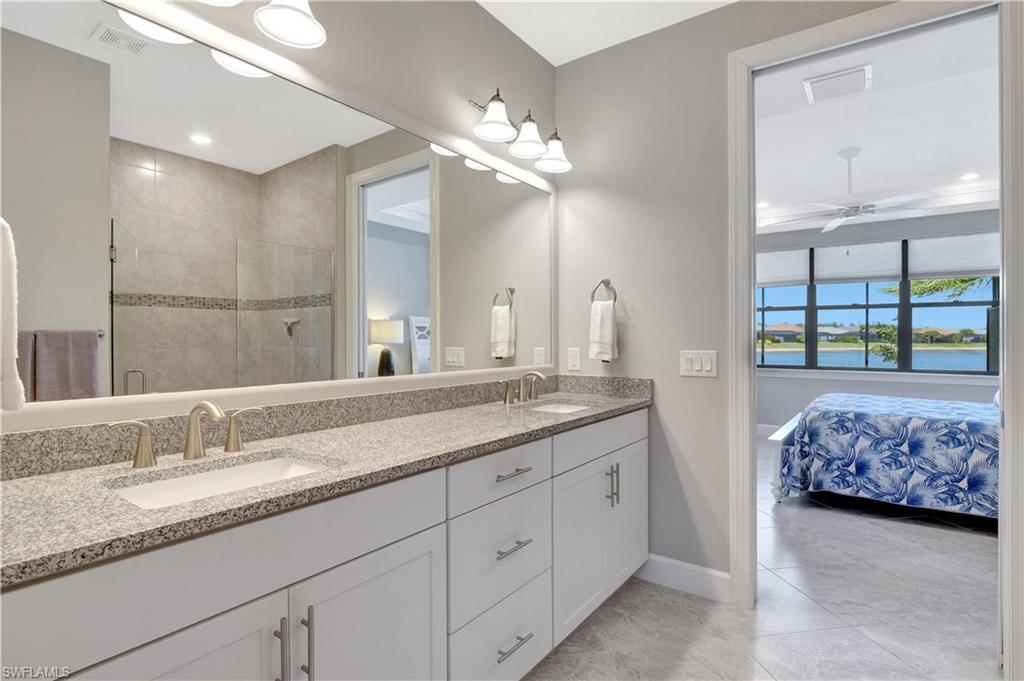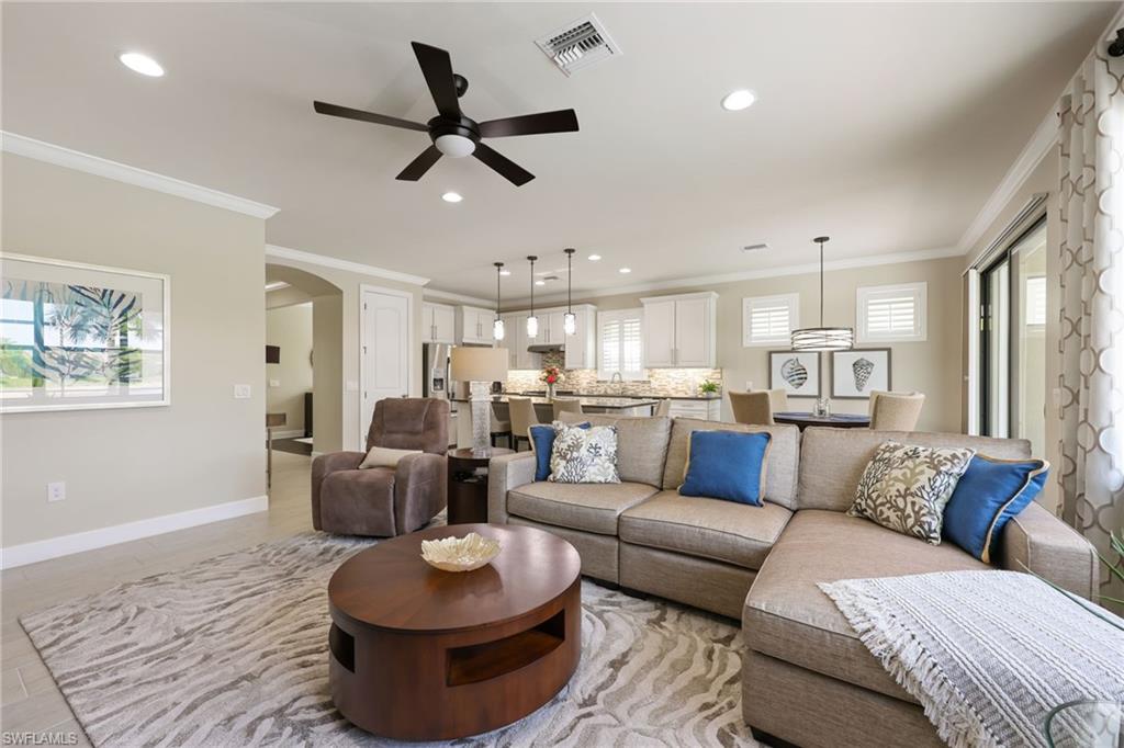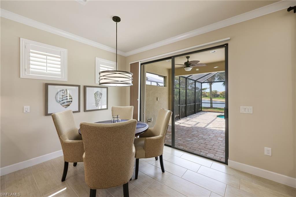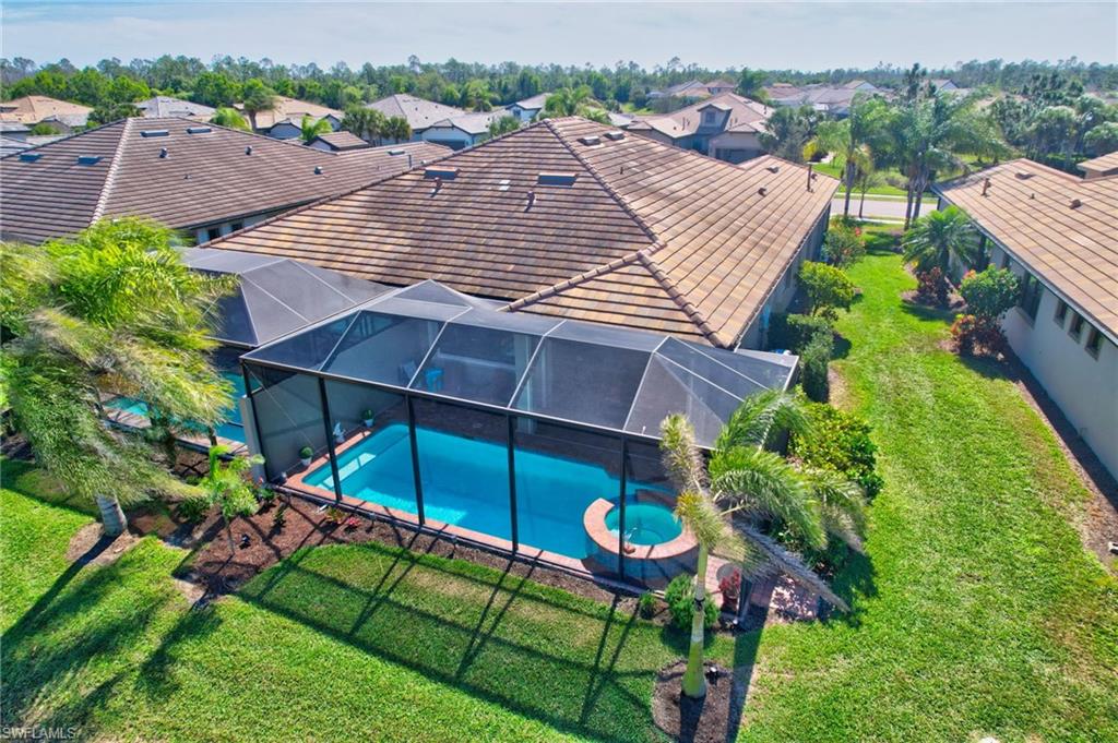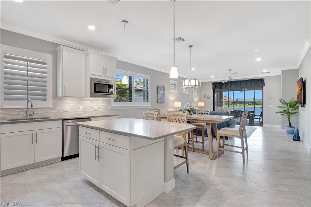 Thoughtful price improvements, upgraded finishes throughout, an expanded kitchen island & a rare 4-foot extension in the garage sets this home apart - topped off by a stunning private pool overlooking the lake. This property offers exceptional appeal. This is a stunning Abbeyville home in Winding Cypress, a move-in ready! This immaculate residence is a must-see, featuring a fresh neutral palette, offering a spacious open split-bedroom floor plan with 2 bedrooms, a flex/den & 2 full bathrooms. Entertainment is elevated with flat-screen TVs mounted in both bedrooms & living area. Soaring ceilings enhanced by elegant molding, tray & coffered details, along with extra recessed lighting. Plantation shutters in the front bedroom, flex/den & over the kitchen sink add both privacy & style. Enjoy matching tile flooring throughout the main areas, with warm wooden plank flooring accentuating the flex/den room. A new HVAC unit, installed in December 2021 & serviced bi-annually ensures year-round comfort. The gourmet kitchen is a chef’s delight with upgraded white shaker cabinets, quartz countertops, a stylish subway tile backsplash & stainless steel appliances including a gas range & hood, dishwasher, built-in microwave, & a stainless steel sink with in-sink disposal. Exquisite cabinet lighting brightens the space, while a large extended kitchen island with additional cabinets provides ample storage. The primary suite features a luxurious walk-in shower with a glass enclosure, dual vanities with a quartz countertop, leading onto a fabulous walk-in closet with built-in organizers. The guest bathroom similarly boasts upgraded features with a tub & shower/glass enclosure, quartz countertop & spacious linen closet. The convenient laundry room is outfitted with upgraded front-load washer & dryer along with built-in cabinets & organizers. Outside, the stunning outdoor oasis beckons with a crystal-clear kidney-shaped pool offering serene lake views. Privacy hedges frame the pool cage, which features both covered & uncovered lanai areas - the perfect balance for year-round enjoyment. Upgrades include new pool cage screens & a pool heater (December 2022). Additional features include built-in easy-to-slide high-end accordion hurricane shutters & an extended 2-car garage with epoxy flooring. Located in the premier Winding Cypress community - A highly sought-after natural gas community set among 800 acres of natural preserves & 80 acres of lakes - this home offers resort-style amenities including a lap pool with spa, screened-in outdoor bar & grill (The Shady Palm), fire pits, fireplace, two dog parks, a community garden, tennis, bocce & pickleball courts, a state-of-the-art clubhouse with a fitness center plus event rooms. Ideally situated just minutes from Downtown Naples, several beaches, Marco Island & US-41/I-75, this property blends luxury & convenience effortlessly. Don’t miss out on this incredible opportunity!