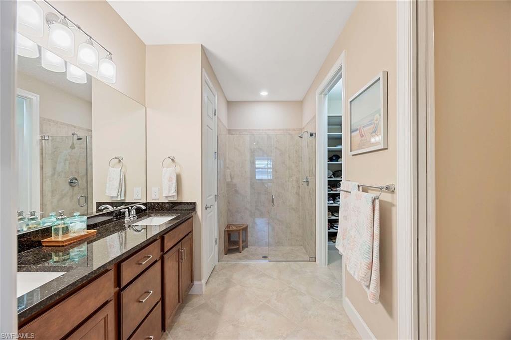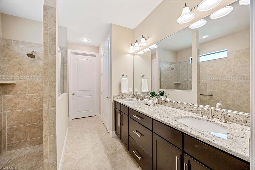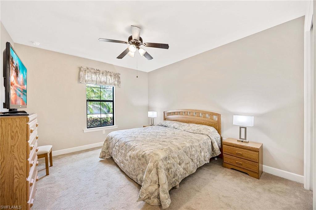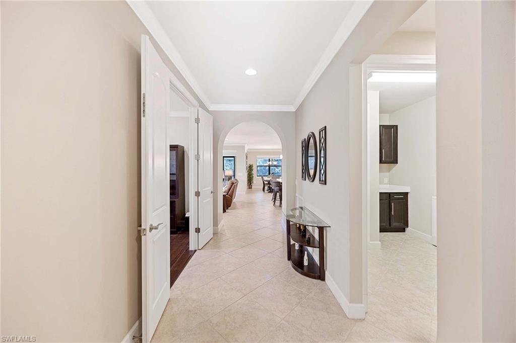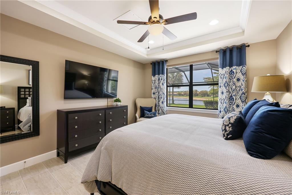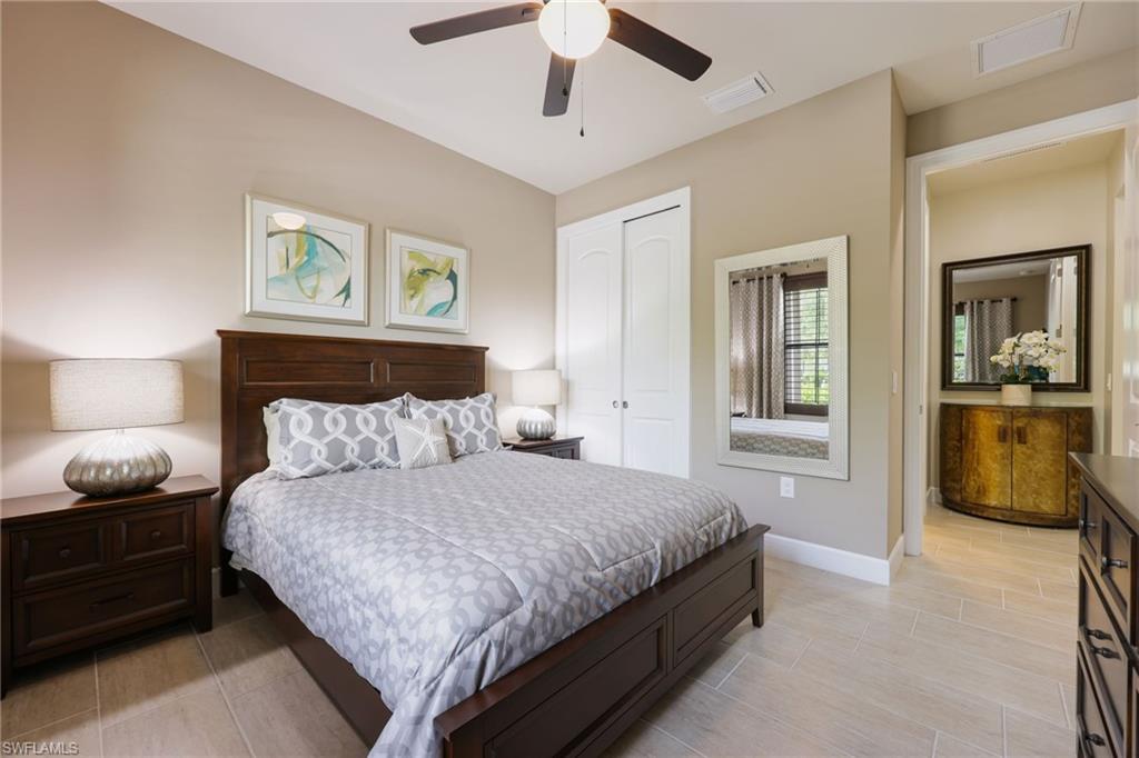 Thoughtful price improvements, upgraded finishes throughout, an expanded kitchen island & a rare 4-foot extension in the garage sets this home apart - topped off by a stunning private pool overlooking the lake. This property offers exceptional appeal. This is a stunning Abbeyville home in Winding Cypress, a move-in ready! This immaculate residence is a must-see, featuring a fresh neutral palette, offering a spacious open split-bedroom floor plan with 2 bedrooms, a flex/den & 2 full bathrooms. Entertainment is elevated with flat-screen TVs mounted in both bedrooms & living area. Soaring ceilings enhanced by elegant molding, tray & coffered details, along with extra recessed lighting. Plantation shutters in the front bedroom, flex/den & over the kitchen sink add both privacy & style. Enjoy matching tile flooring throughout the main areas, with warm wooden plank flooring accentuating the flex/den room. A new HVAC unit, installed in December 2021 & serviced bi-annually ensures year-round comfort. The gourmet kitchen is a chef’s delight with upgraded white shaker cabinets, quartz countertops, a stylish subway tile backsplash & stainless steel appliances including a gas range & hood, dishwasher, built-in microwave, & a stainless steel sink with in-sink disposal. Exquisite cabinet lighting brightens the space, while a large extended kitchen island with additional cabinets provides ample storage. The primary suite features a luxurious walk-in shower with a glass enclosure, dual vanities with a quartz countertop, leading onto a fabulous walk-in closet with built-in organizers. The guest bathroom similarly boasts upgraded features with a tub & shower/glass enclosure, quartz countertop & spacious linen closet. The convenient laundry room is outfitted with upgraded front-load washer & dryer along with built-in cabinets & organizers. Outside, the stunning outdoor oasis beckons with a crystal-clear kidney-shaped pool offering serene lake views. Privacy hedges frame the pool cage, which features both covered & uncovered lanai areas - the perfect balance for year-round enjoyment. Upgrades include new pool cage screens & a pool heater (December 2022). Additional features include built-in easy-to-slide high-end accordion hurricane shutters & an extended 2-car garage with epoxy flooring. Located in the premier Winding Cypress community - A highly sought-after natural gas community set among 800 acres of natural preserves & 80 acres of lakes - this home offers resort-style amenities including a lap pool with spa, screened-in outdoor bar & grill (The Shady Palm), fire pits, fireplace, two dog parks, a community garden, tennis, bocce & pickleball courts, a state-of-the-art clubhouse with a fitness center plus event rooms. Ideally situated just minutes from Downtown Naples, several beaches, Marco Island & US-41/I-75, this property blends luxury & convenience effortlessly. Don’t miss out on this incredible opportunity!