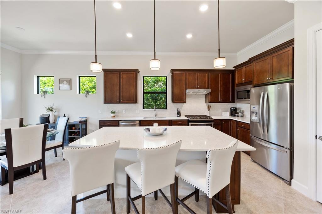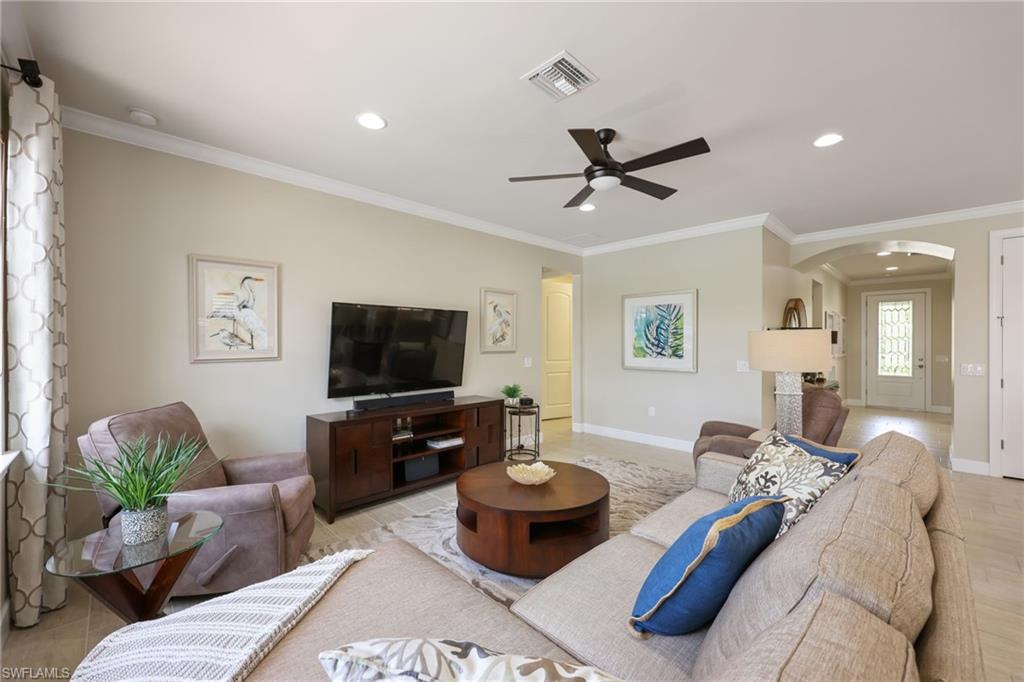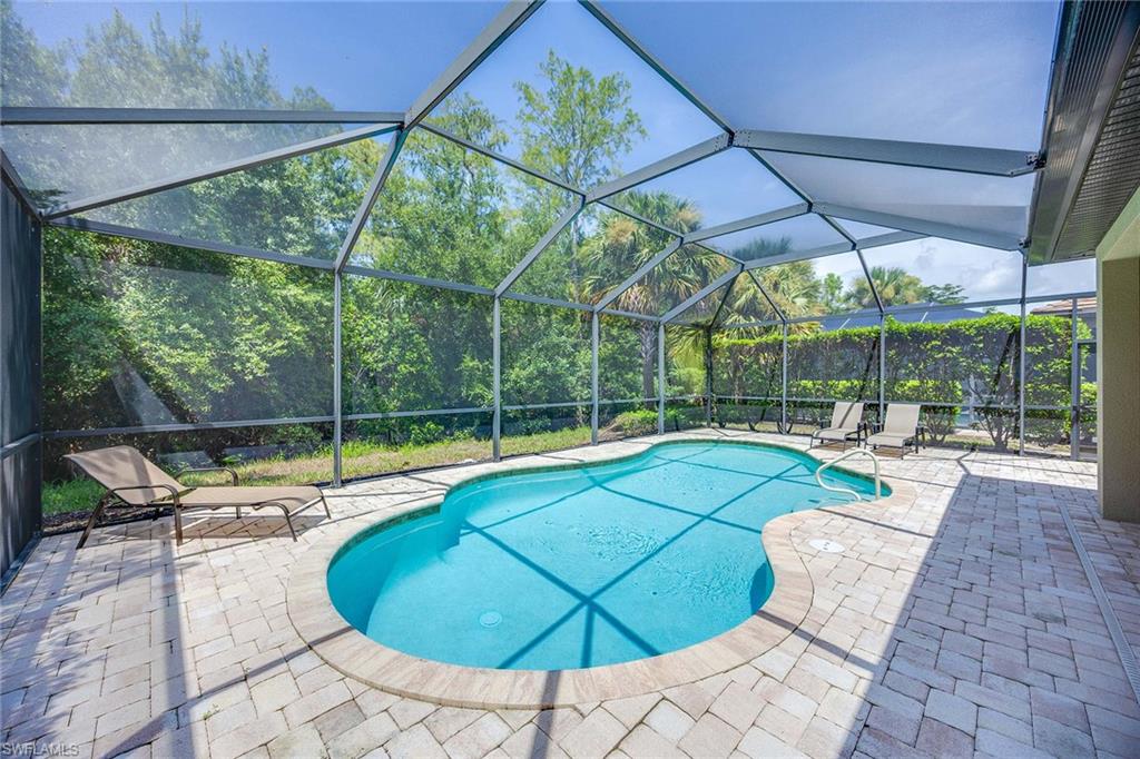 Enjoy resort-style living in this Winding Cypress community near 5th Avenue and Marco Island. This home features a private pool, sunroom and the community’s largest covered lanai. Designed for year-round comfort, it offers a new air-conditioning system with additional cooling in the primary suite, impact glass throughout, and natural gas for efficiency and gourmet cooking. Inside, the oversized primary shower, upgraded tile and premium counters elevate everyday living. Set on a quiet street just a short distance to the Club at Winding Cypress, you’ll have dining, pickleball, tennis, bocce and a resort pool at your fingertips. Mature landscaping and preserve views ensure privacy while the open layout makes entertaining effortless. With nearly 2,300 square feet of living space, this residence blends comfort, convenience and the best of the Florida lifestyle with resort living just around the corner.