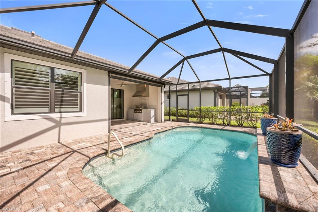 Welcome to this beautifully appointed 3-bedroom, 2-bathroom + den home in the vibrant and sought-after community of Winding Cypress in Naples. Perfectly positioned on a prime lakefront lot, this residence offers serene, long water views that extend to the untouched beauty of the preserve beyond. Thoughtfully designed for both comfort and style, this home features tall interior doorways, an extended screened-in lanai, a fully equipped outdoor kitchen—ideal for entertaining or enjoying peaceful evenings overlooking the lake, and Enjoy the convenience of an extended garage — perfect for extra storage, a workshop space, or oversized vehicles.. Storm shutters provide added security and peace of mind, while the open and versatile layout includes a den perfect for a home office or flex space. The well-appointed kitchen boasts a gas range, catering to culinary enthusiasts, and a natural gas whole-home generator ensures uninterrupted comfort during any weather event. Additional conveniences include an HOA that covers landscaping and irrigation water, allowing for low-maintenance living. Winding Cypress is a gated, resort-style community offering an exceptional array of amenities. Residents enjoy a luxurious clubhouse, a tropical pool with waterfall features, a soothing spa, and a state-of-the-art fitness center. Recreational and social opportunities abound with pickleball, tennis, bocce, and a full calendar of community events. The Shady Palm Café serves delicious food and drinks poolside, while a scenic boardwalk winds through the community’s pristine natural surroundings. A spacious, secure dog park makes this neighborhood perfect for pet lovers as well. Conveniently located just off US-41, Winding Cypress offers easy access to world-class dining, shopping, entertainment, and the white-sand beaches that define Naples living. Experience the perfect blend of privacy, luxury, and vibrant community life in this exceptional home.